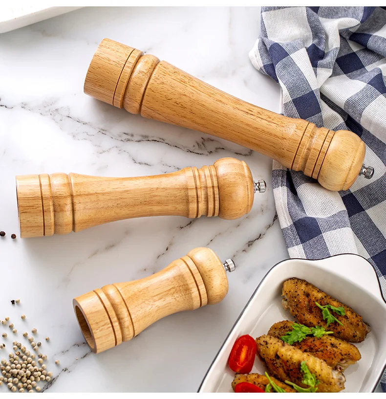5/8/10 Inch Solid Wood Salt and Pepper Mills Spice Grain Grinder with Adjustable Ceramic Grinding Core Kitchen Tools Mills