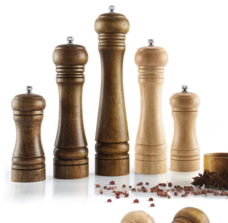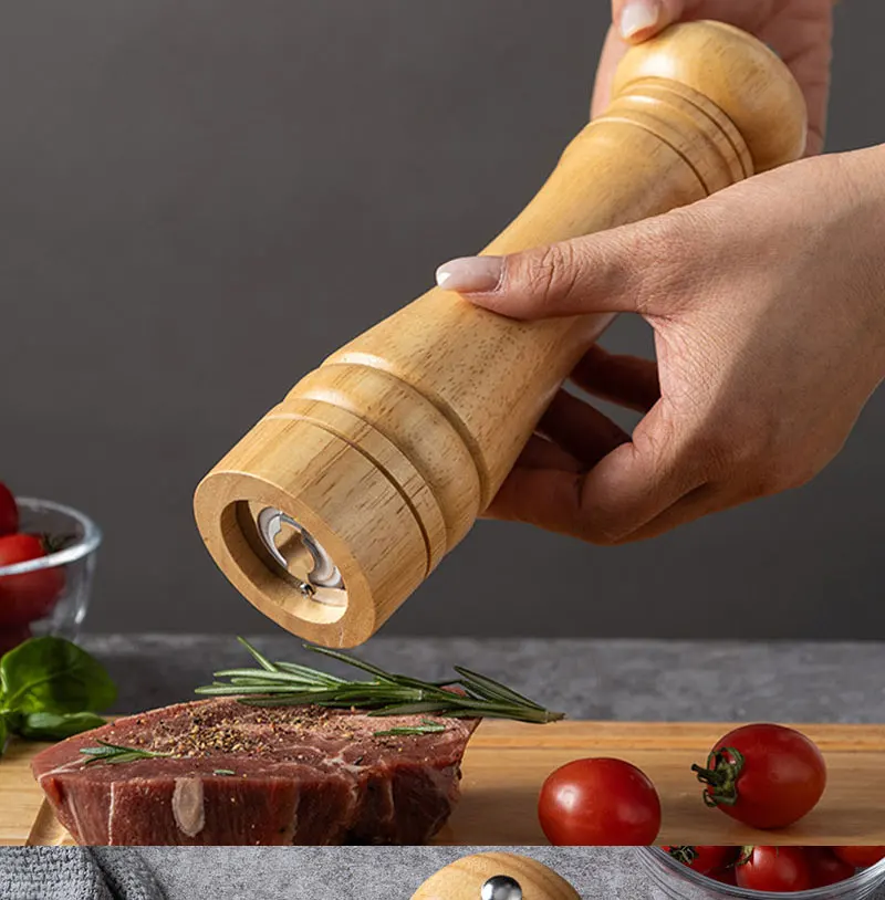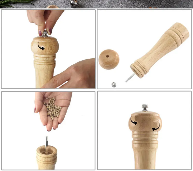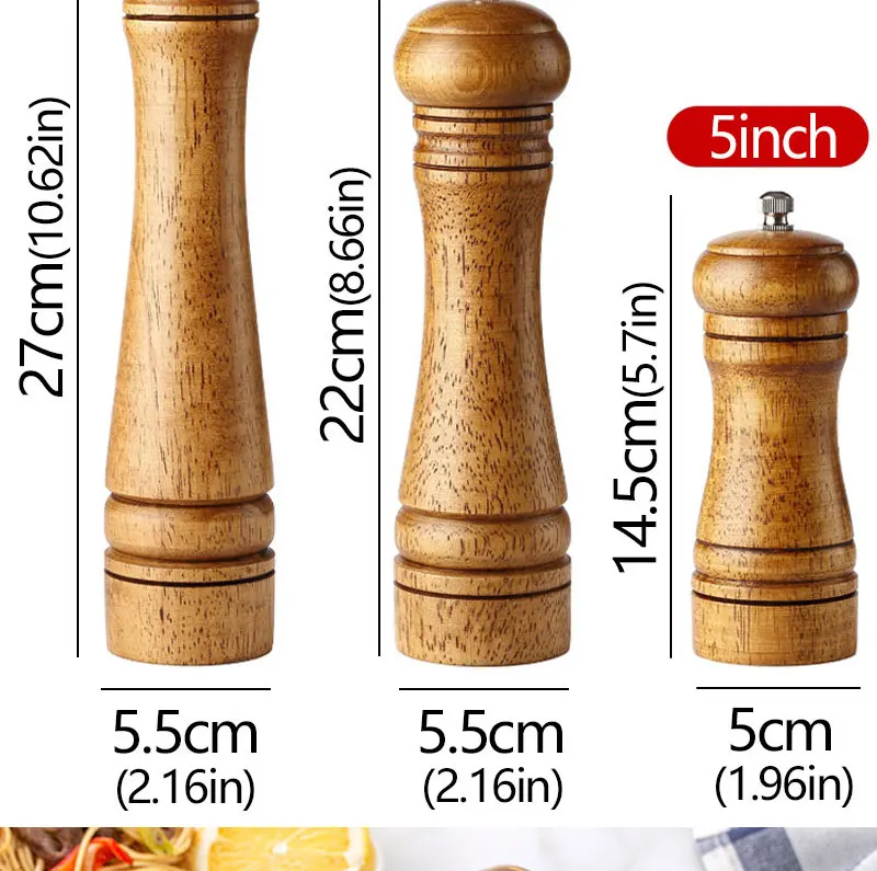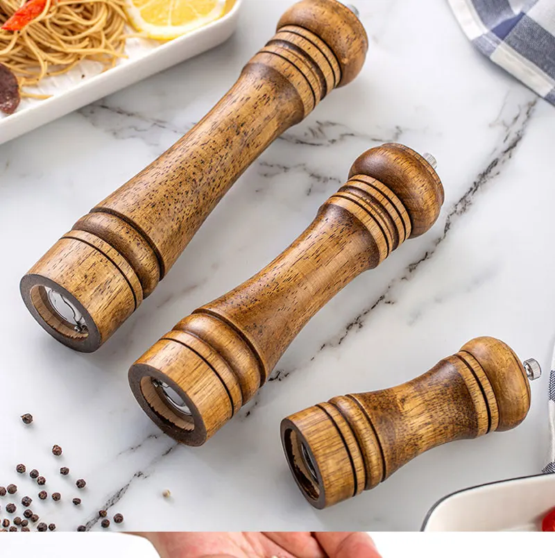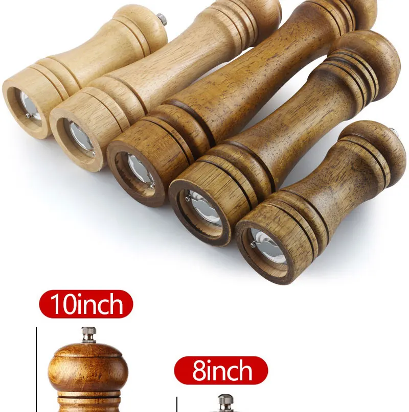 5/8/10inch Wood Salt and Pepper Grinder Solid Wood Spice Mill with Strong Adjustable Ceramic Grinder Kitchen Cooking Tools
