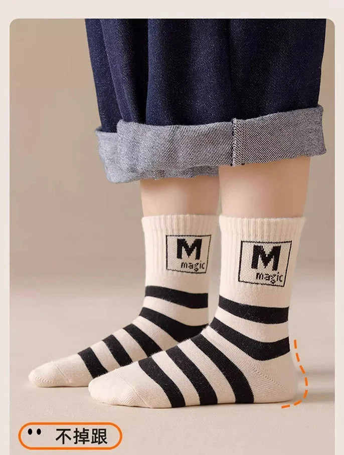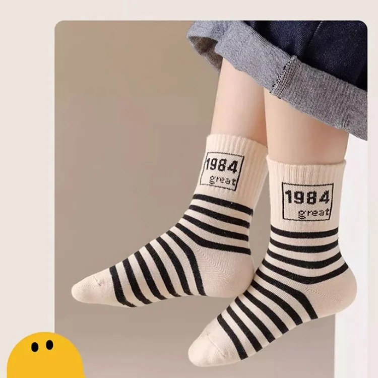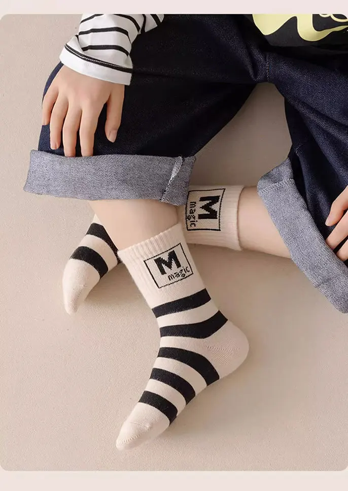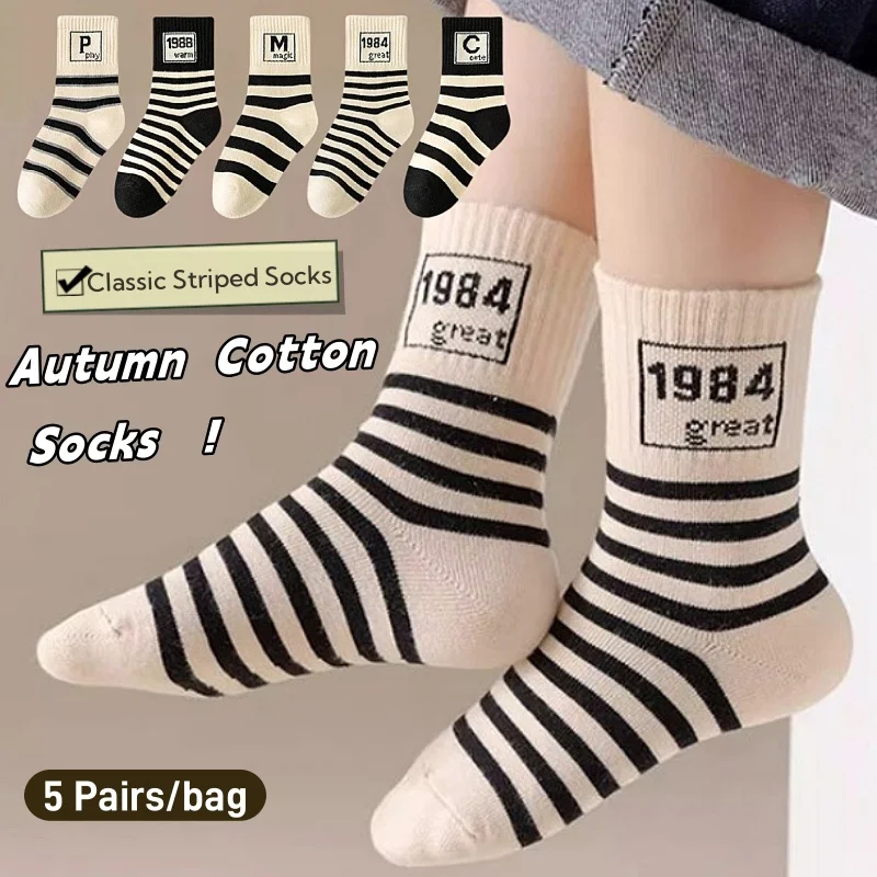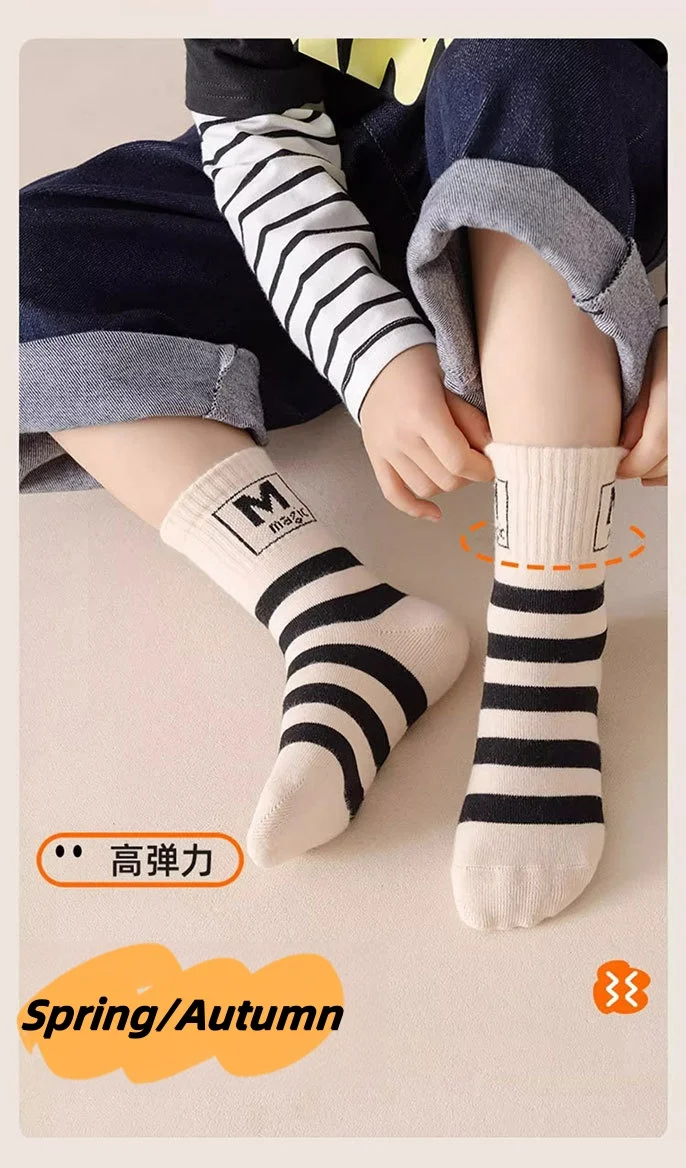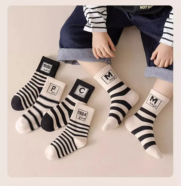5 Pairs Children’s Socks Spring Autumn Socks Kids Boys Cotton Socks Baby Letter Pattern Mid Calf Sock