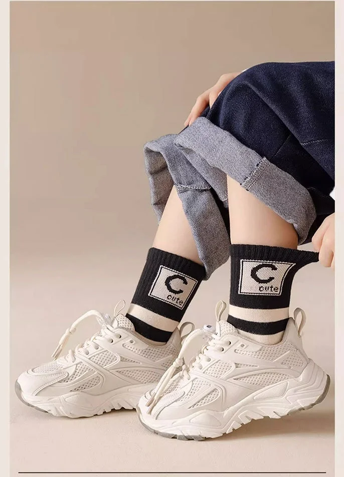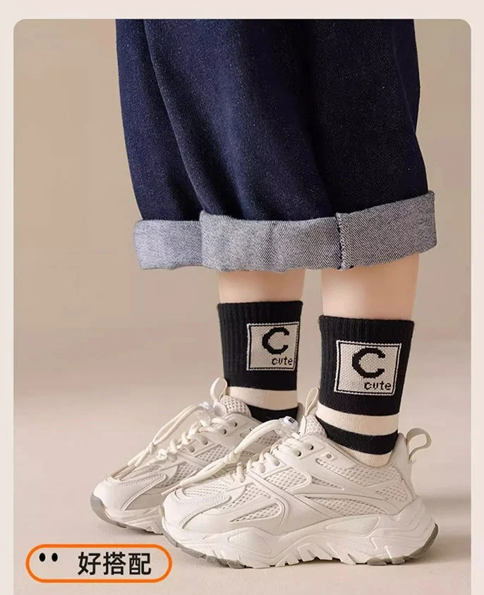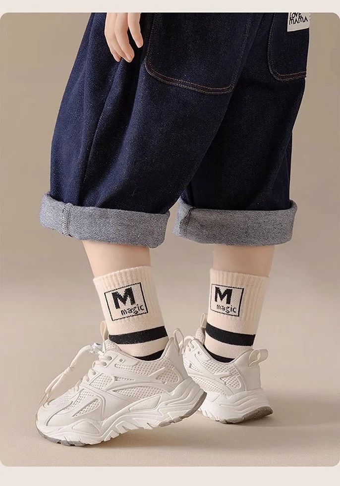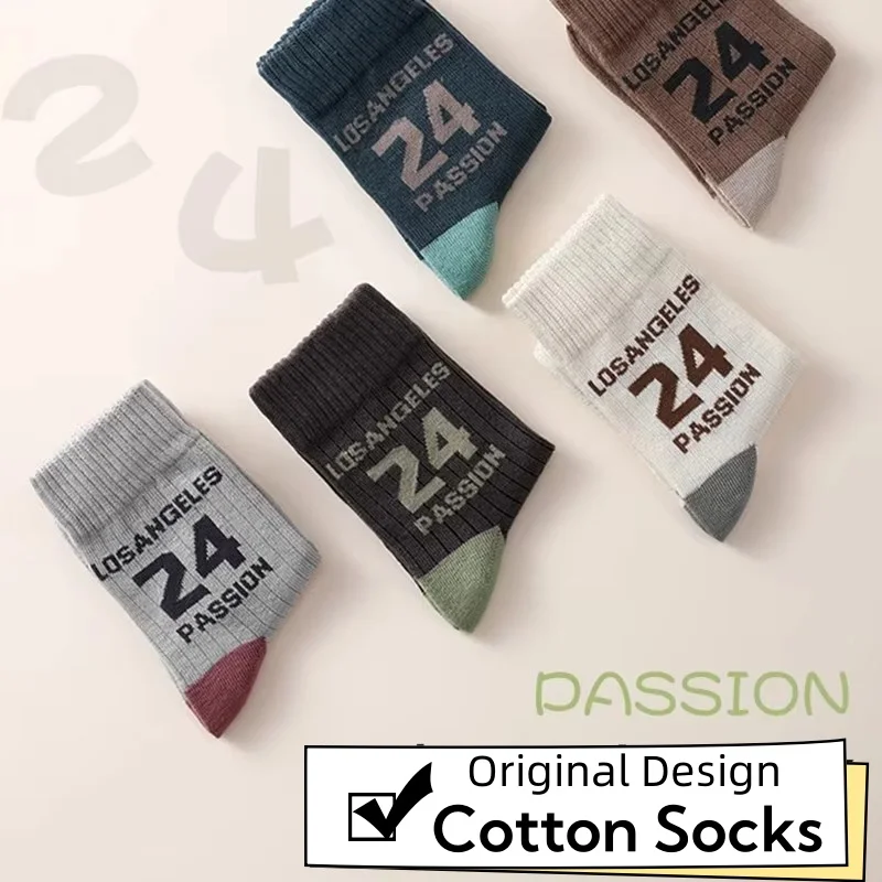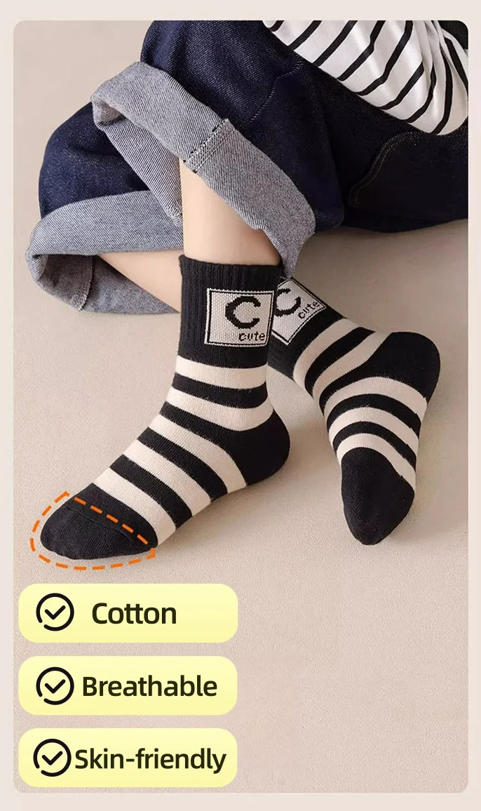 5 Pairs Children’s Socks Spring Autumn Socks Kids Boys Cotton Socks Baby Letter Pattern Mid Calf Sock