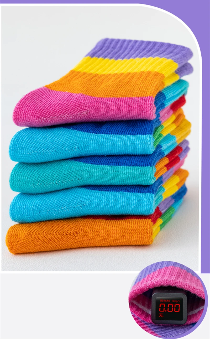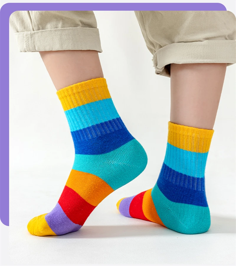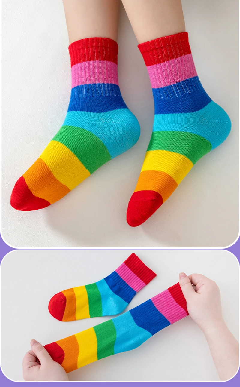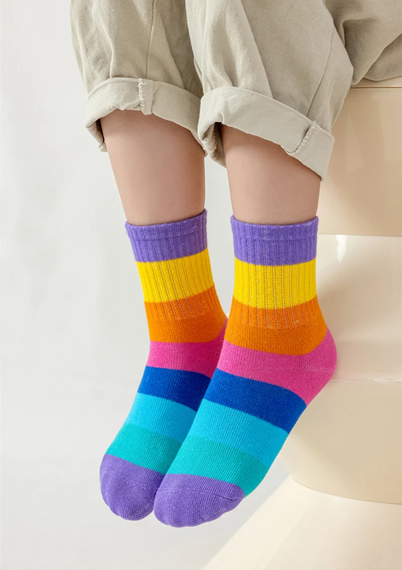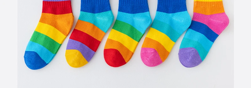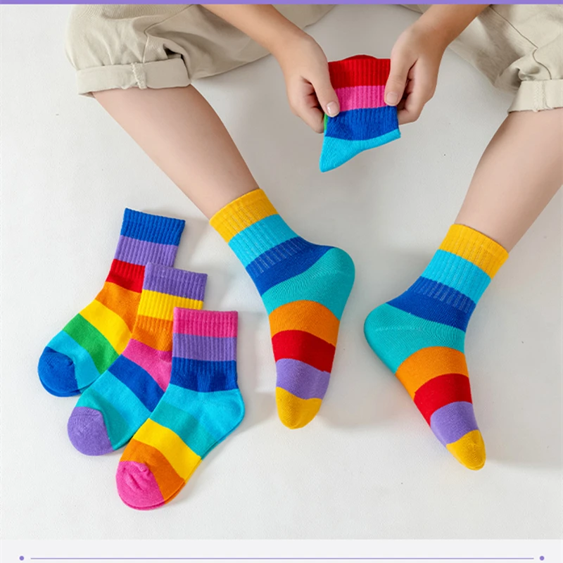 5 Pairs/Lot Children’s Rainbow Socks Spring Autumn Coft Cotton Cute 7 Color Rainbow Stripes Boys Girls Sports Tube Socks to 1-12