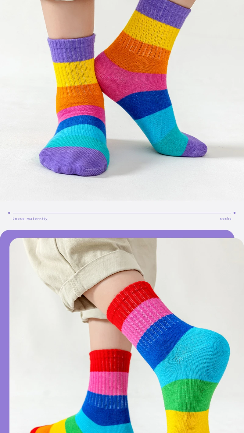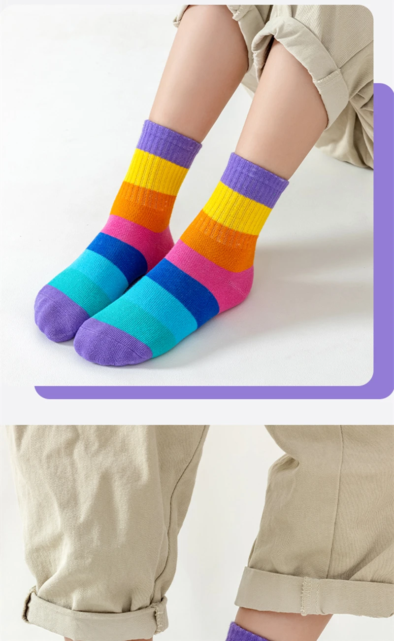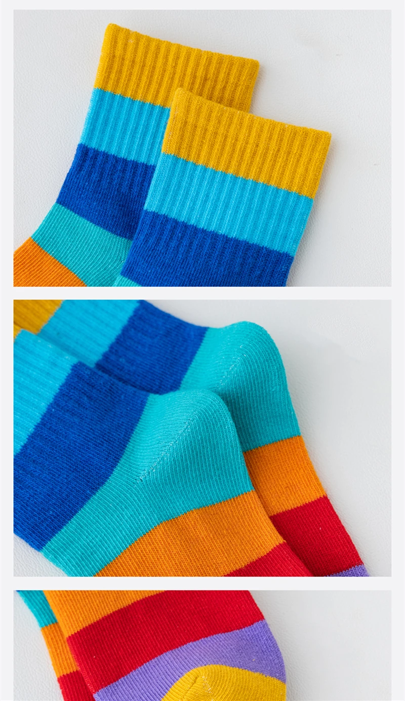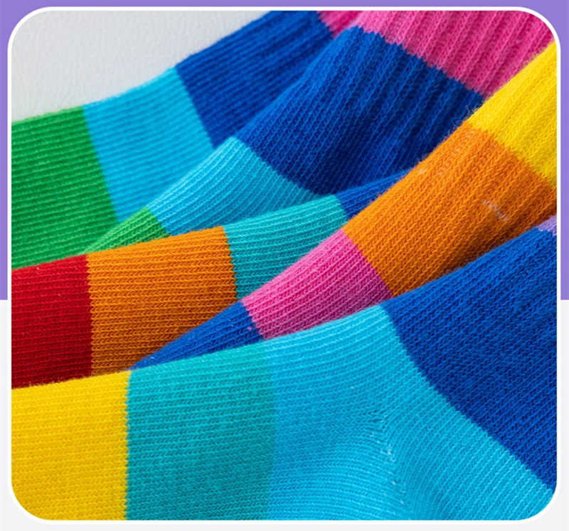 5 Pairs/Lot Children’s Rainbow Socks Spring Autumn Coft Cotton Cute 7 Color Rainbow Stripes Boys Girls Sports Tube Socks to 1-12