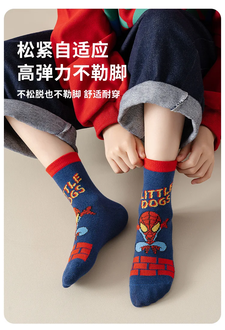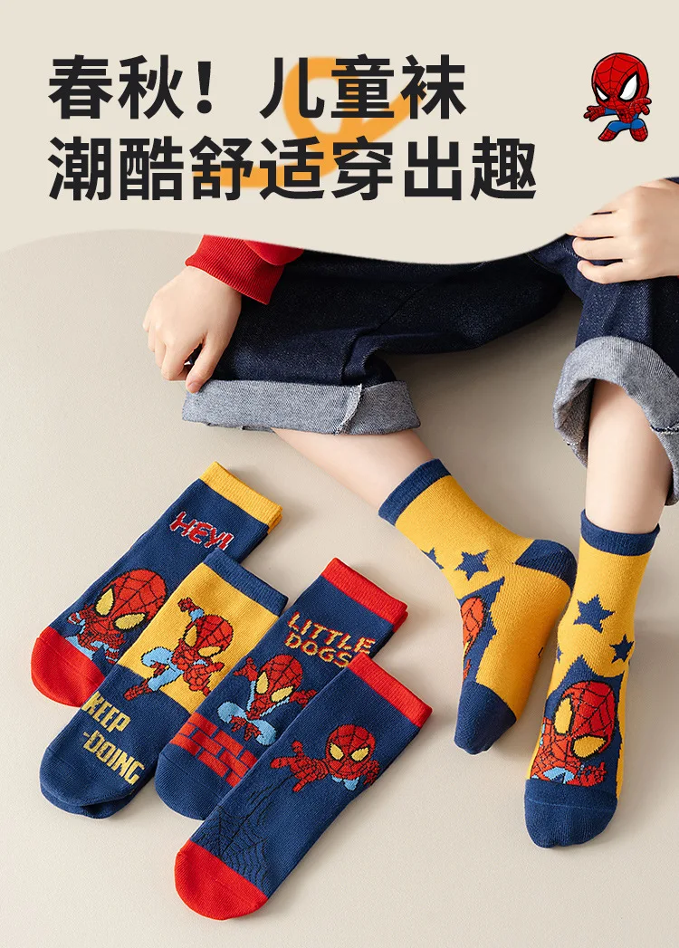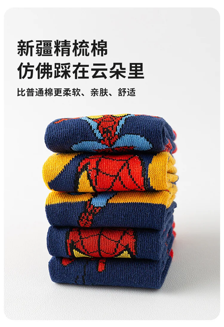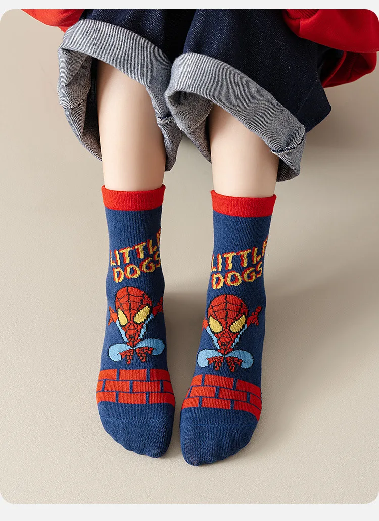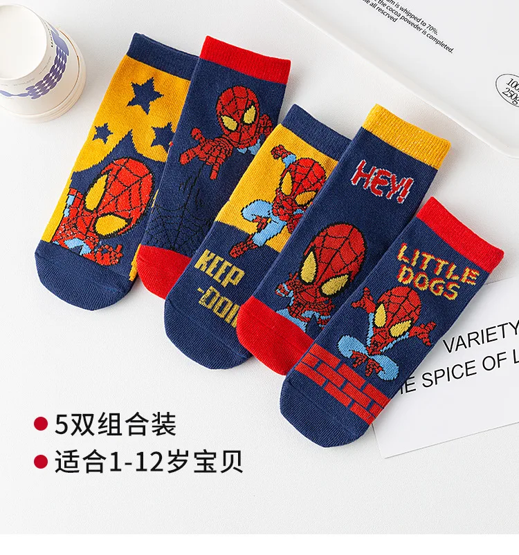 5 Pairs Marvel Kids Socks Spider-Man Kawaii New Fall Cartoon Boy Children Mid-calf Socks Cotton Sock for Boys Gifts