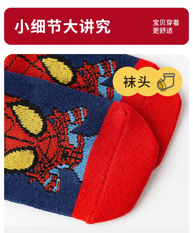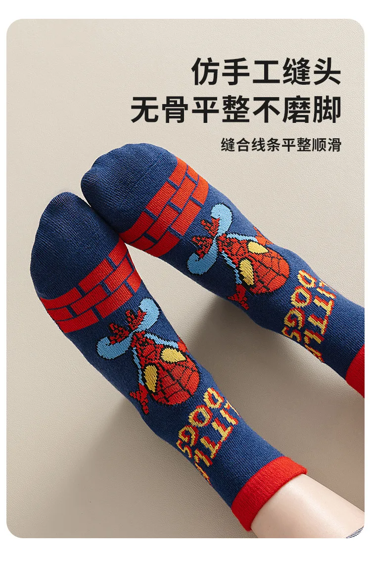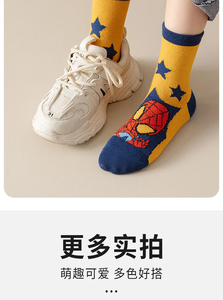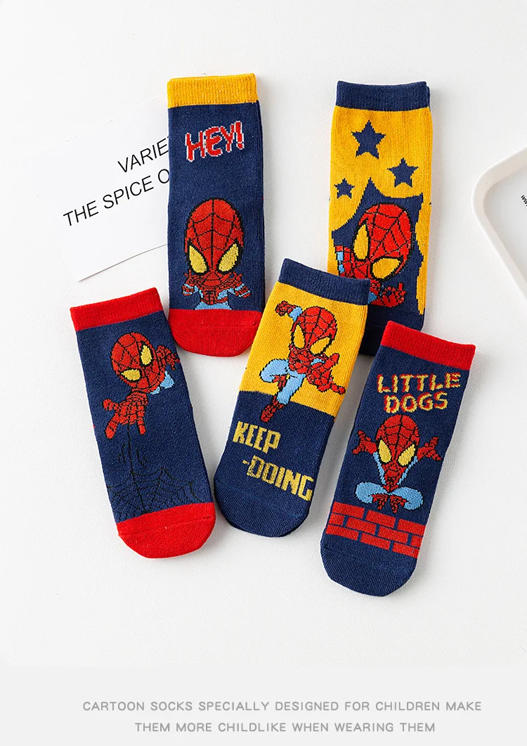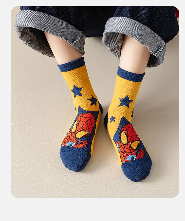 5 Pairs Marvel Kids Socks Spider-Man Kawaii New Fall Cartoon Boy Children Mid-calf Socks Cotton Sock for Boys Gifts