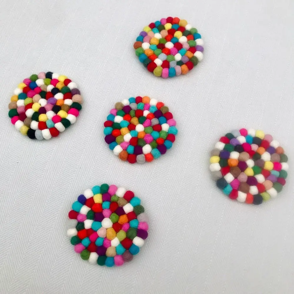 5 pcs Wool Felt Round Felt Ball Coasters Colorful 4 Inches Felt Coaster Pads Rotundity Round Wool Insulation Pad Table