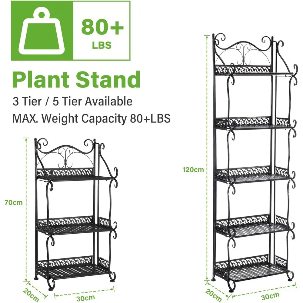 This outdoor plant stand is crafted from high-quality iron with a protective coating to prevent rust, making it suitable for outdoor use. It can support a maximum weight of 150 lbs.