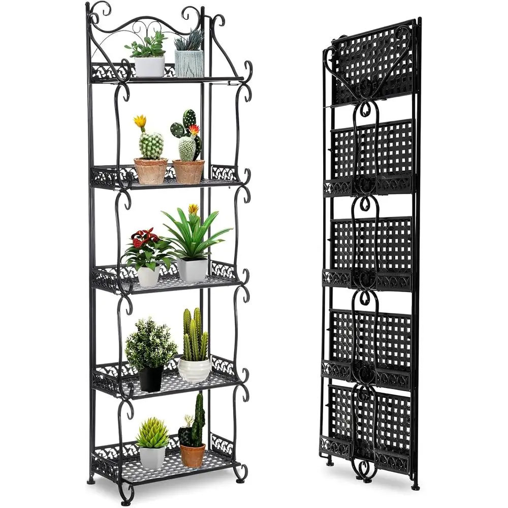 Extremely easy to assemble with a folding design. Simply pull out or in to easily fold or unfold this metal plant stand in seconds without tools. The compact folded dimensions provide great convenience for storage or transport.