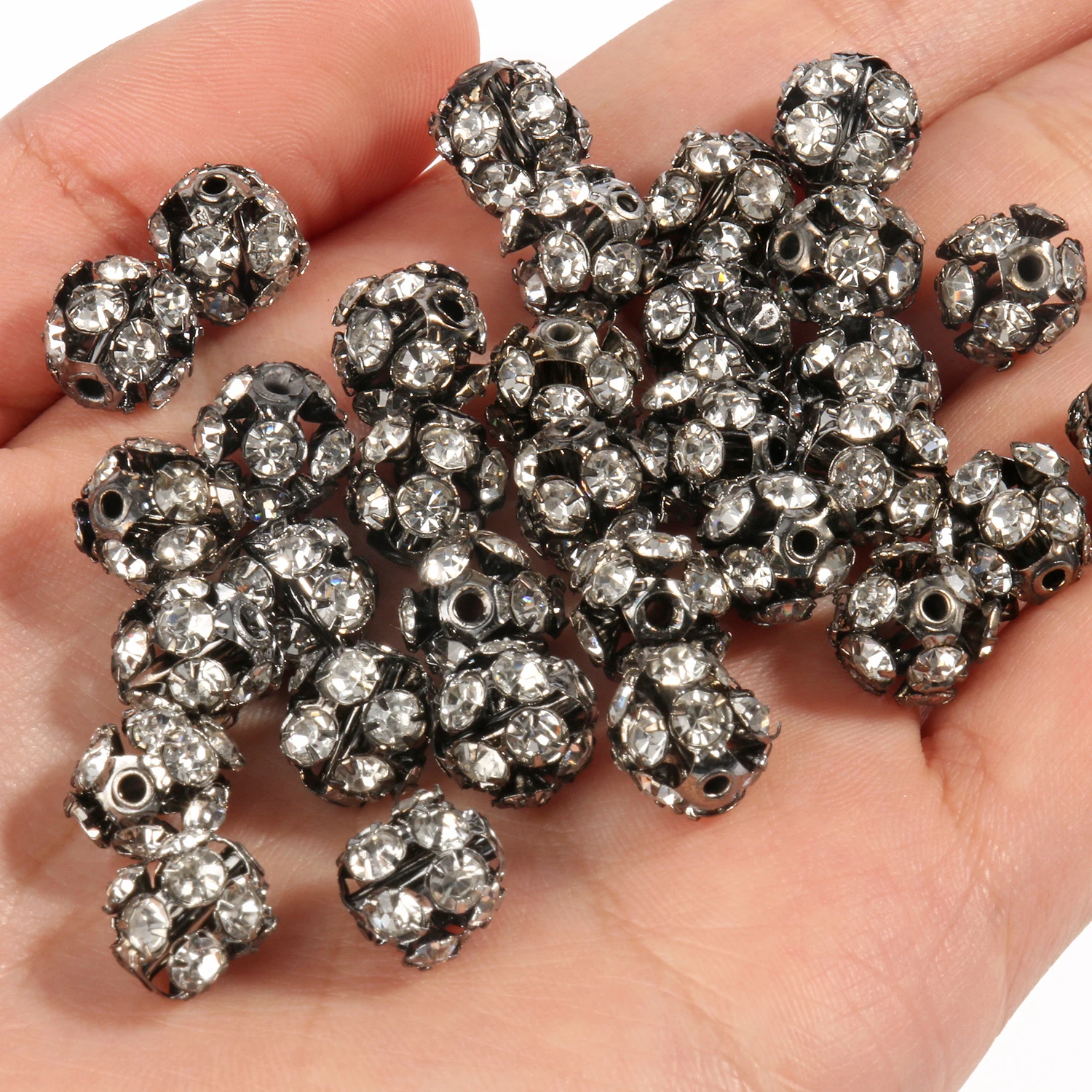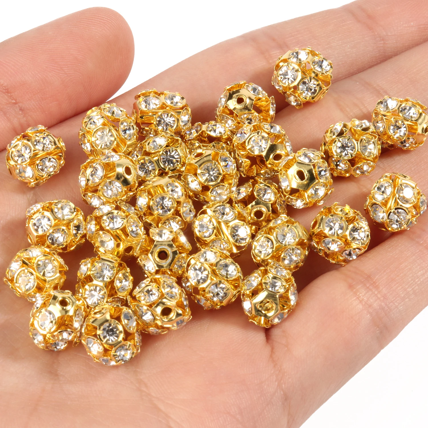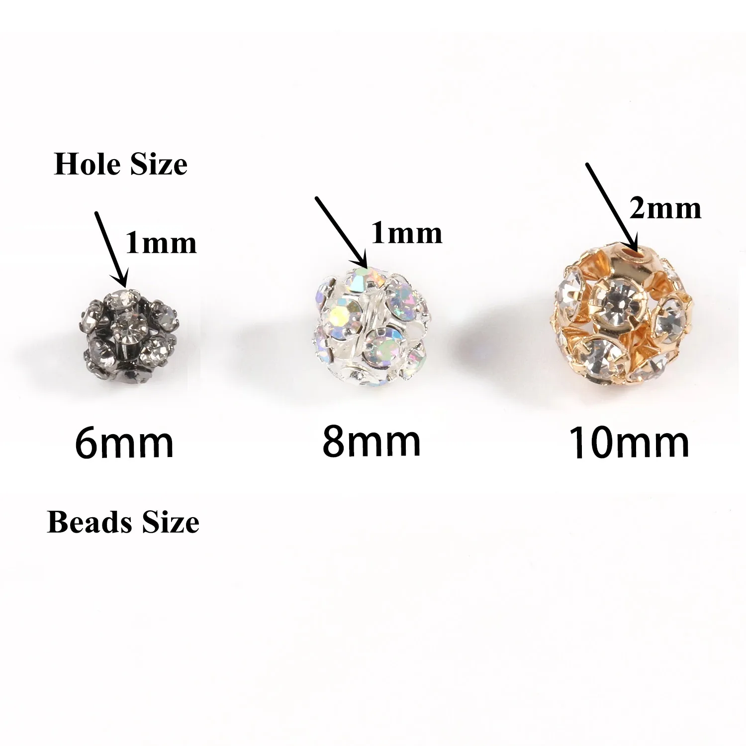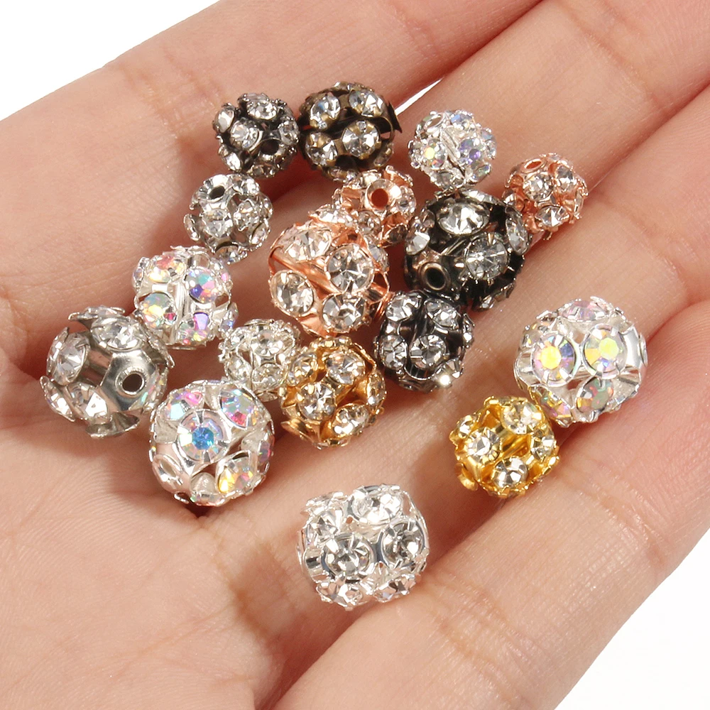 50pc/Lot 6mm 8mm 10mm AB Color Rhinestone Ball Shape Loose Beads Metal Crystal Beads for Jewelry Making DIY Accessories