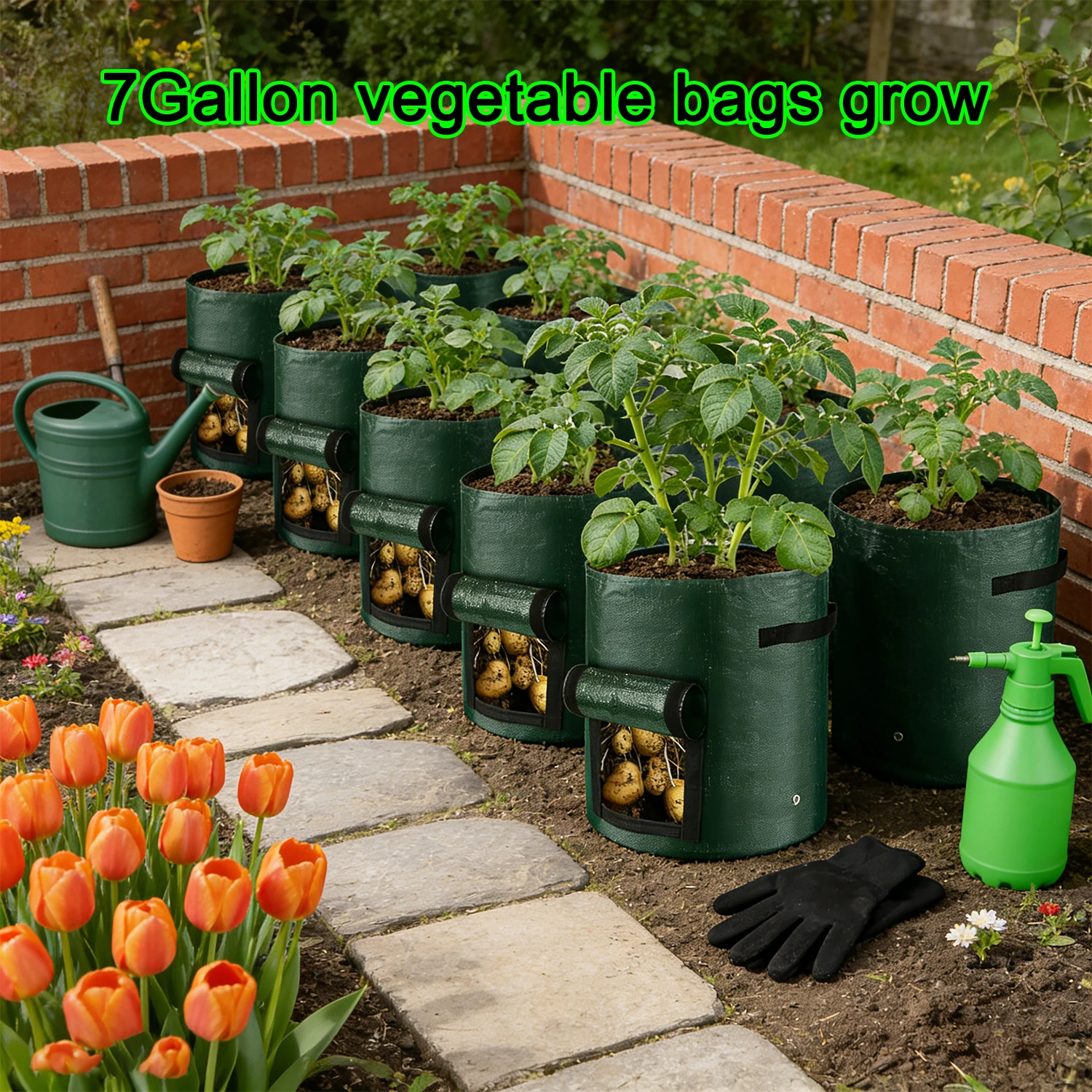 5 reviews for 50PCS 7 Gallon Grow Bags for Vegetables Plants with Handles Pots for Plants Form for Garden Flower Pots for Outdoor &Living Room