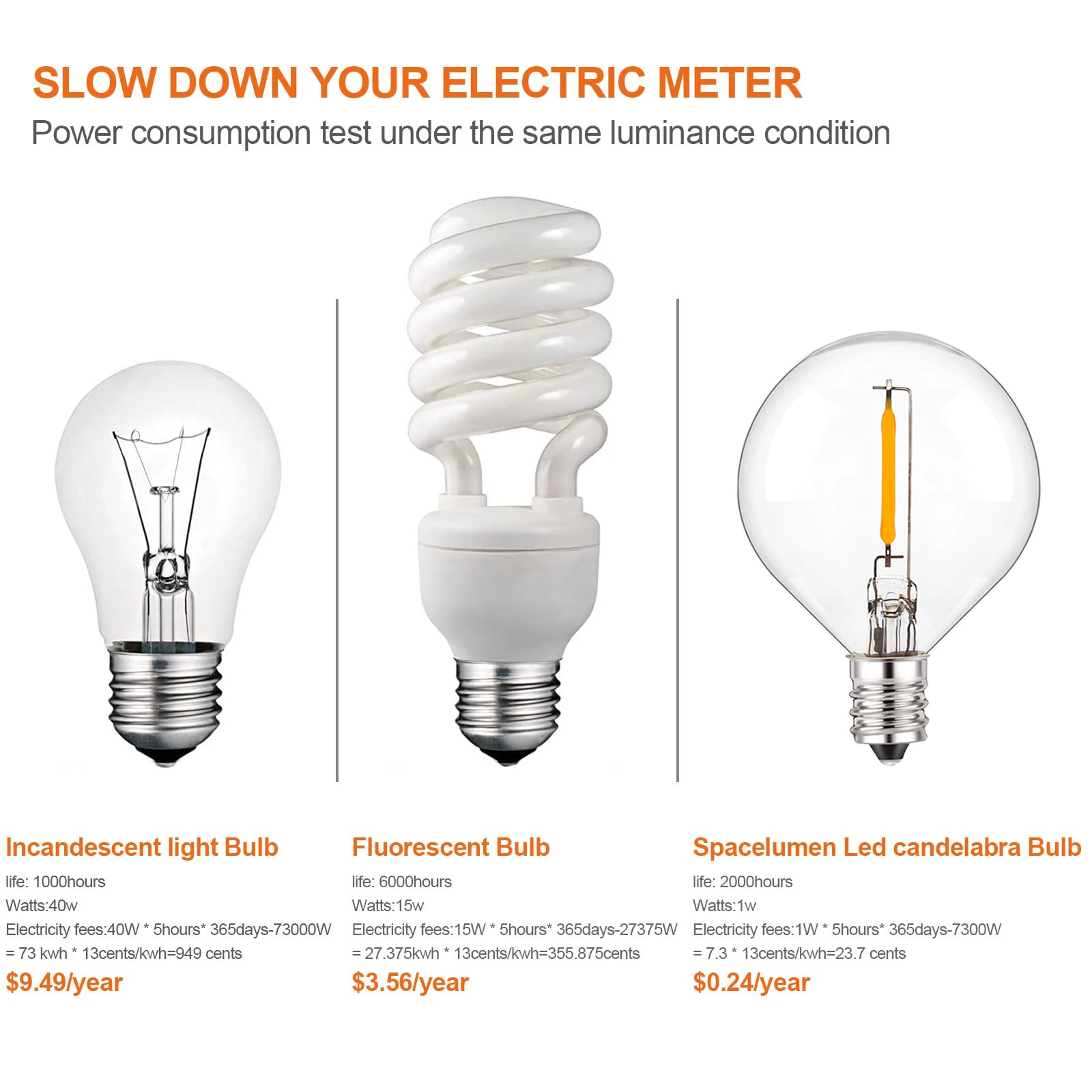 Easy to installation: G40 light bulbs are the perfect combination of modern technology and vintage styling bulbs. Just screw the E12 base bulbs into the empty sockets, then you can enjoy the vintage atmosphere with you friends