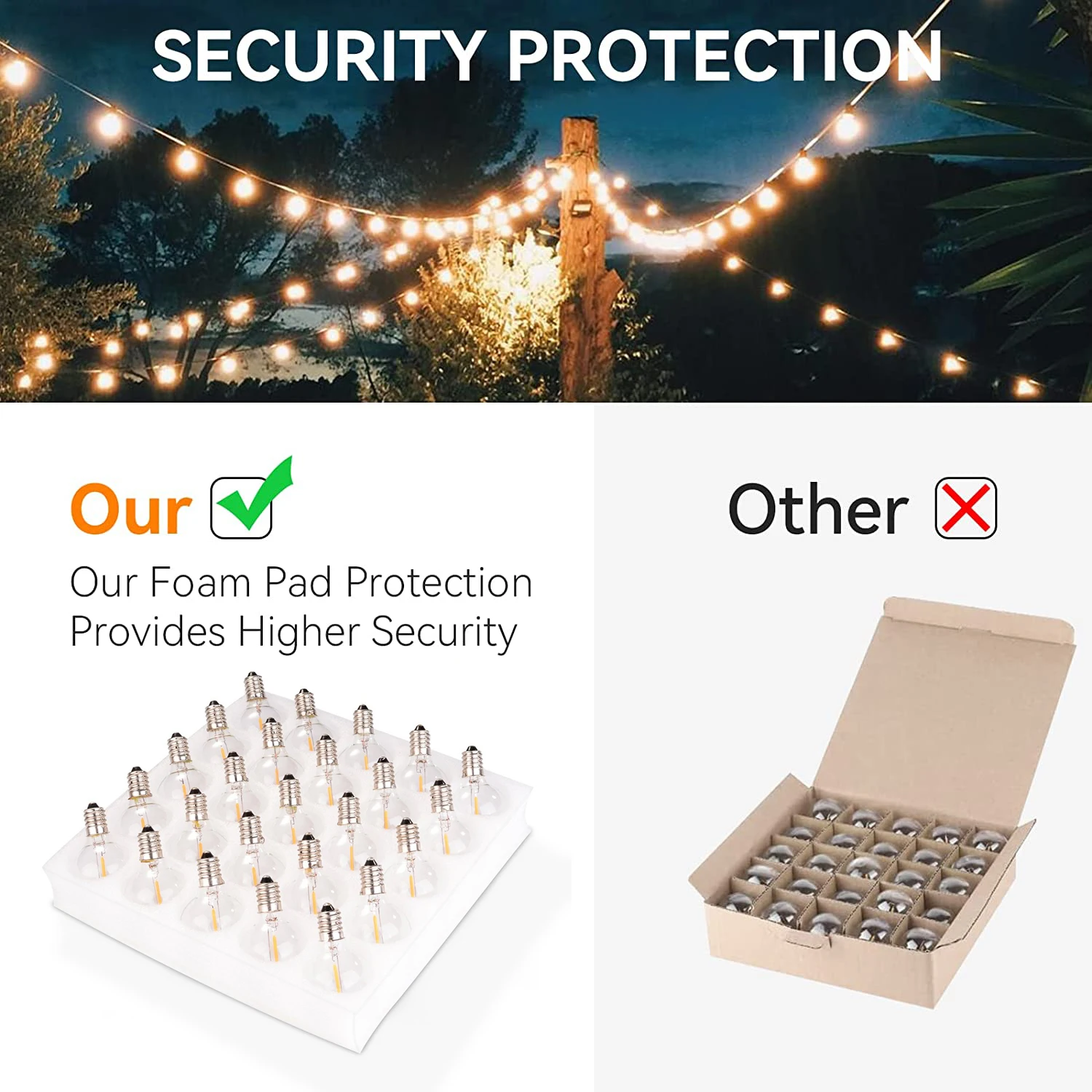 Application:This replacement bulb can be used on your beautiful indoor outdoor string light ,Party Patio Garden Backyard Porch Balcony Umbrella. One box of bulbs, multiple uses.High CRI 90+ brings out vivid and natural colors.
