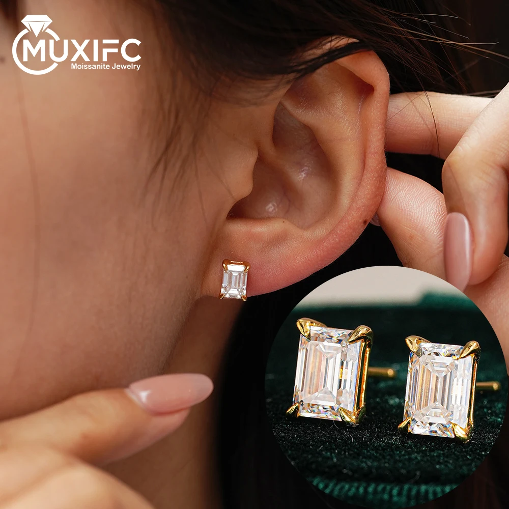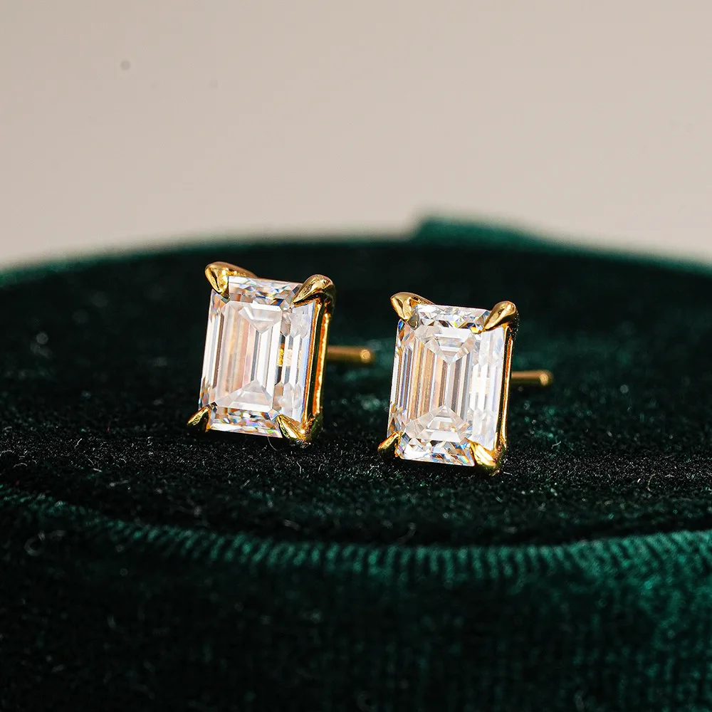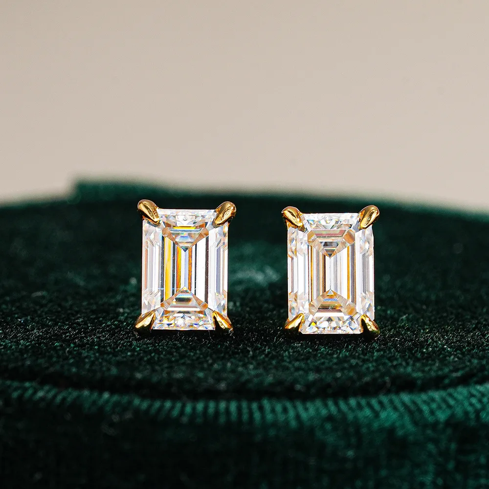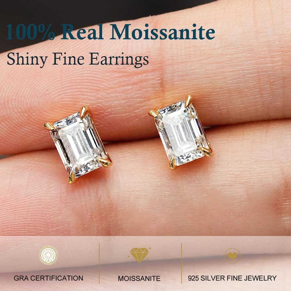 5*7mm Emerald Cut Moissanite Earrings for Women 4 Claws Rectangular 1Ct D Color S925 Silver Plated 18K White Gold Stud Earring