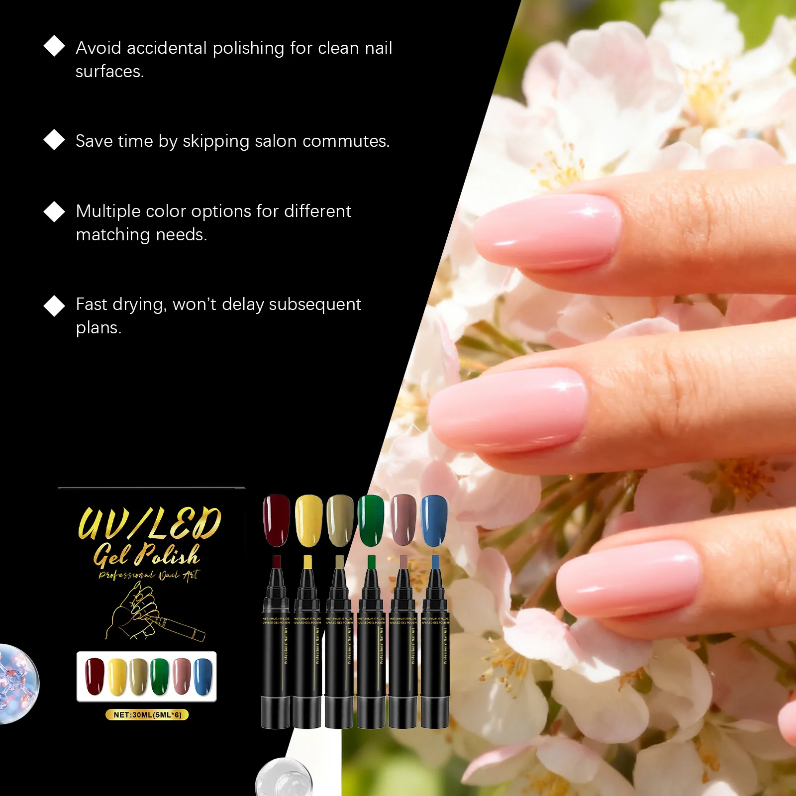 4. Quick dry formula: Enjoy a fast-drying experience with our high-quality nail polish pens. Say goodbye to long wait times and hello to instant results, making your at-home manicure routine more efficient.