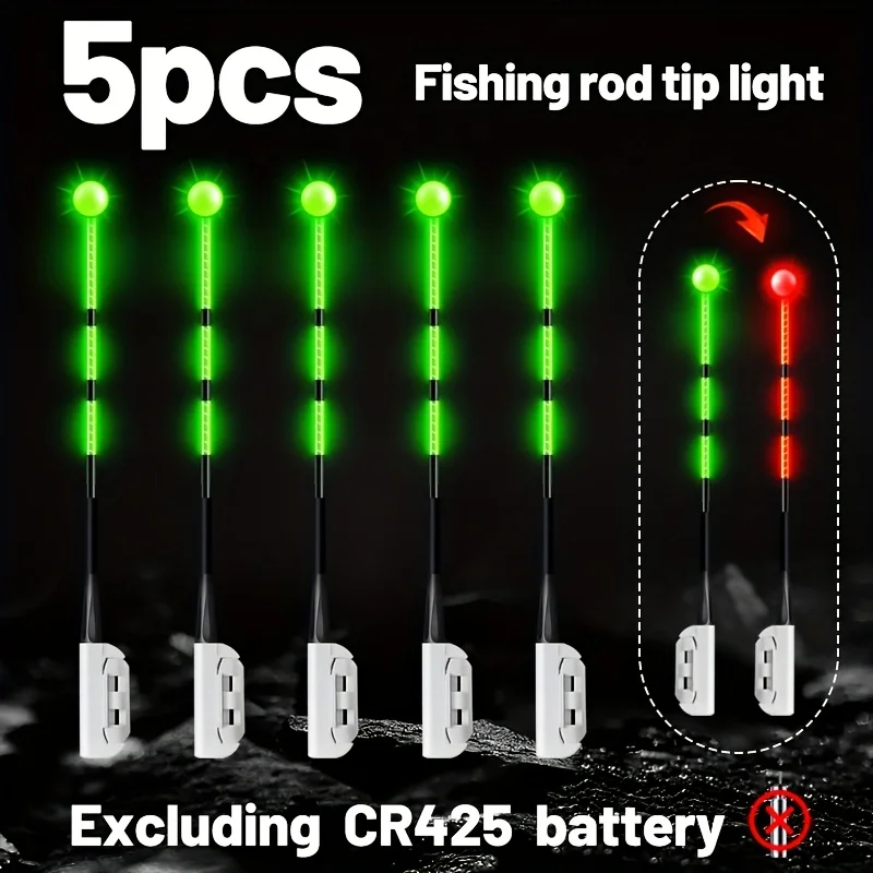 5 reviews for 5pcs Fishing Bite Indicator Set, Light Changes from Green to Red When Bitten, Rod Tip Glow Stick for Night Fishing