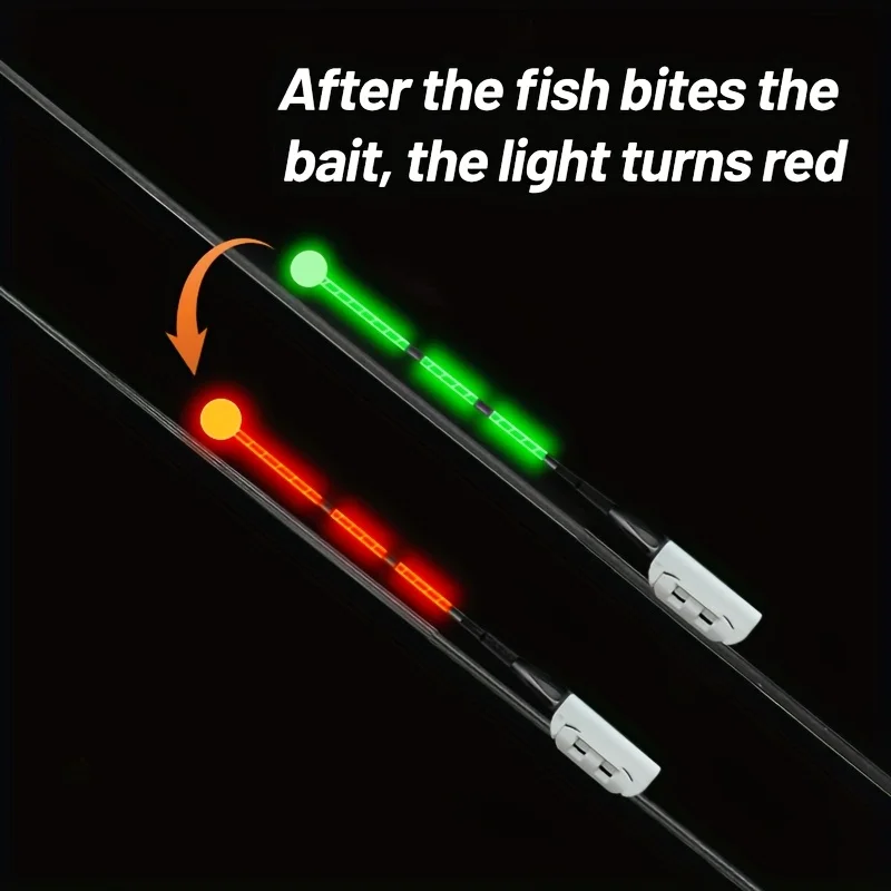 The glow stick changes color from green to red when a bite occurs, providing a visual signal for anglers.
