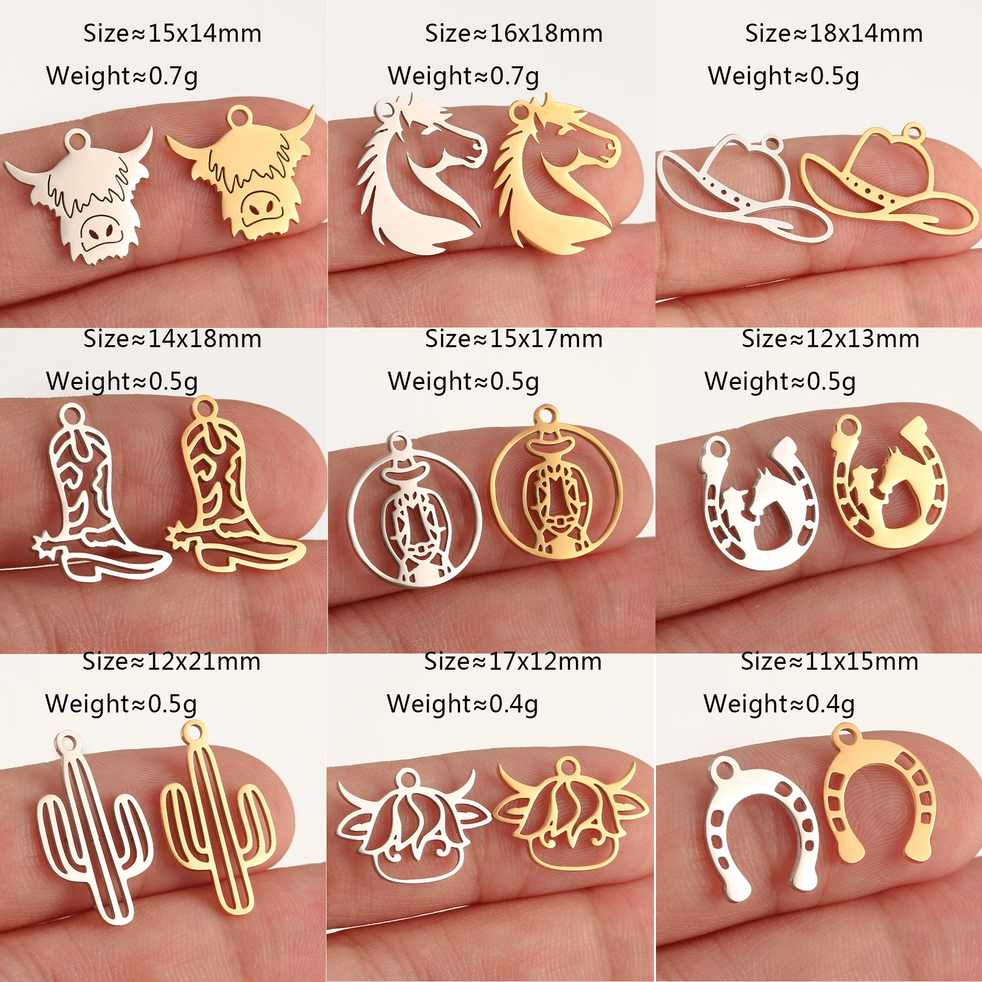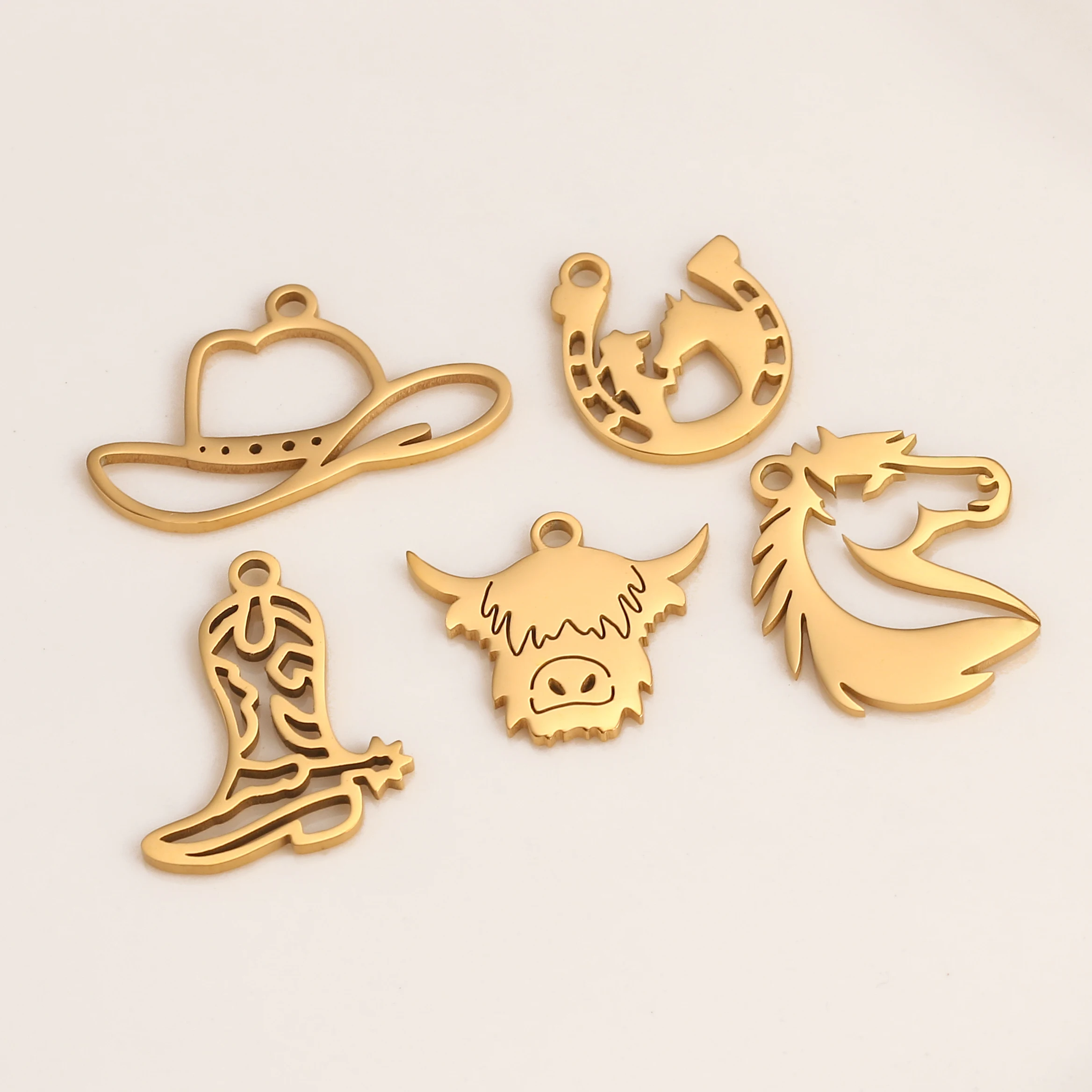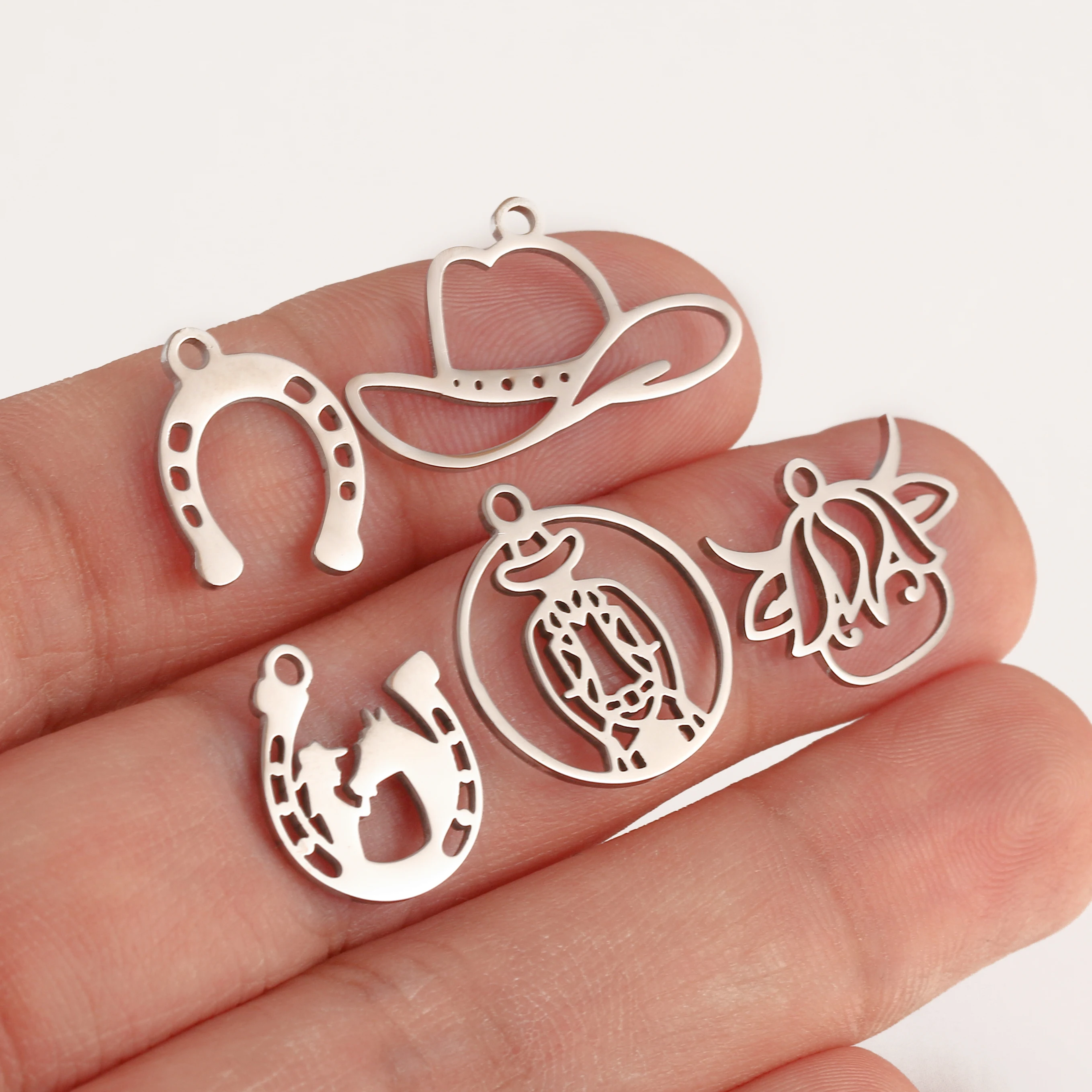 5Pcs Western Cowboy Boot/U Horseshoe/Hat Charms Stainlesss Steel Equestrian Pendants Fadeless Crafts Supplies DIY Jewelry Making