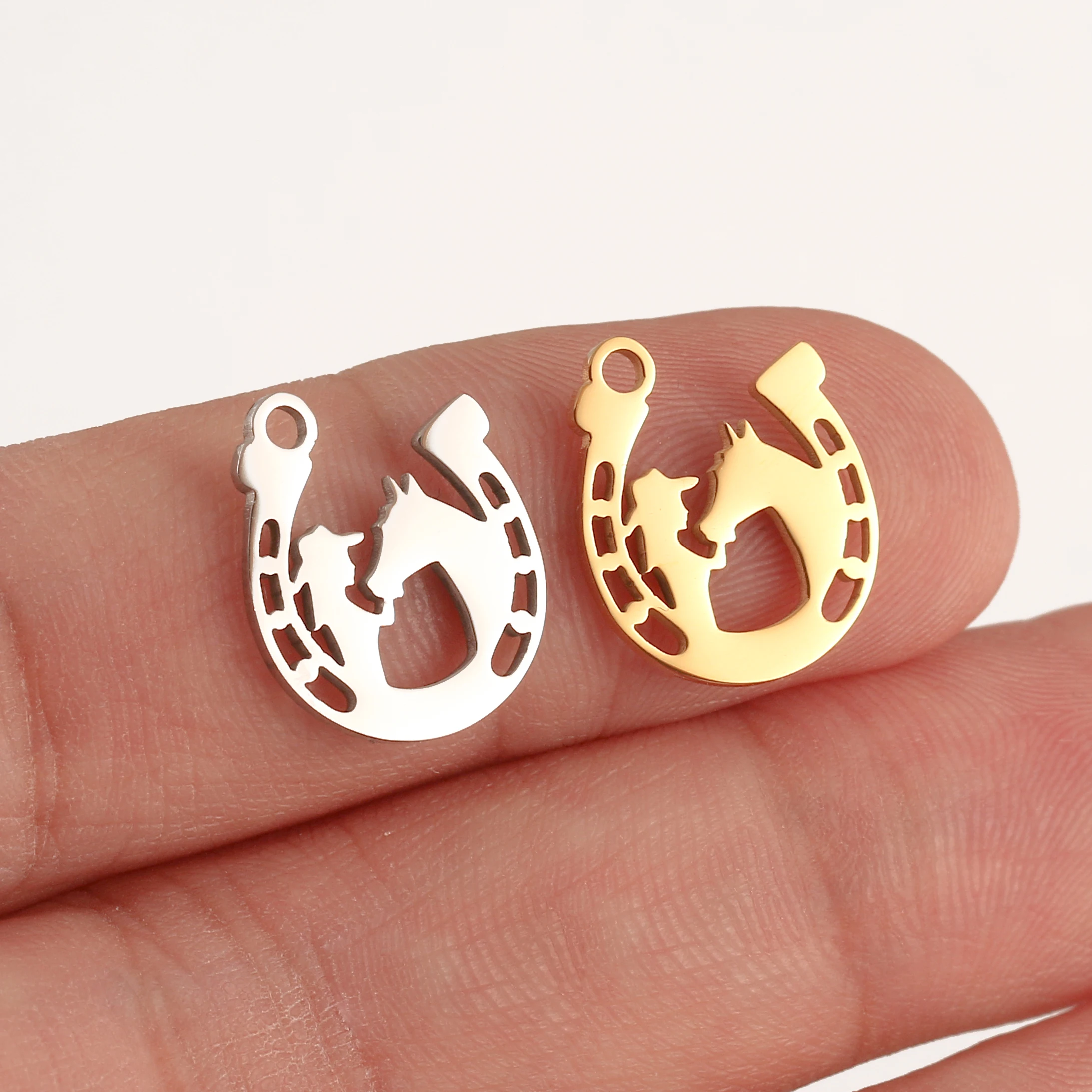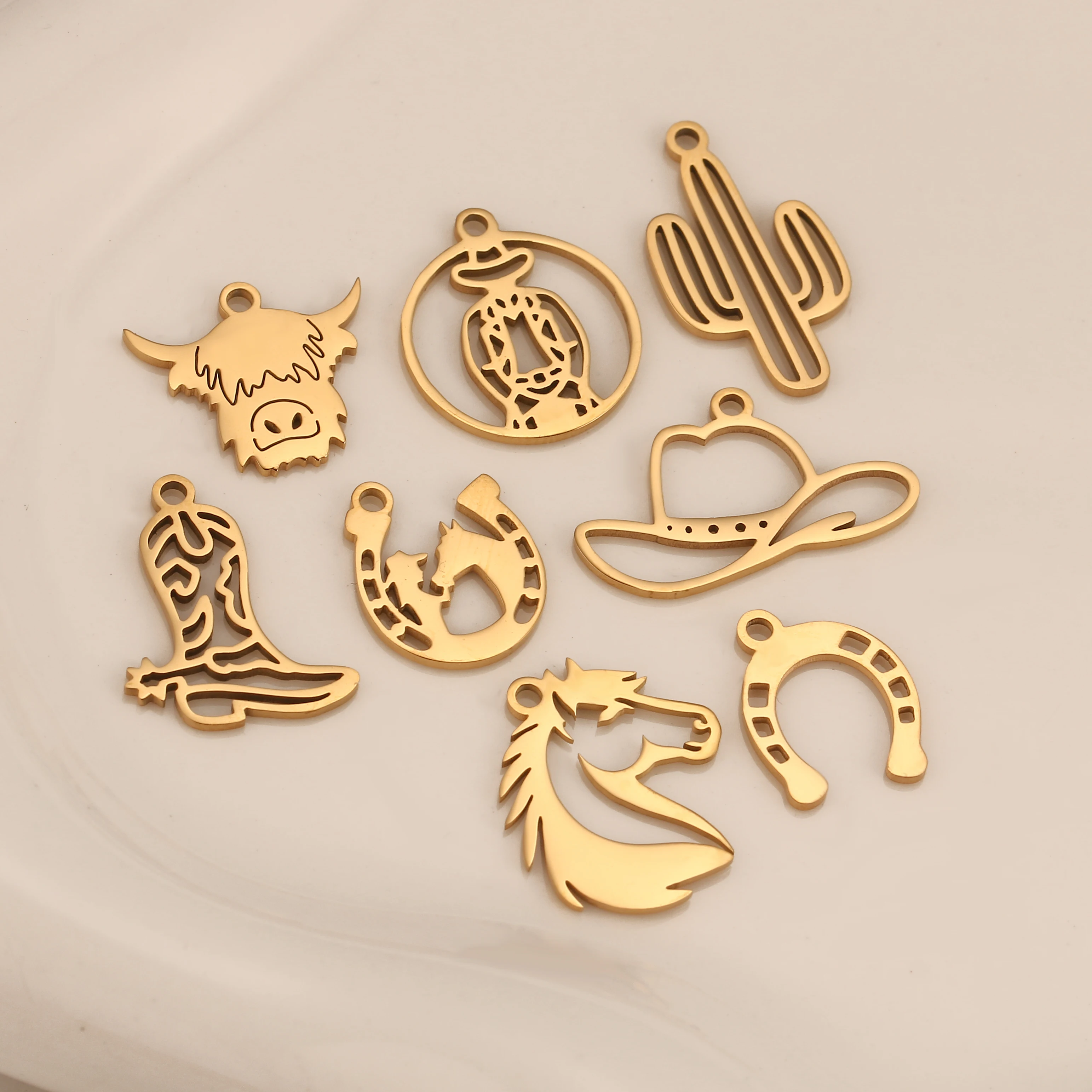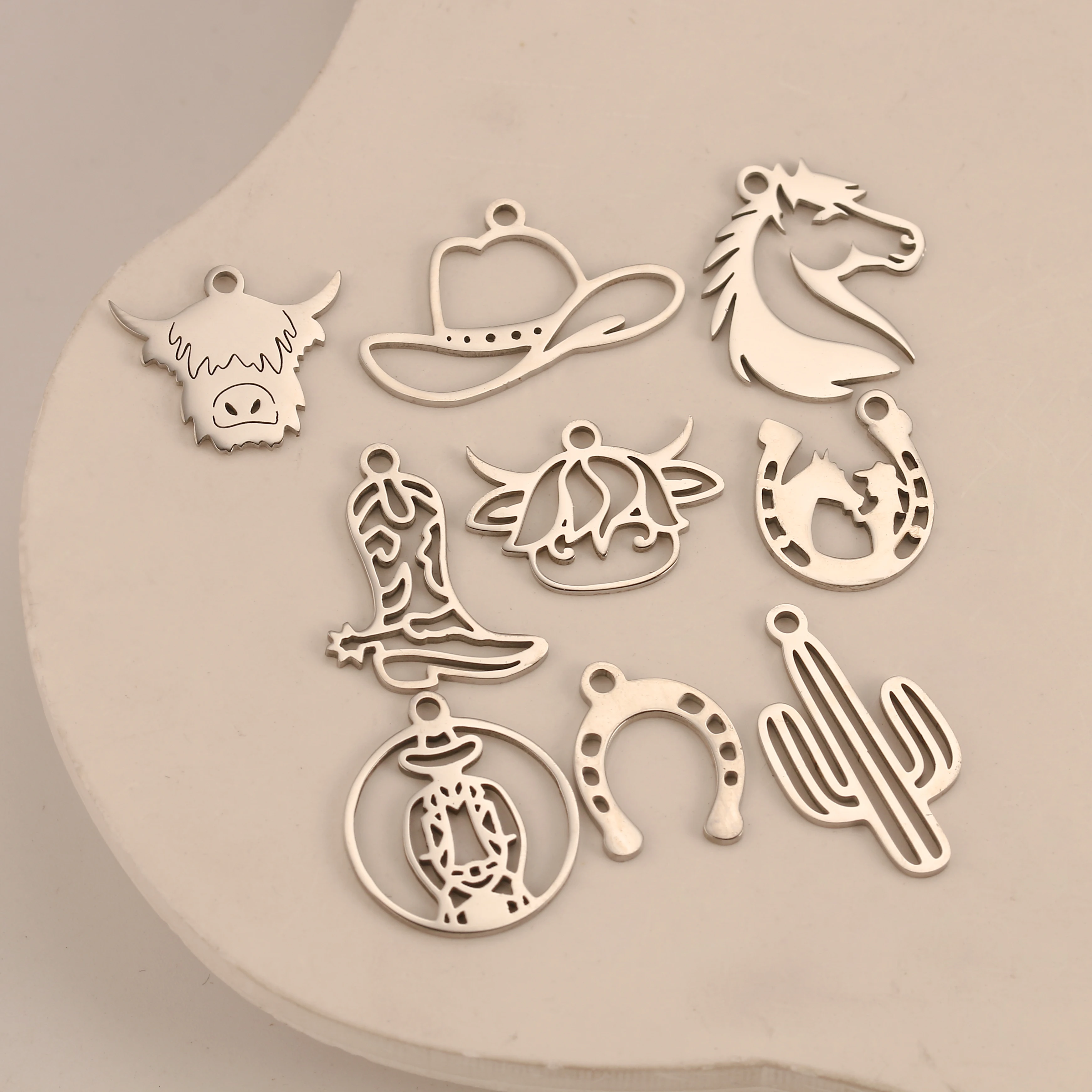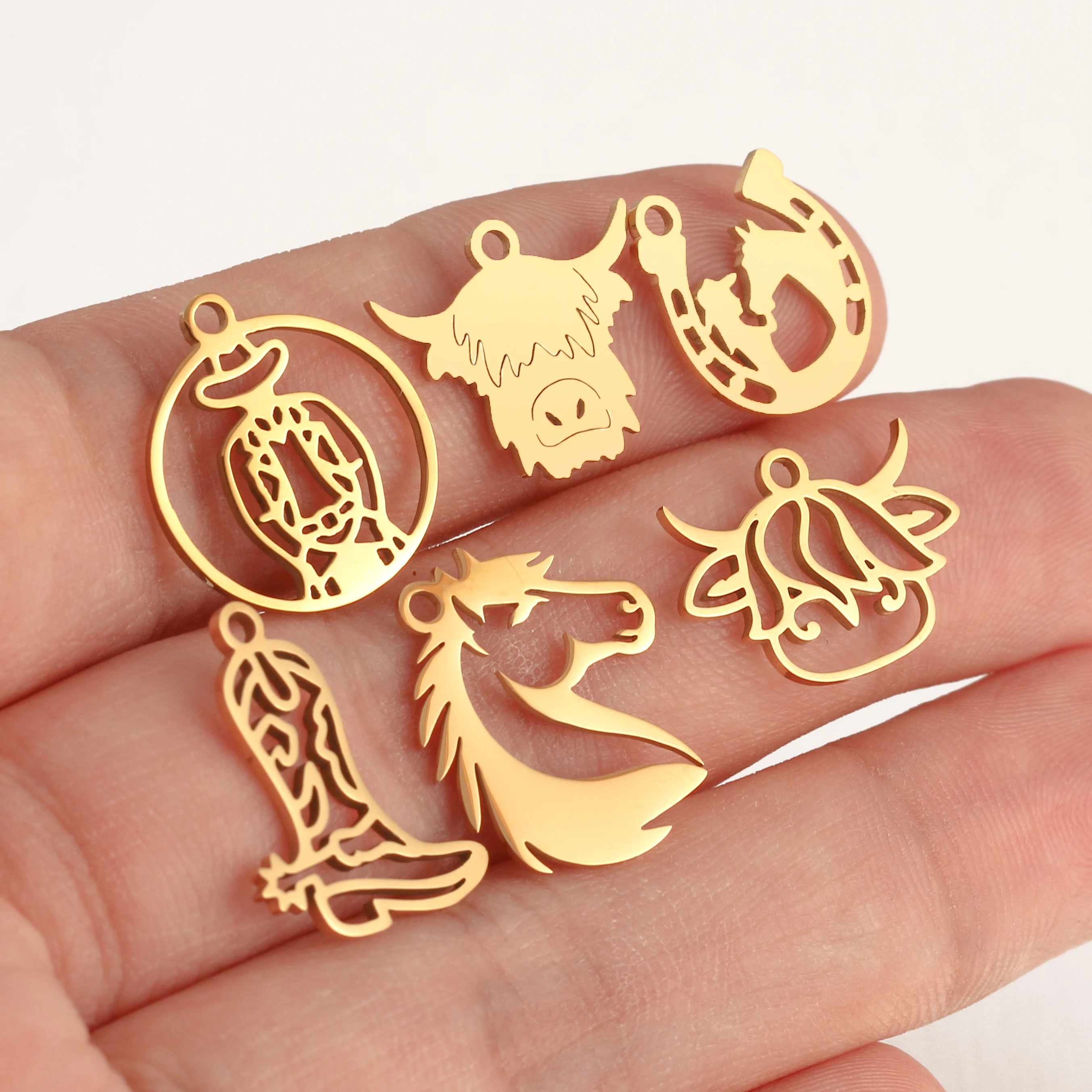 5Pcs Western Cowboy Boot/U Horseshoe/Hat Charms Stainlesss Steel Equestrian Pendants Fadeless Crafts Supplies DIY Jewelry Making