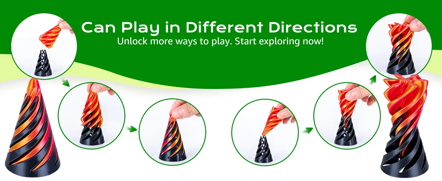 WIDE APPLICATION: Suitable for both children and adults, this fidget toys offer endless fun and relaxation. Kids can explore and be fascinated by its intriguing geometric forms, sparking their interest in mathematics and geometry. Adults, meanwhile, can use this 3D printed toys to unwind and focus during moments of downtime. Compact and lightweight, these spiral toys are easily portable for enjoyment anywhere—at your desk, during meetings, or while traveling.