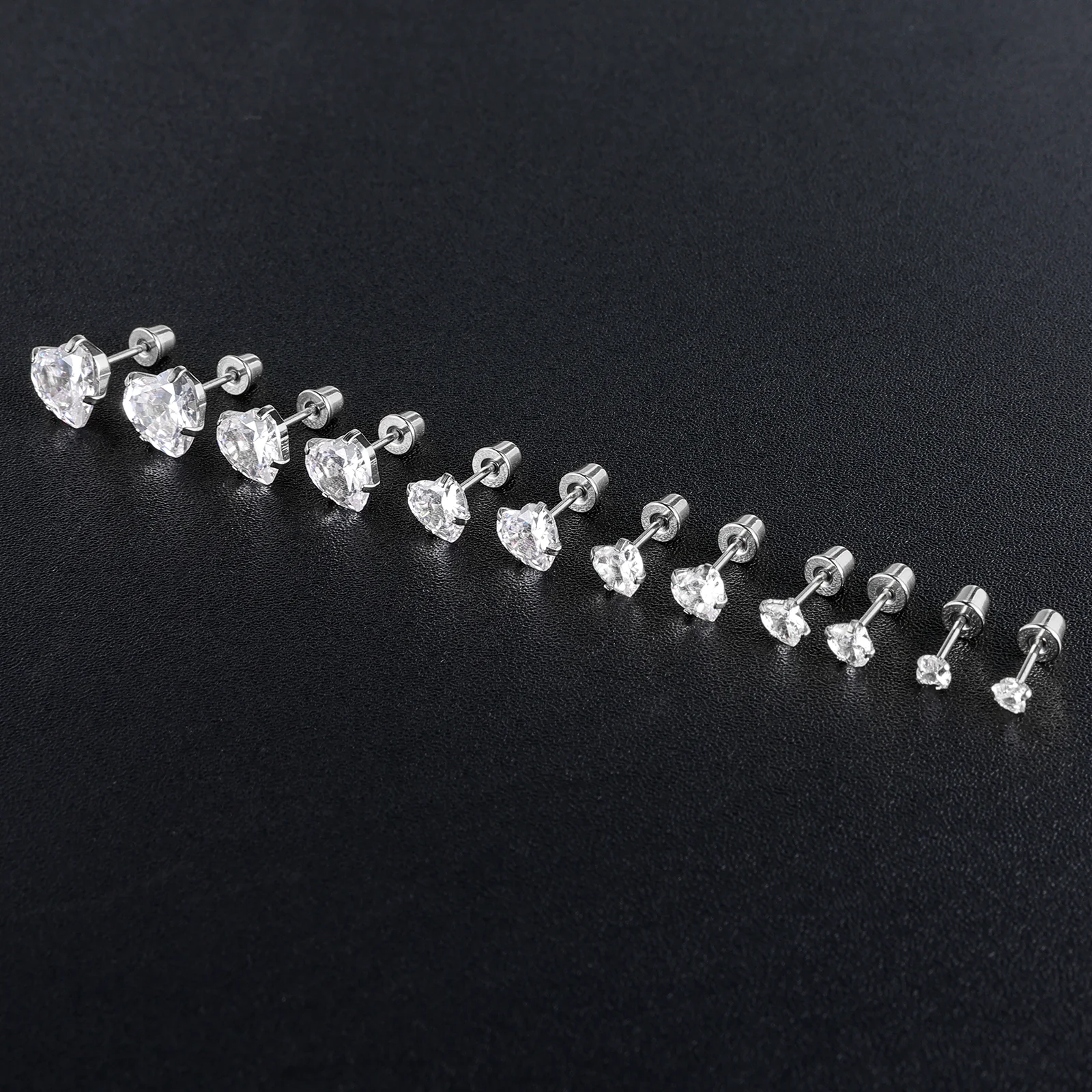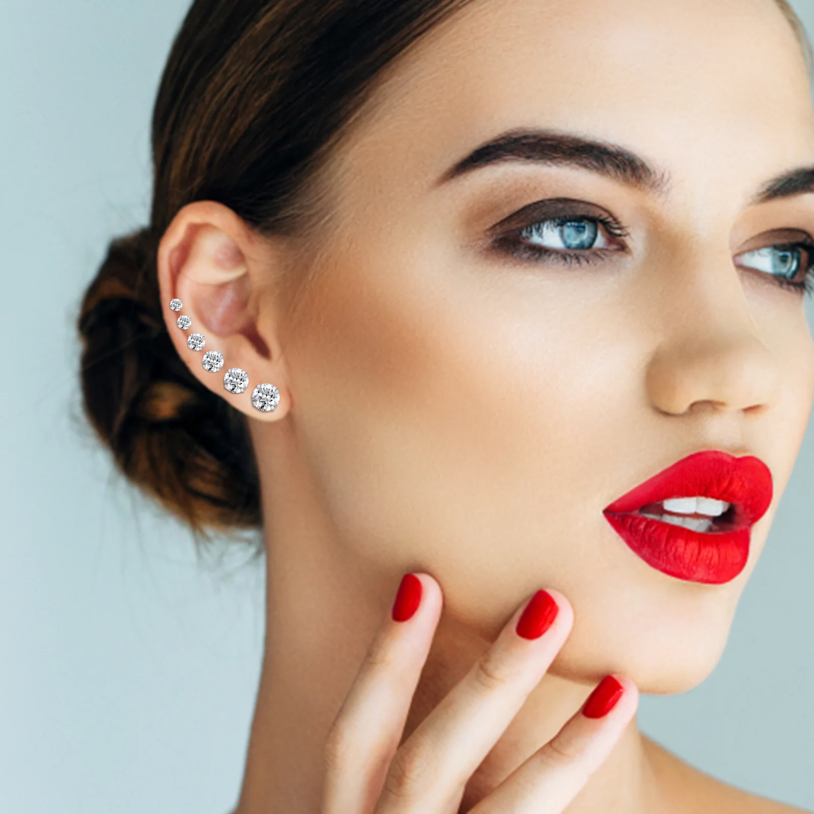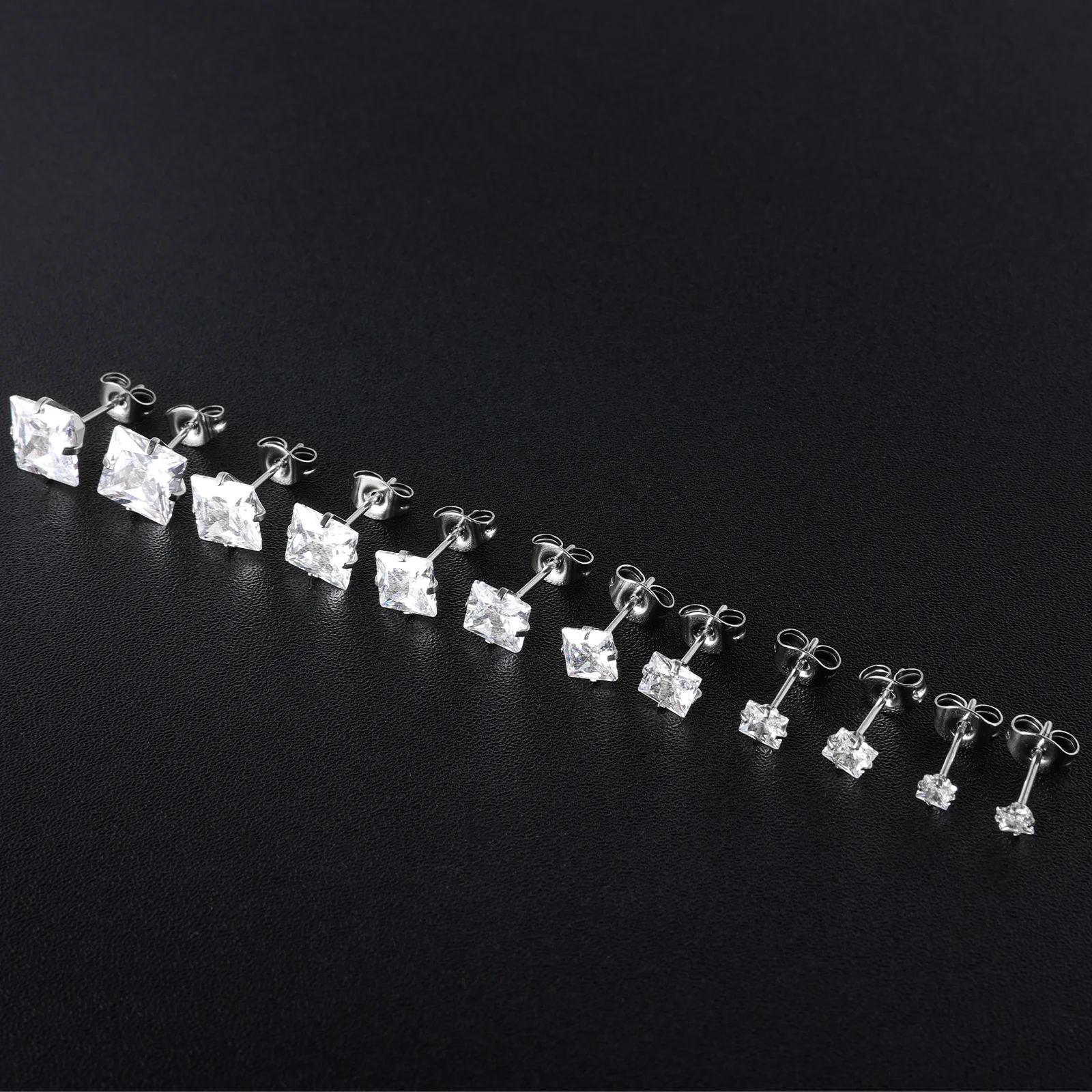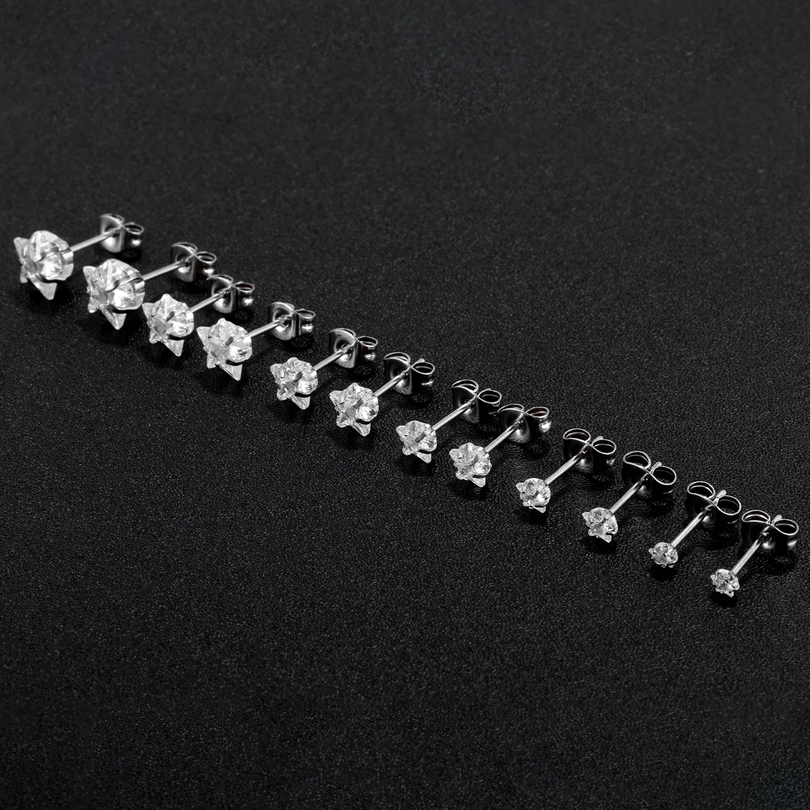One order you can get 6 pairs CZ stud earrings. It included sizes of 3mm/4mm/5mm/6mm/7mm/8mm; Good choice for anyone with  multiple ears piercings or needs of multiple sizes. We provide heart Star square and round shape stud earrings for your selections