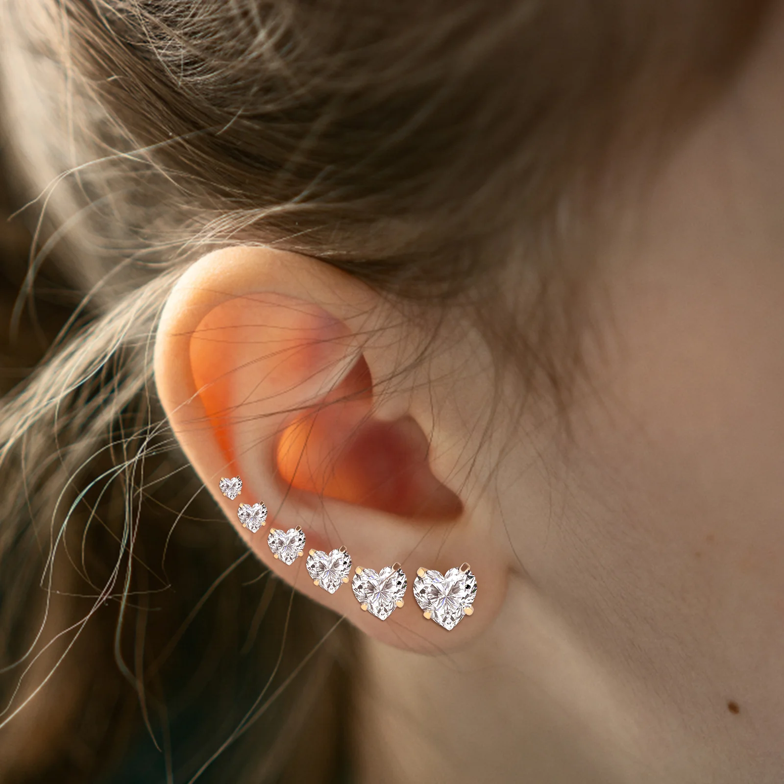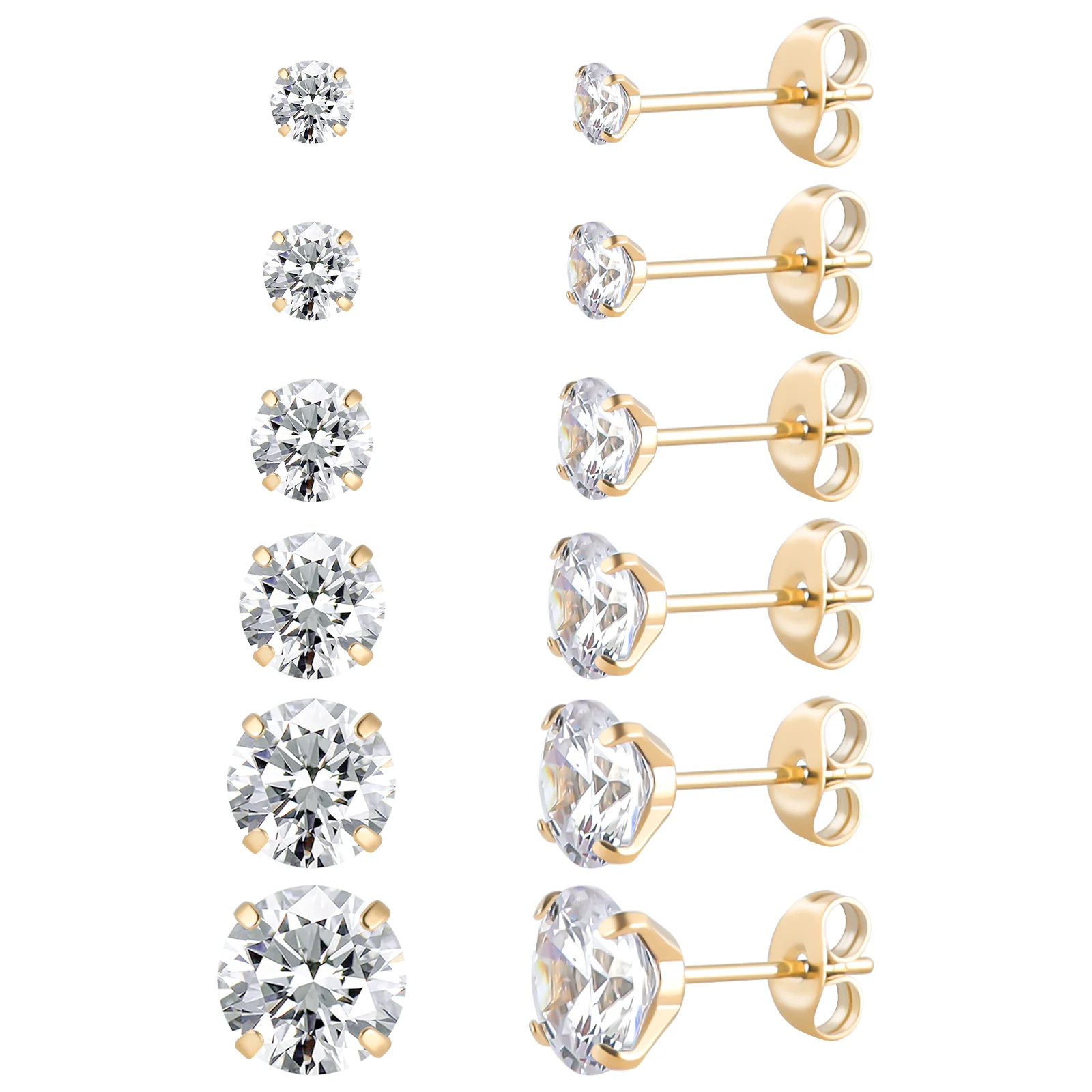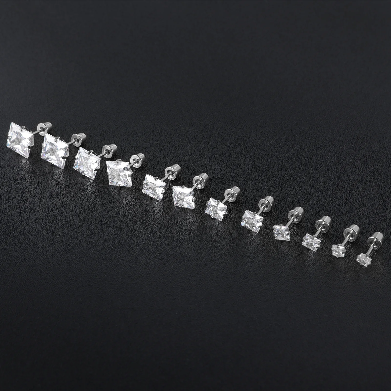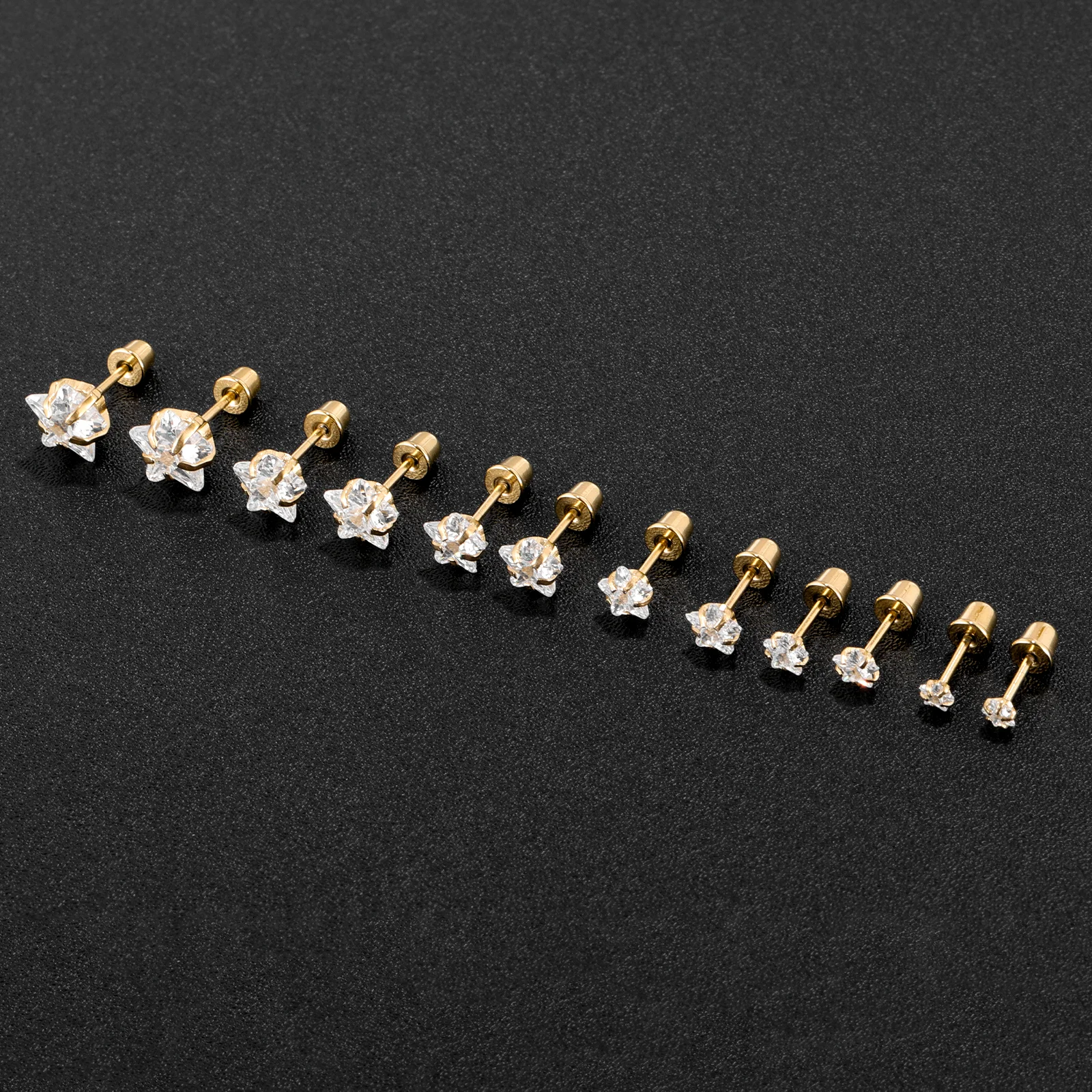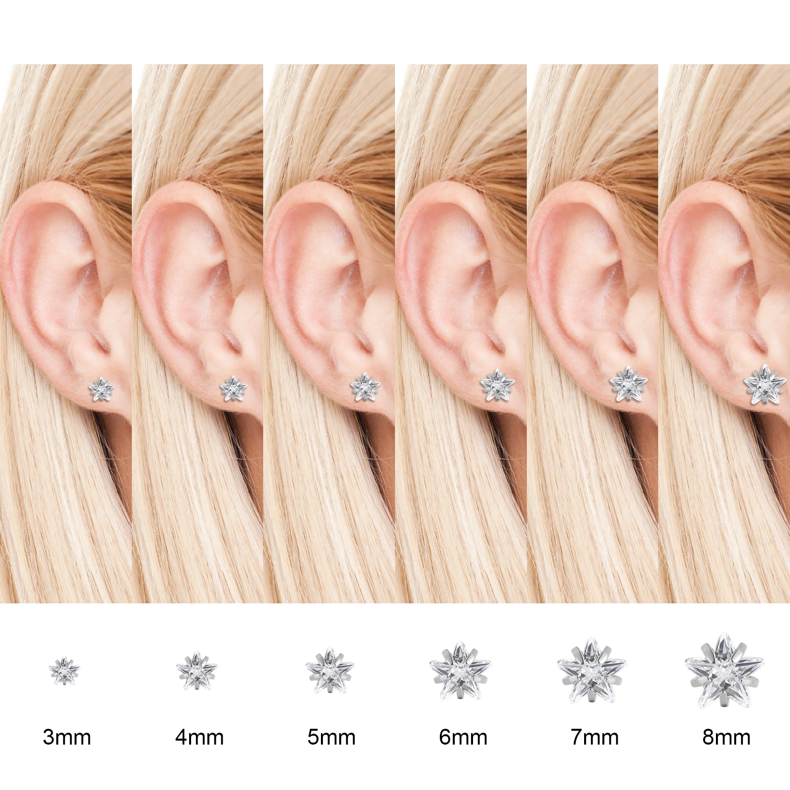 One order you can get 6 pairs CZ stud earrings. It included sizes of 3mm/4mm/5mm/6mm/7mm/8mm; Good choice for anyone with  multiple ears piercings or needs of multiple sizes. We provide heart Star square and round shape stud earrings for your selections