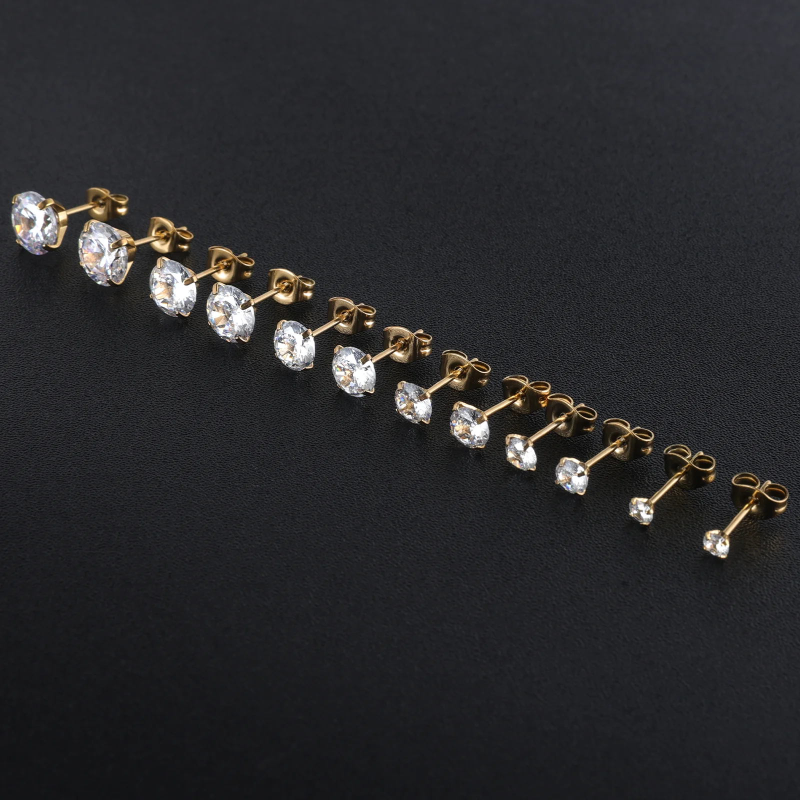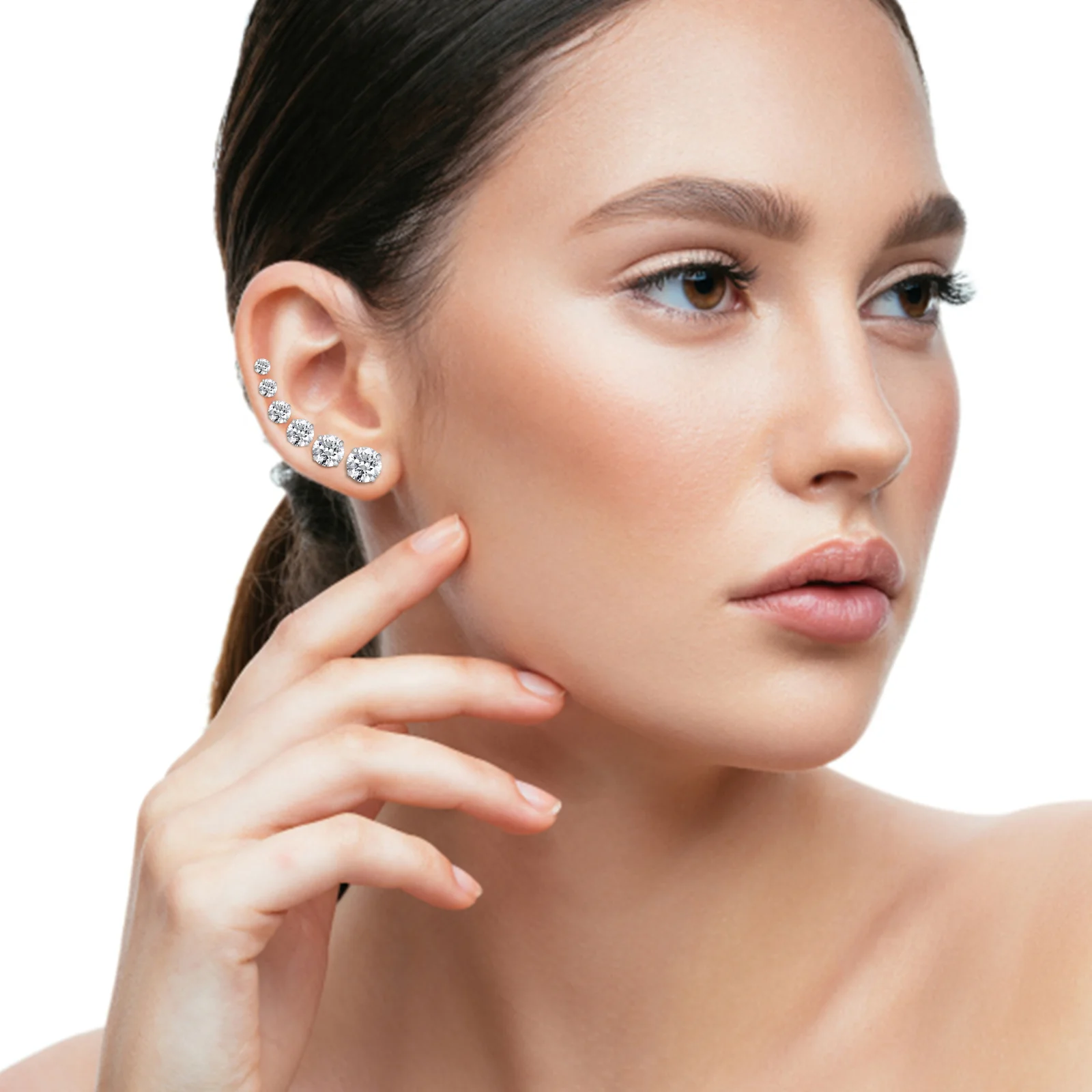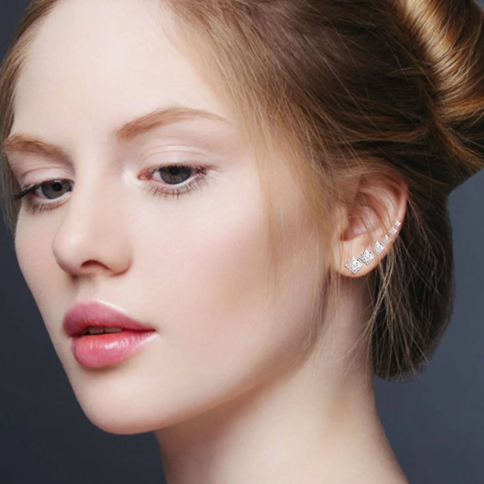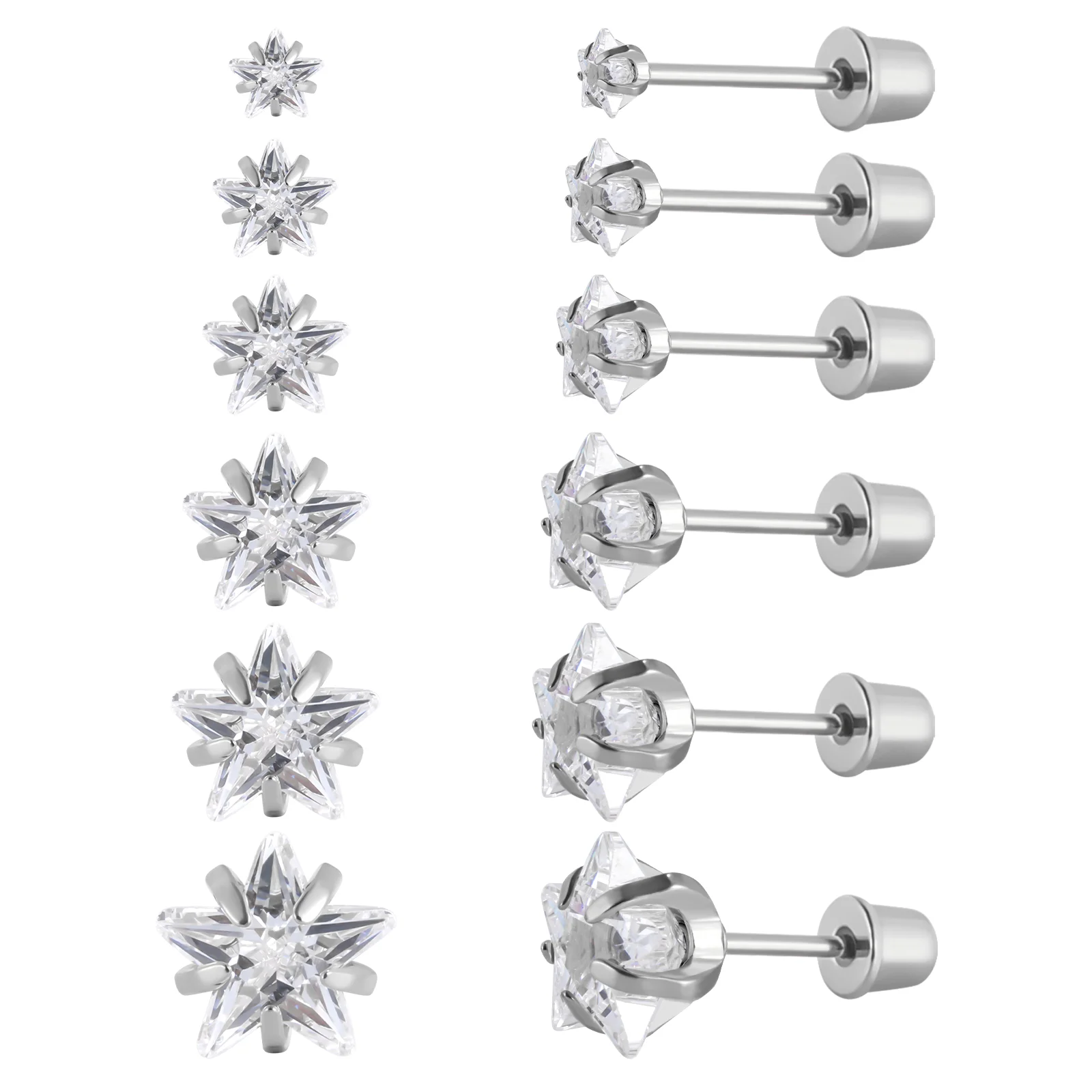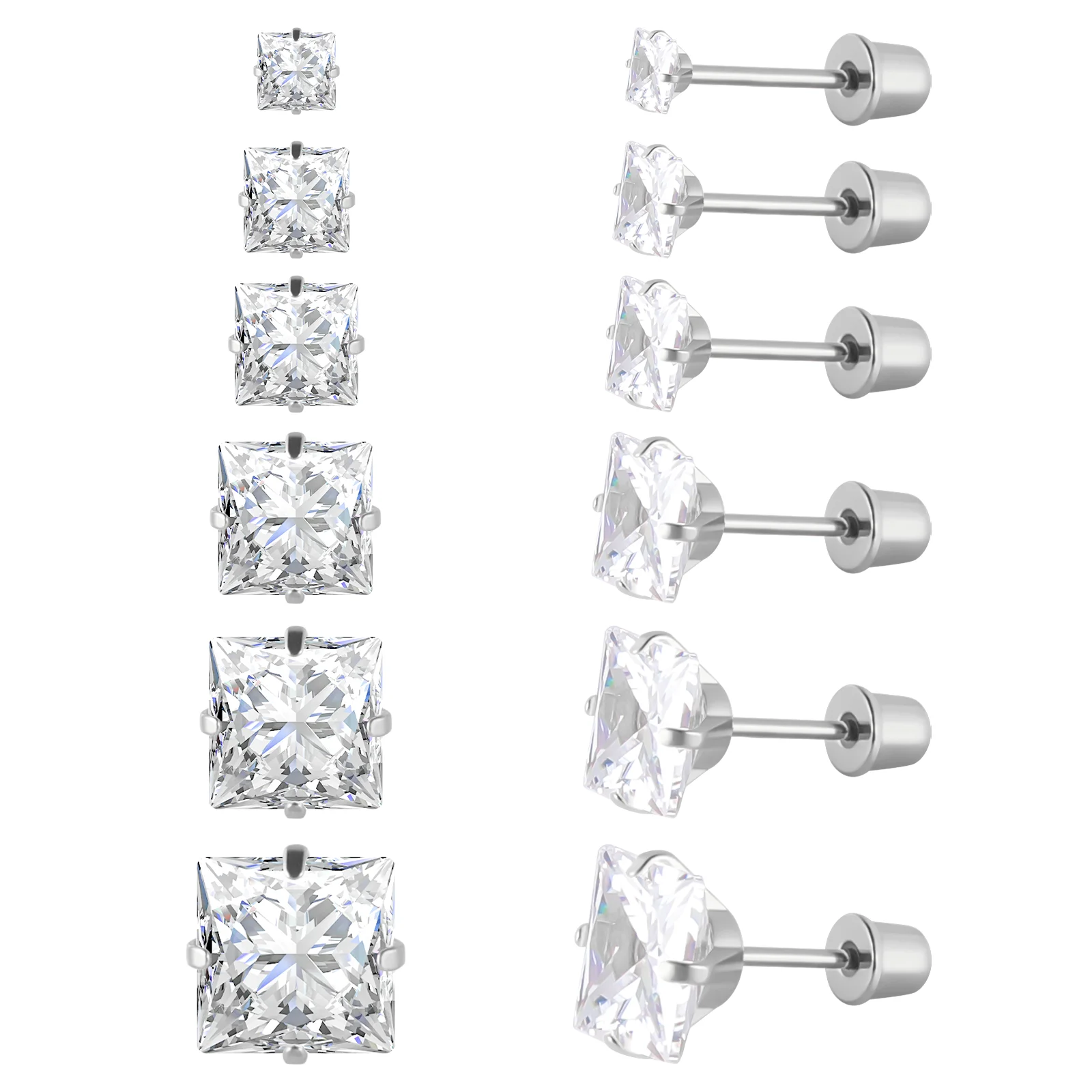 One order you can get 6 pairs CZ stud earrings. It included sizes of 3mm/4mm/5mm/6mm/7mm/8mm; Good choice for anyone with  multiple ears piercings or needs of multiple sizes. We provide heart Star square and round shape stud earrings for your selections