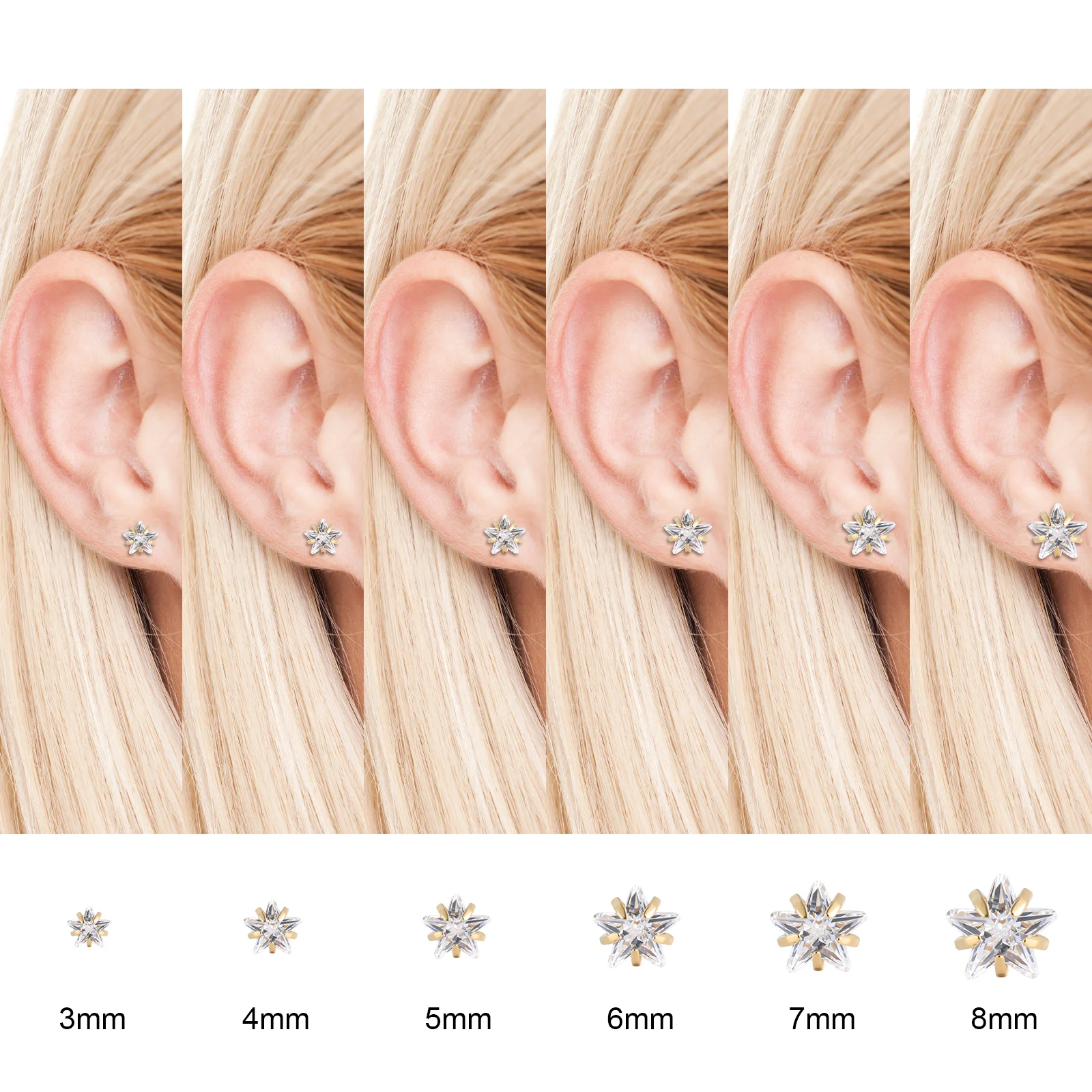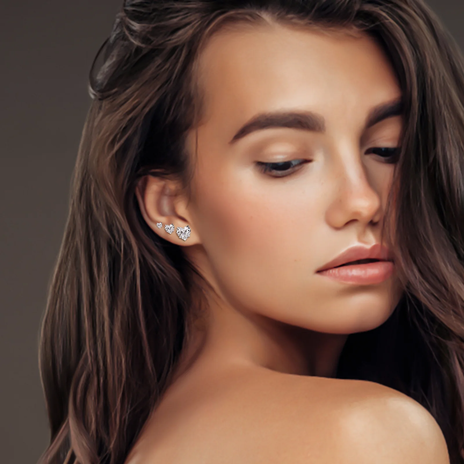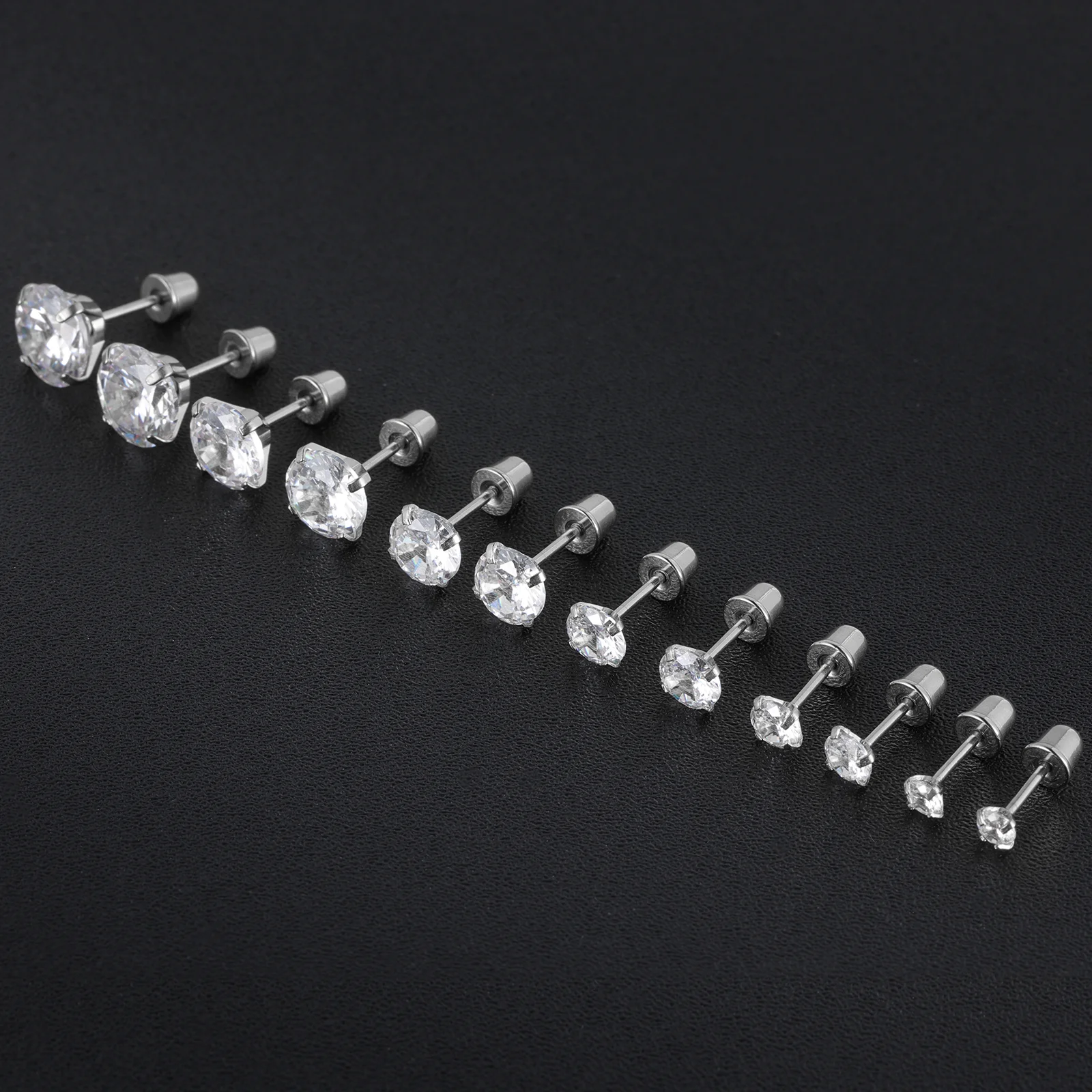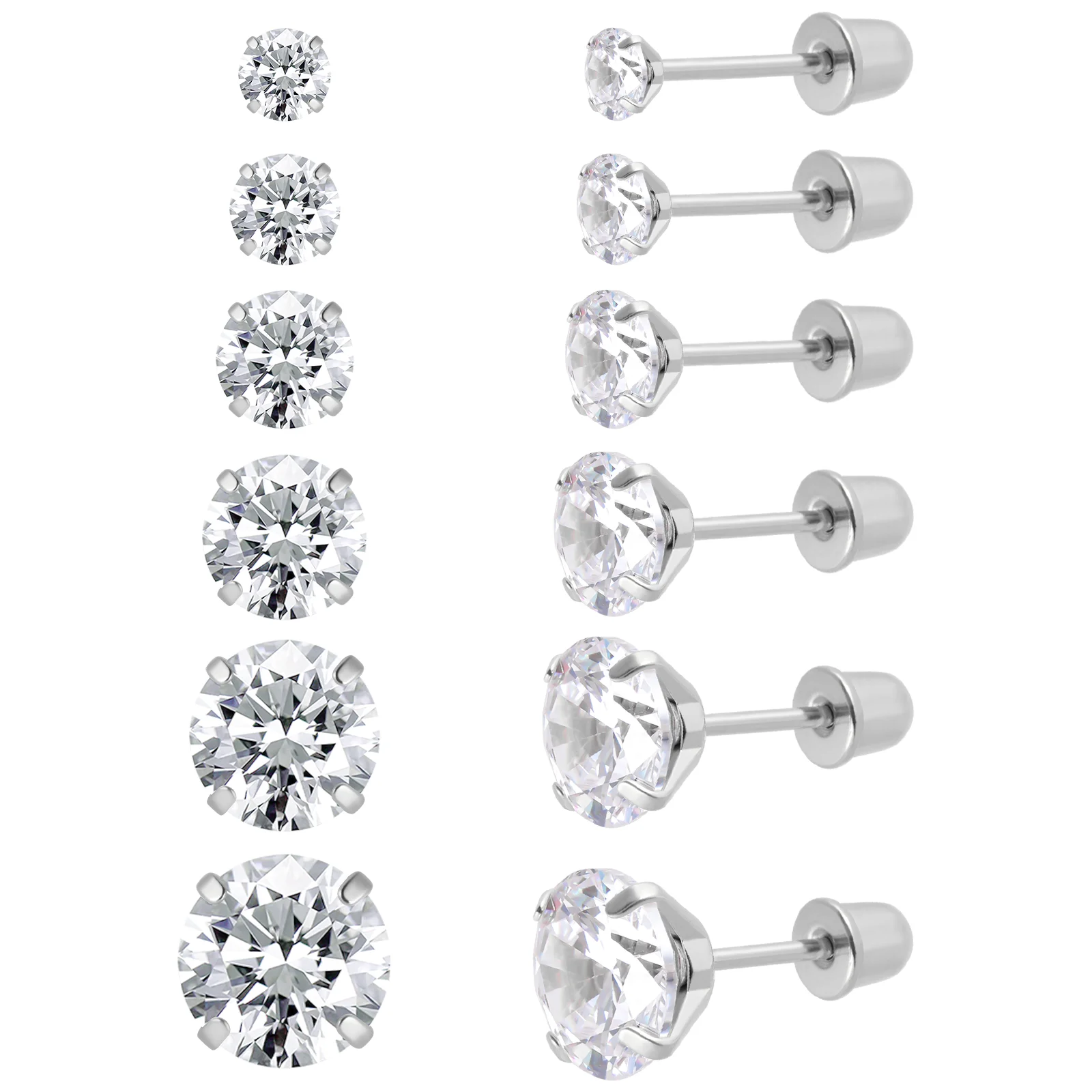 One order you can get 6 pairs CZ stud earrings. It included sizes of 3mm/4mm/5mm/6mm/7mm/8mm; Good choice for anyone with  multiple ears piercings or needs of multiple sizes. We provide heart Star square and round shape stud earrings for your selections