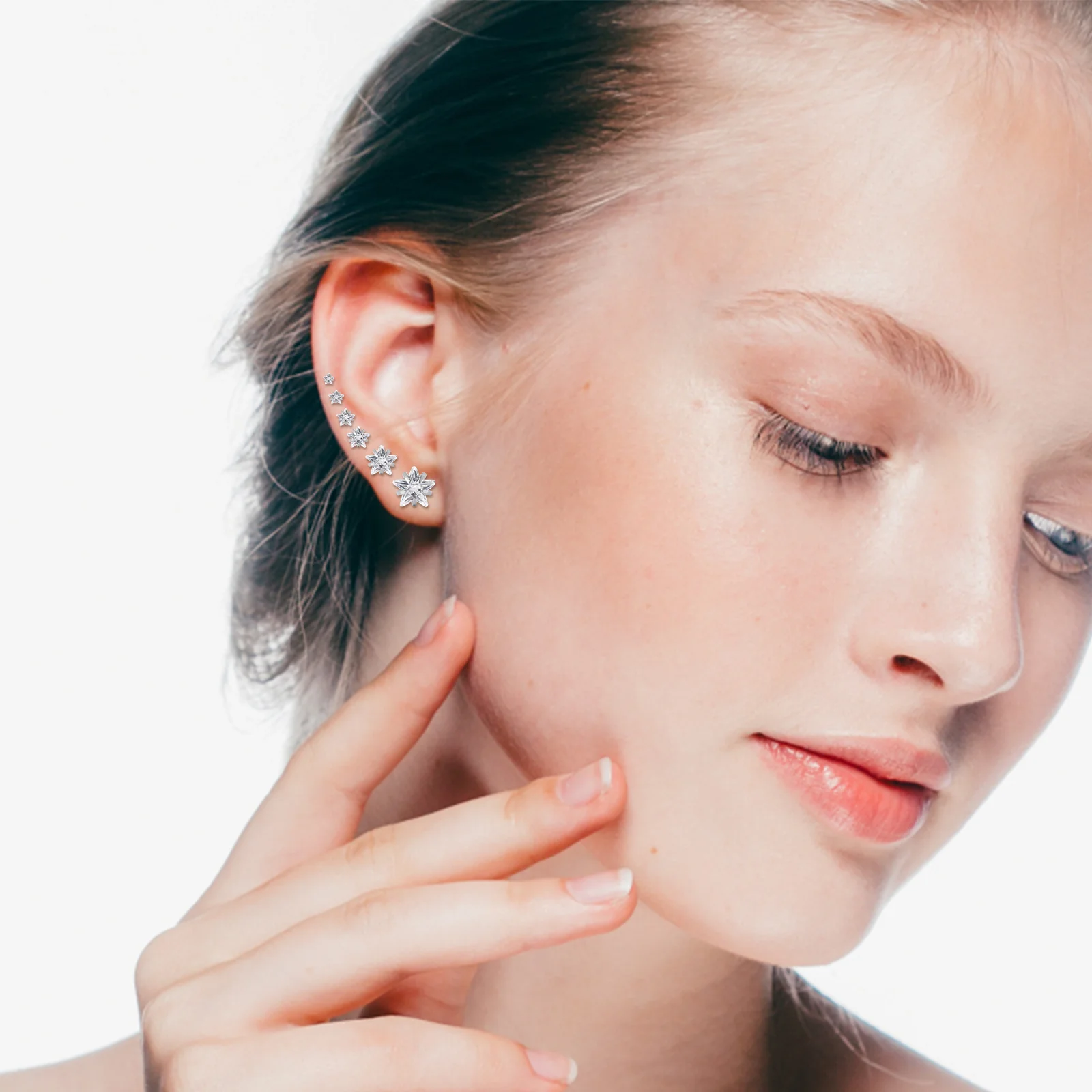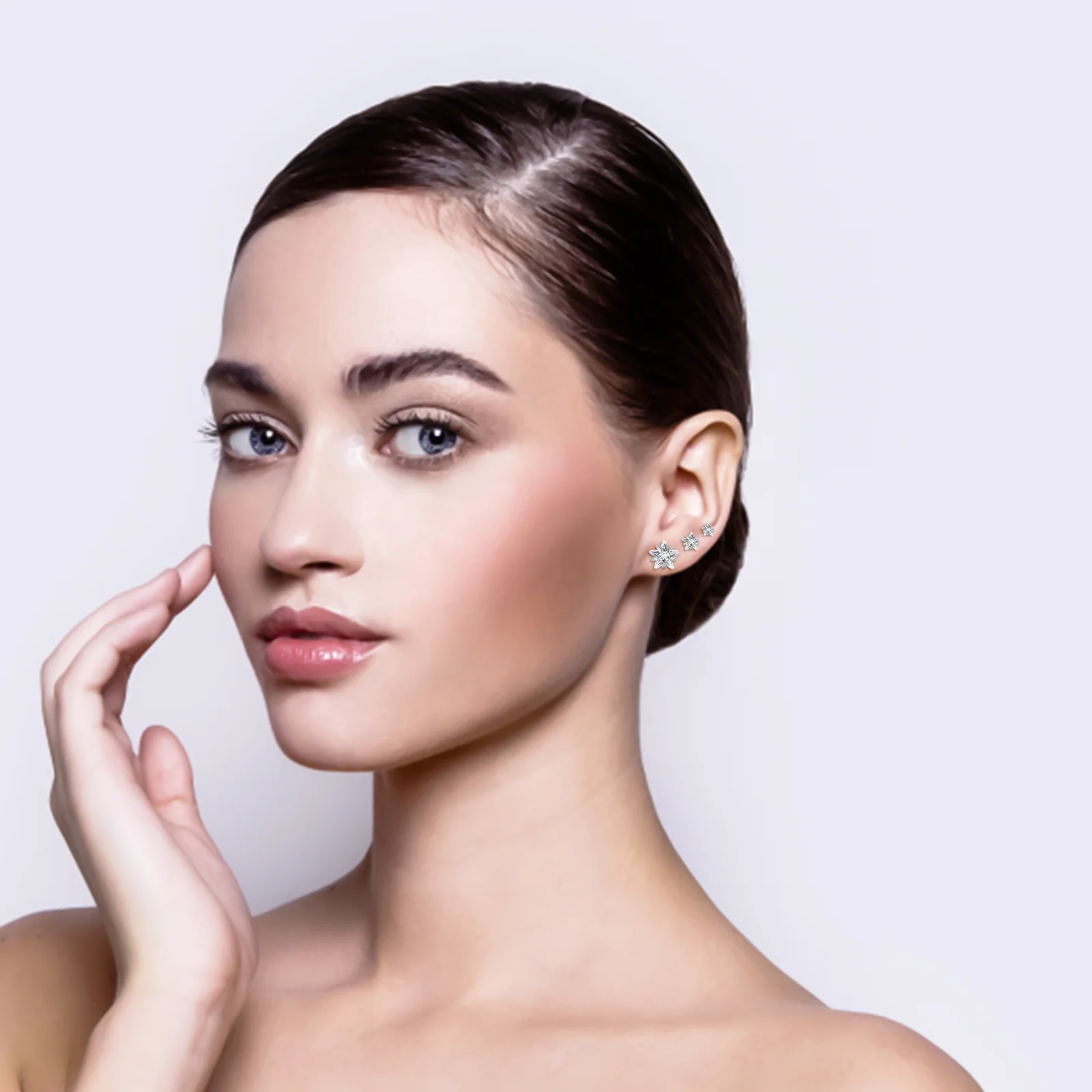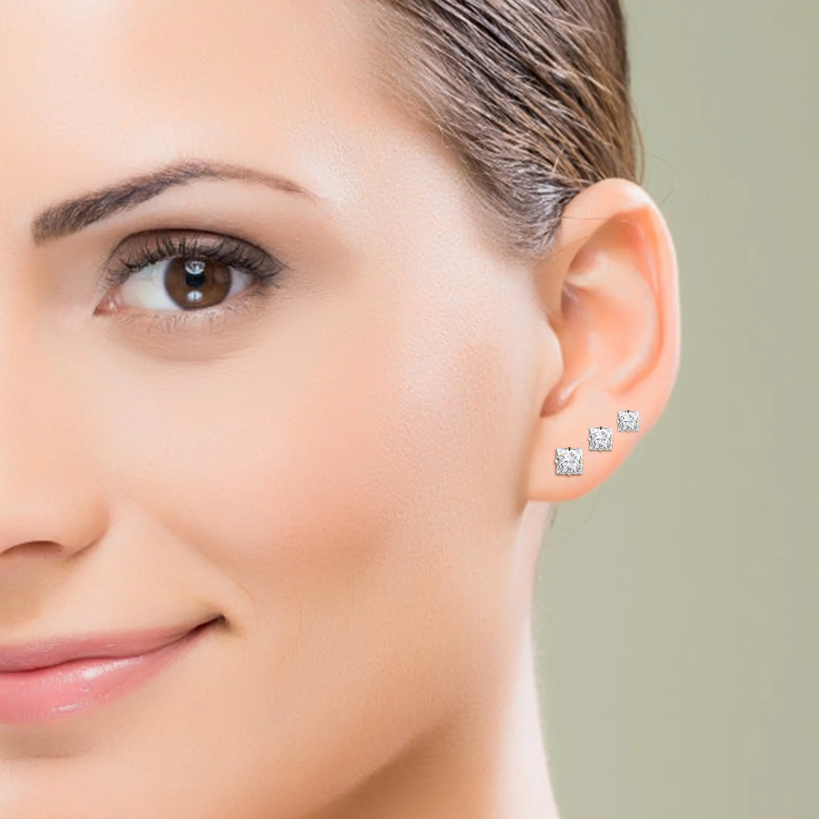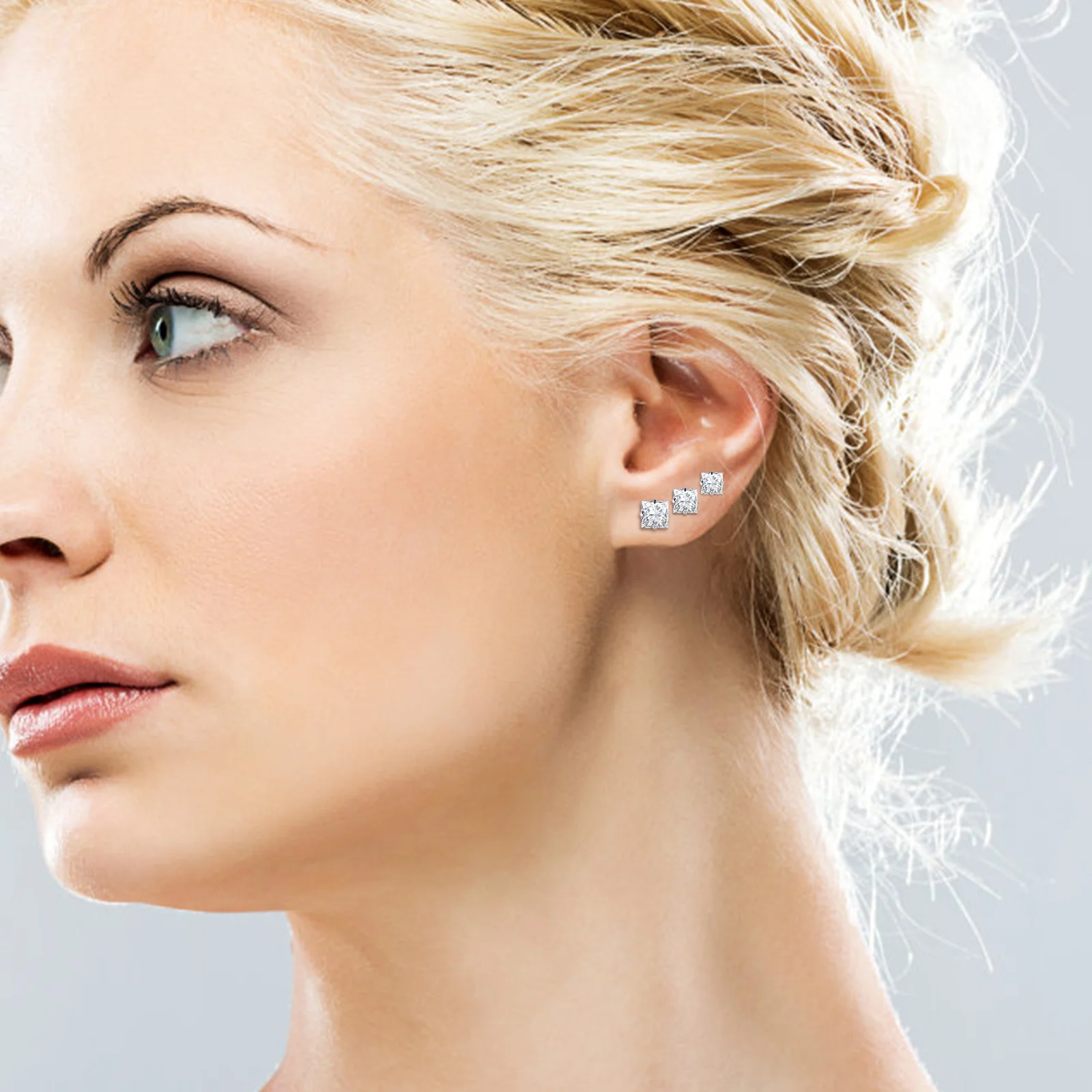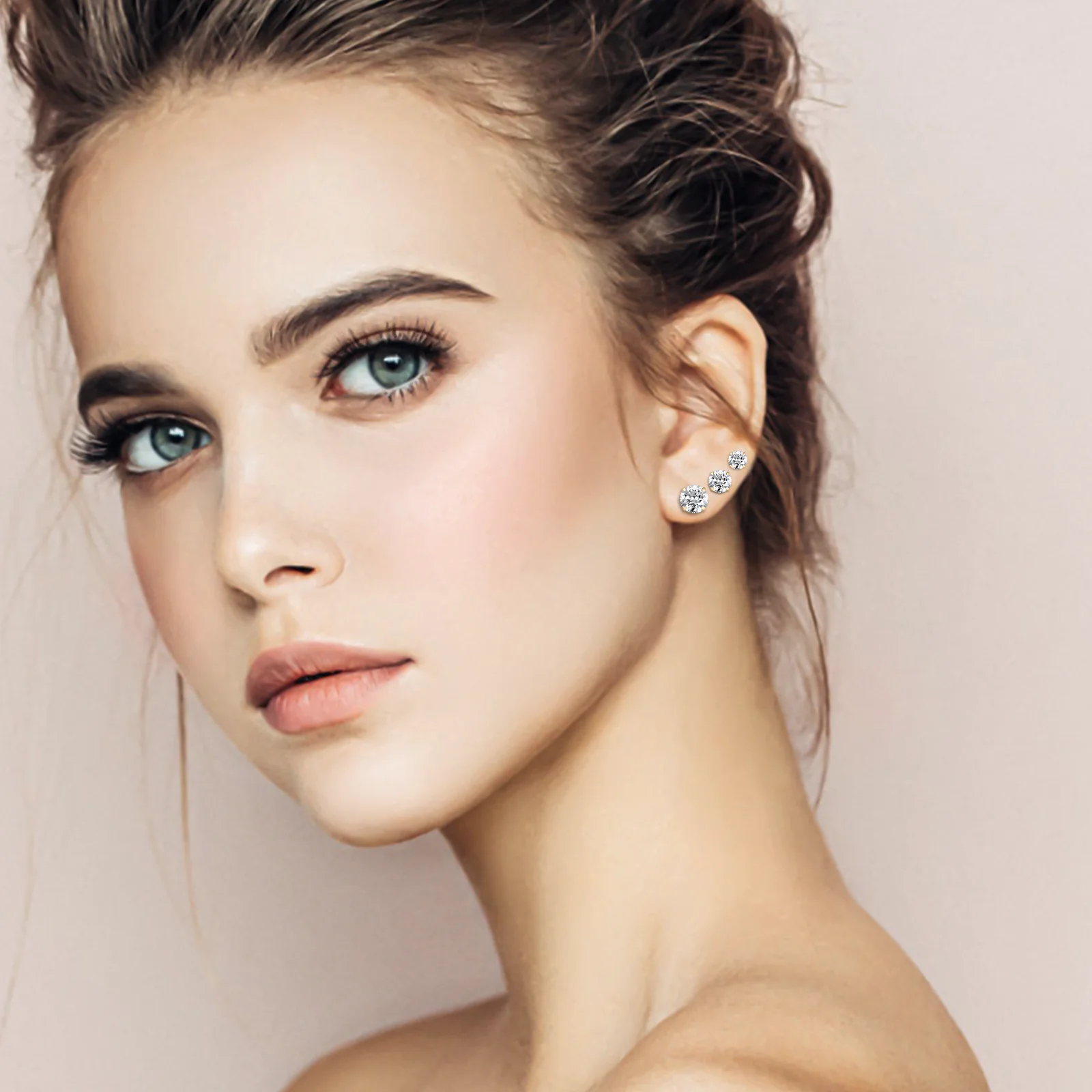 One order you can get 6 pairs CZ stud earrings. It included sizes of 3mm/4mm/5mm/6mm/7mm/8mm; Good choice for anyone with  multiple ears piercings or needs of multiple sizes. We provide heart Star square and round shape stud earrings for your selections