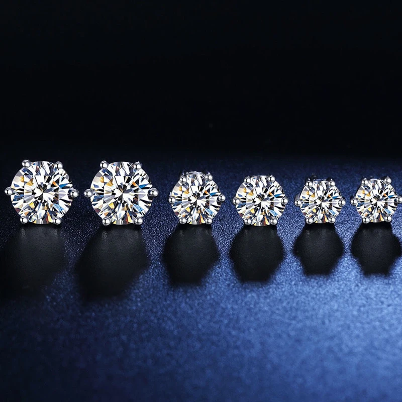 6 prong GRA Moissanite Studs Earrings Pass Diamond tester For Women 18K Platinum Plated Bride Wedding Gemstone Silver Earrings