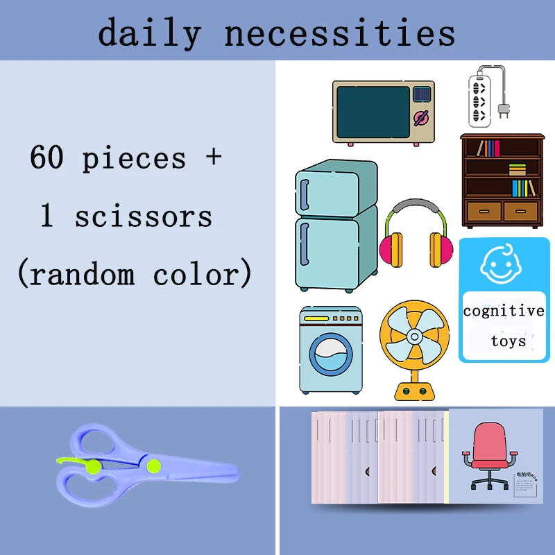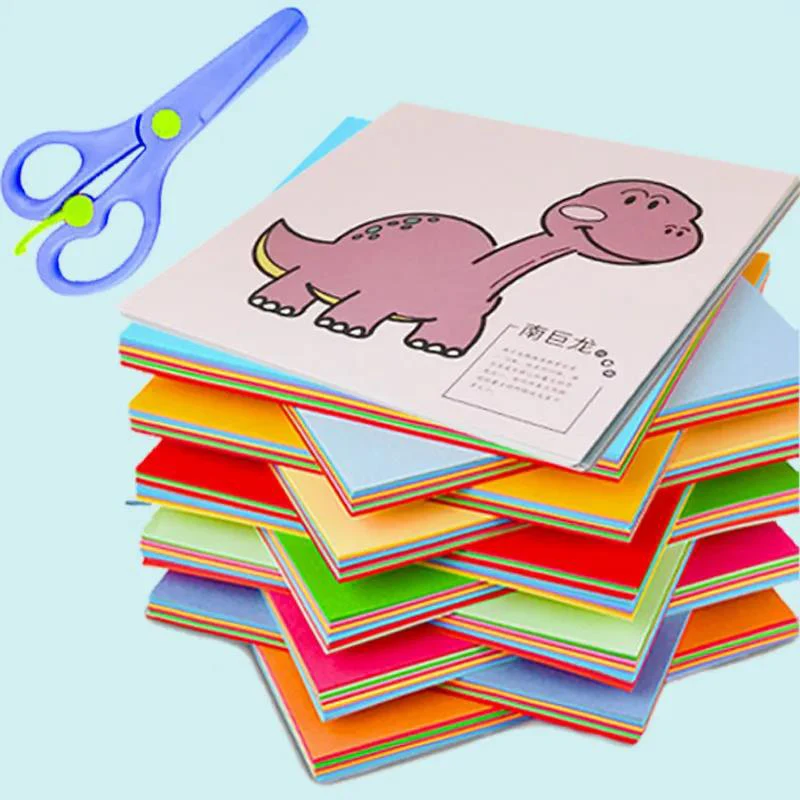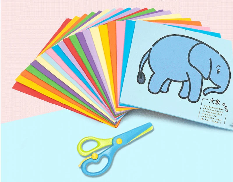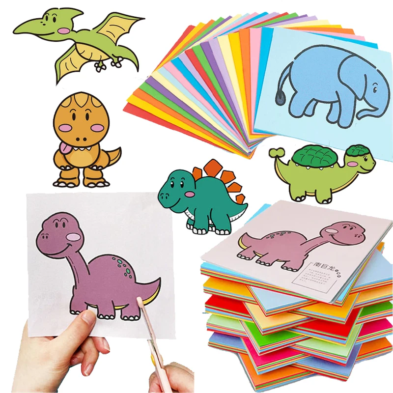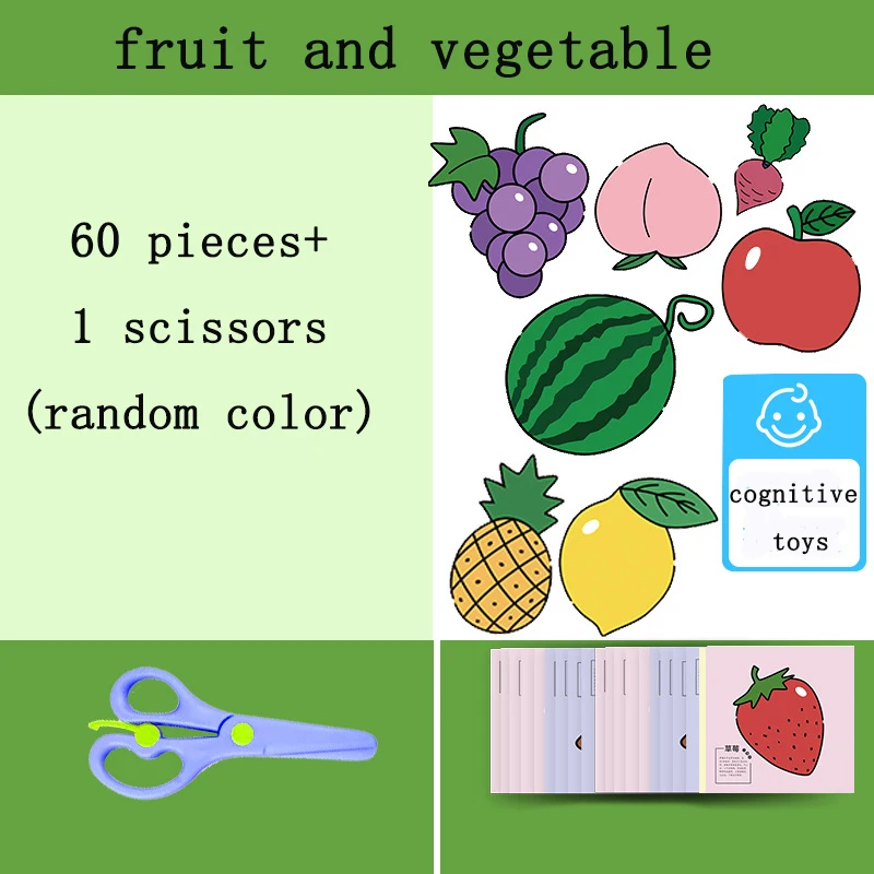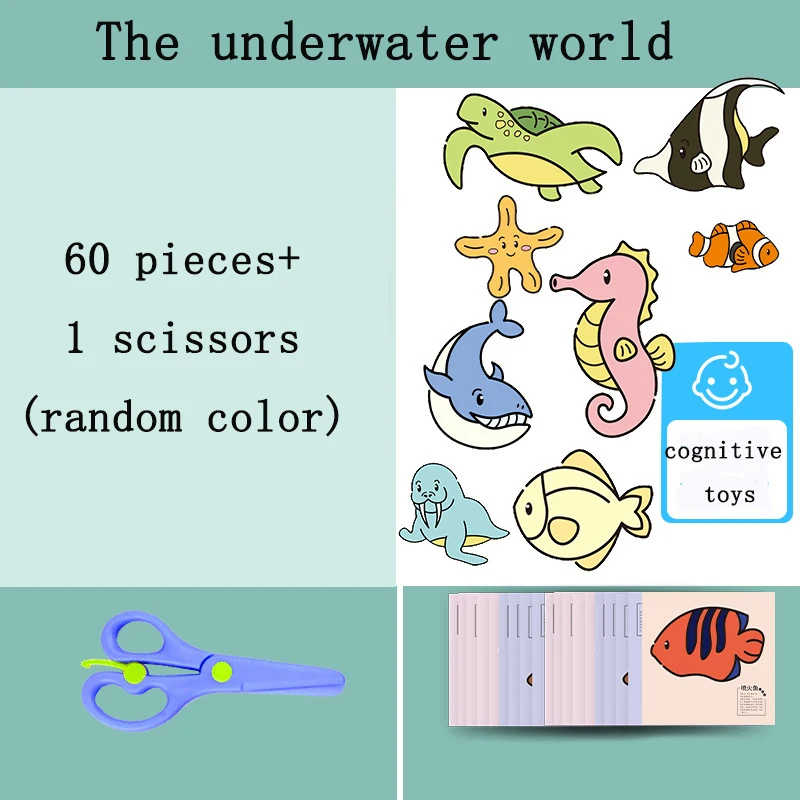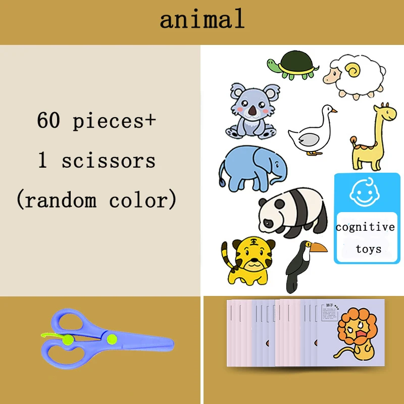 60Pcs/Set DIY Handmade Paper Cut Set with Kids Safety Scissors Cartoon Animal Kids Handmade Paper Craft Learning Educational Toy