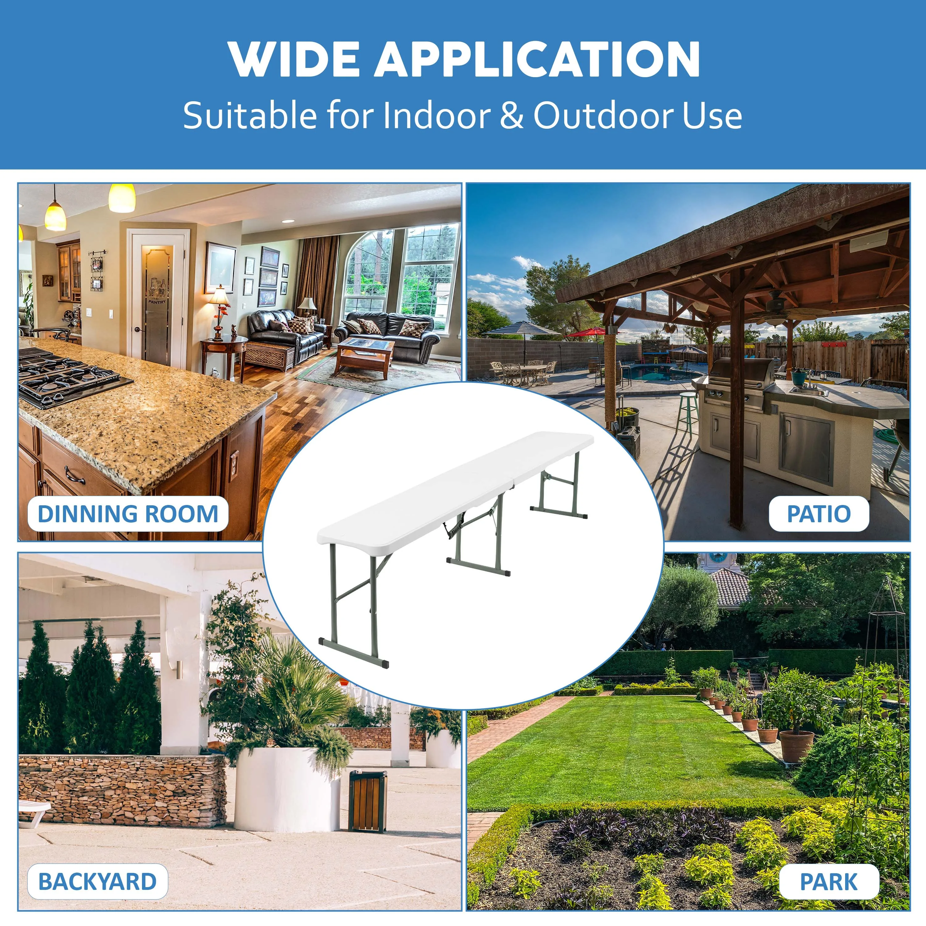 6FT Plastic Folding Bench Portable Outdoor Bench for Picnic Camping Garden