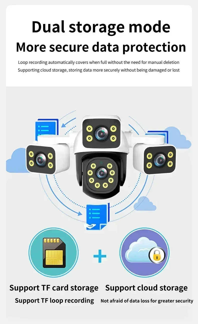 Support H264 video compression format, three-stream output, TF card storage (maximum support 256GB), cloud storage (need to buy);