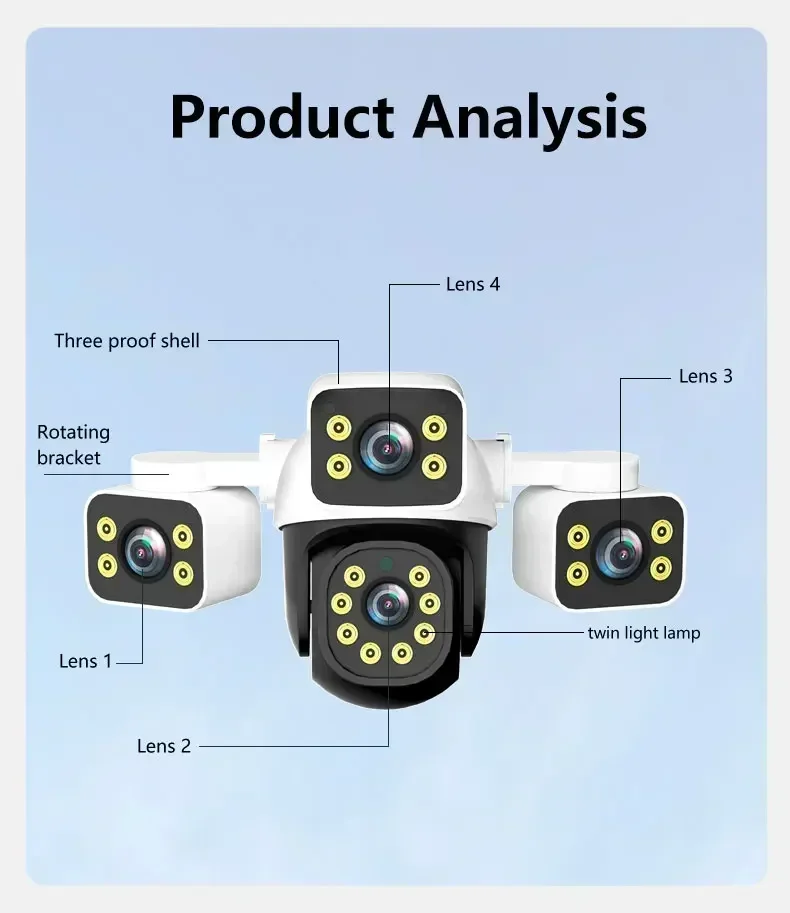 5 reviews for 6K 12MP HD IP Camera Outdoor Three-Lens External WiFi Camera 4K Dual Screen Security PTZ Cam Auto Tracking CCTV Surveillance