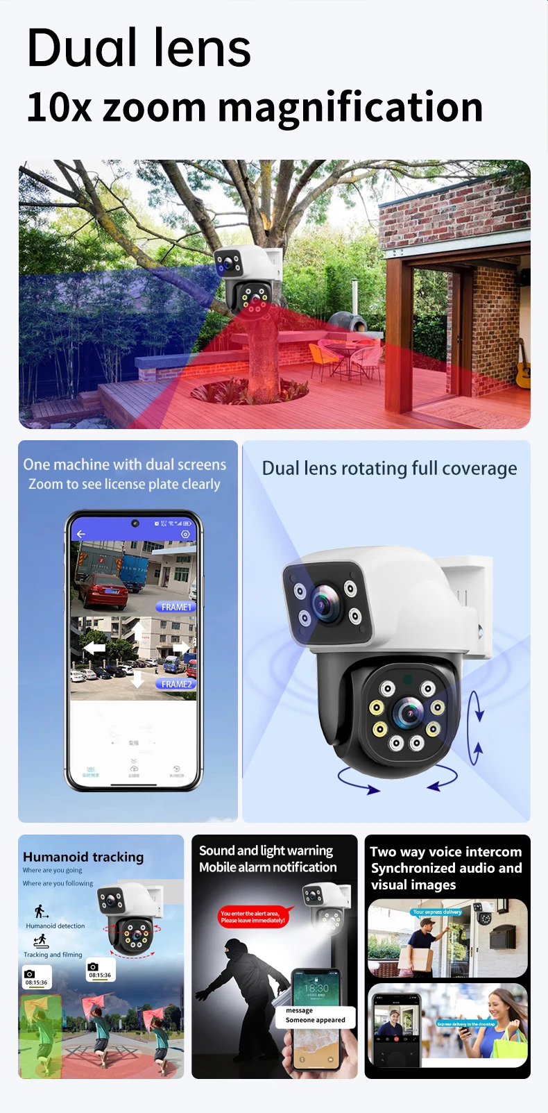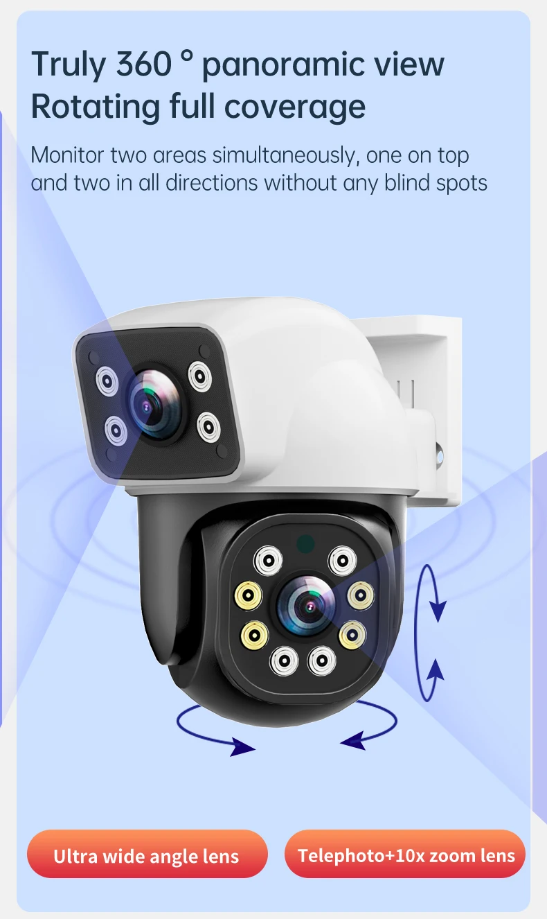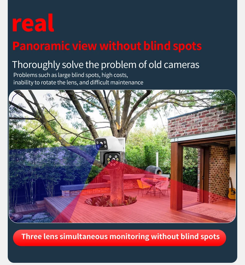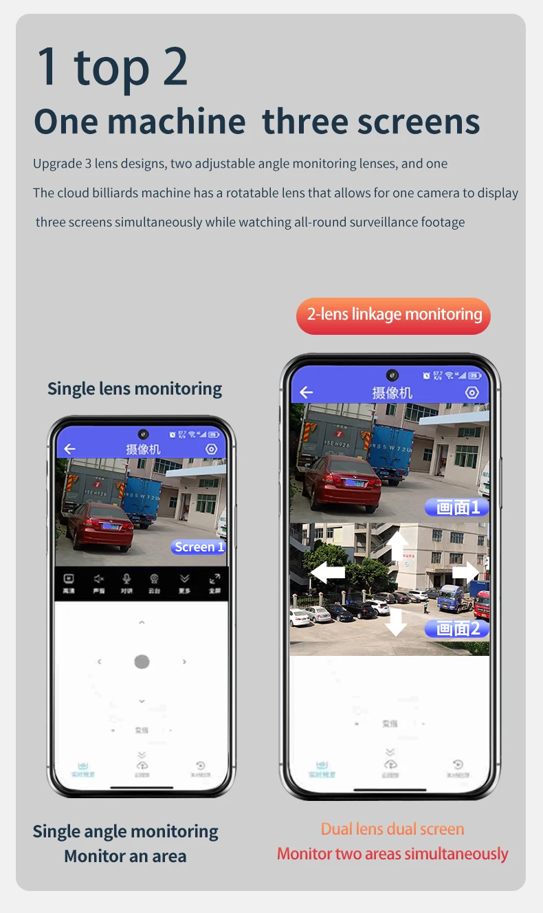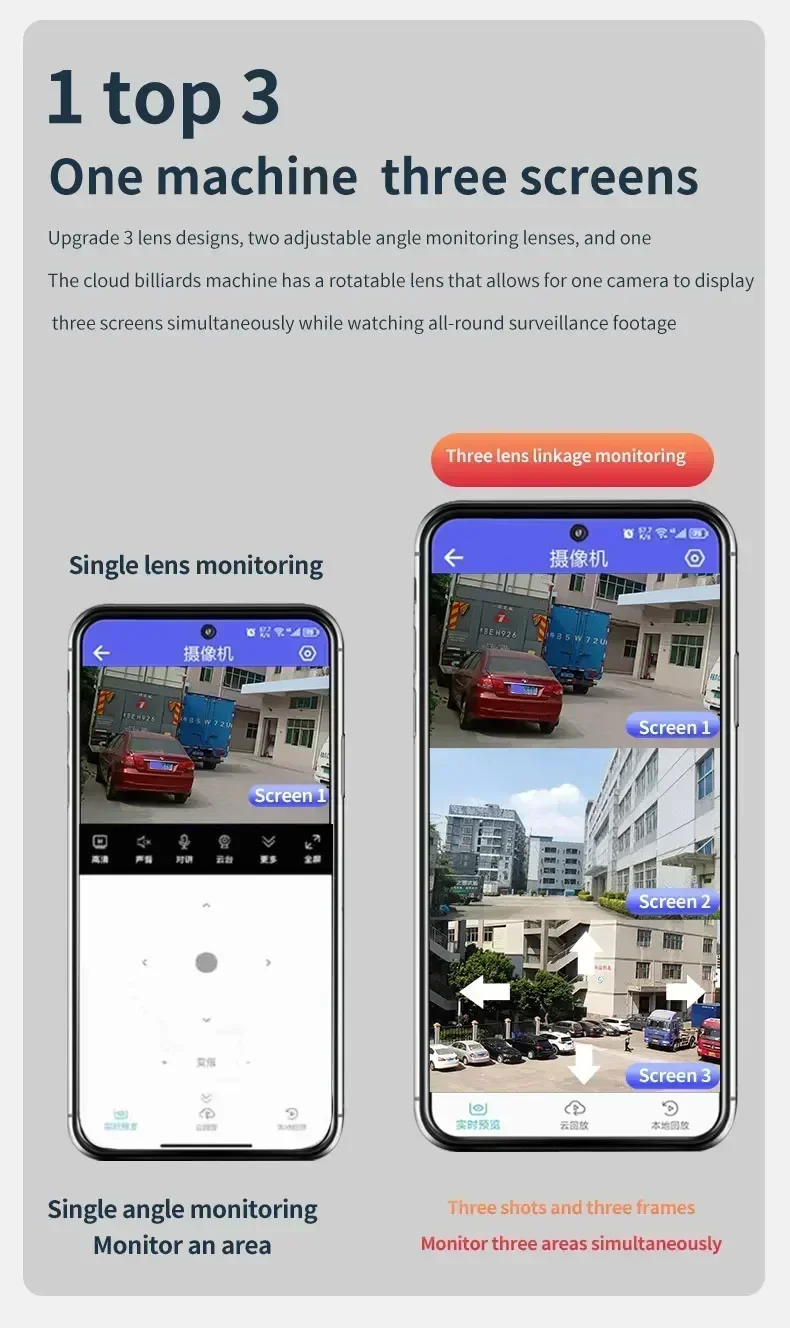 Three-lens Dual-sensor Three-screen, Wide-angle Viewing + Long Distance Viewing to achieve clear monitoring from far and near;