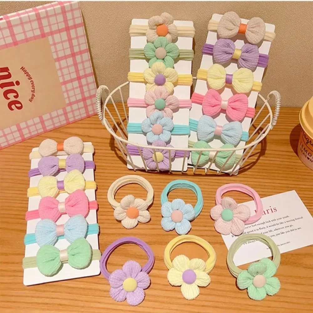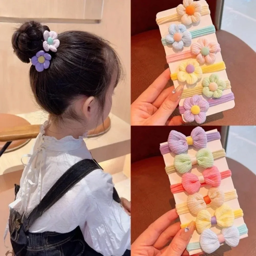 6pcs High-value Korean Cute Hair Rope Bowknot Elastic Hair Ring Princess No Harm Hair Band Kid Hair Accessory