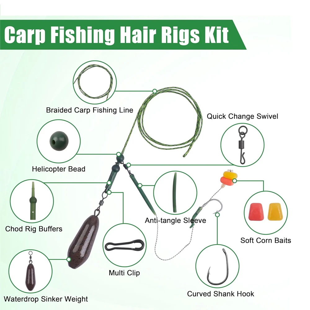 1. Carp Fishing Rigs Kit 1Completed leadcore carp rigs, 80g carp weight, 5Pcs pre tied carp hook, saves you a lot of work on the water and you can start carp fishing straight away.