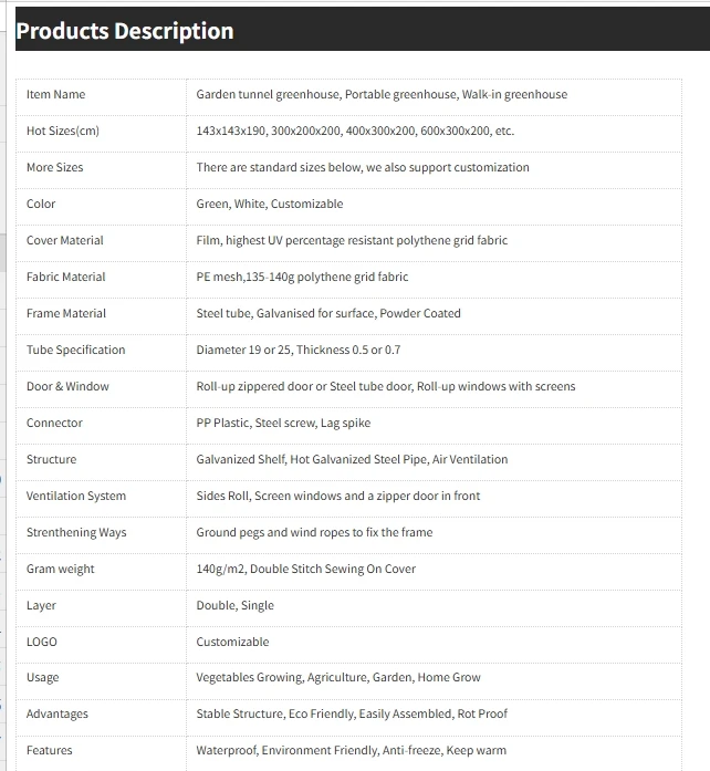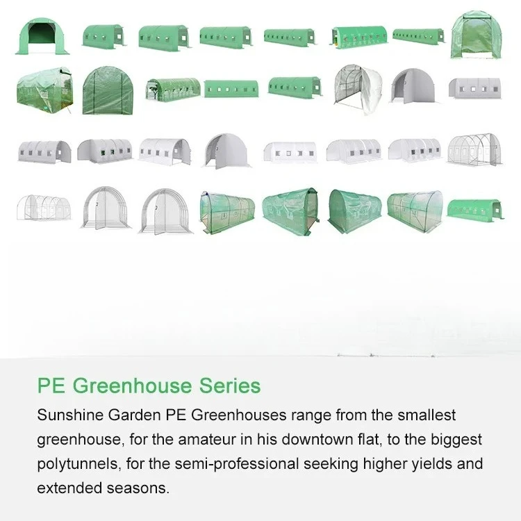 Made with a heavy duty PE synthetic cover with powder coatedtubular steel frame, they perform perfectly when it comes to extendgrowing seasons, can protect crops from extreme weather.