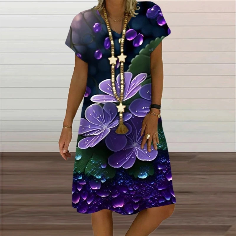 Be the first to review “6XL Summer Plus Size Dresses Women Plant Flower Print Loose Dress Casual V-Neck Short Sleeve Knee-Length Dress Vestidos Sundress”
