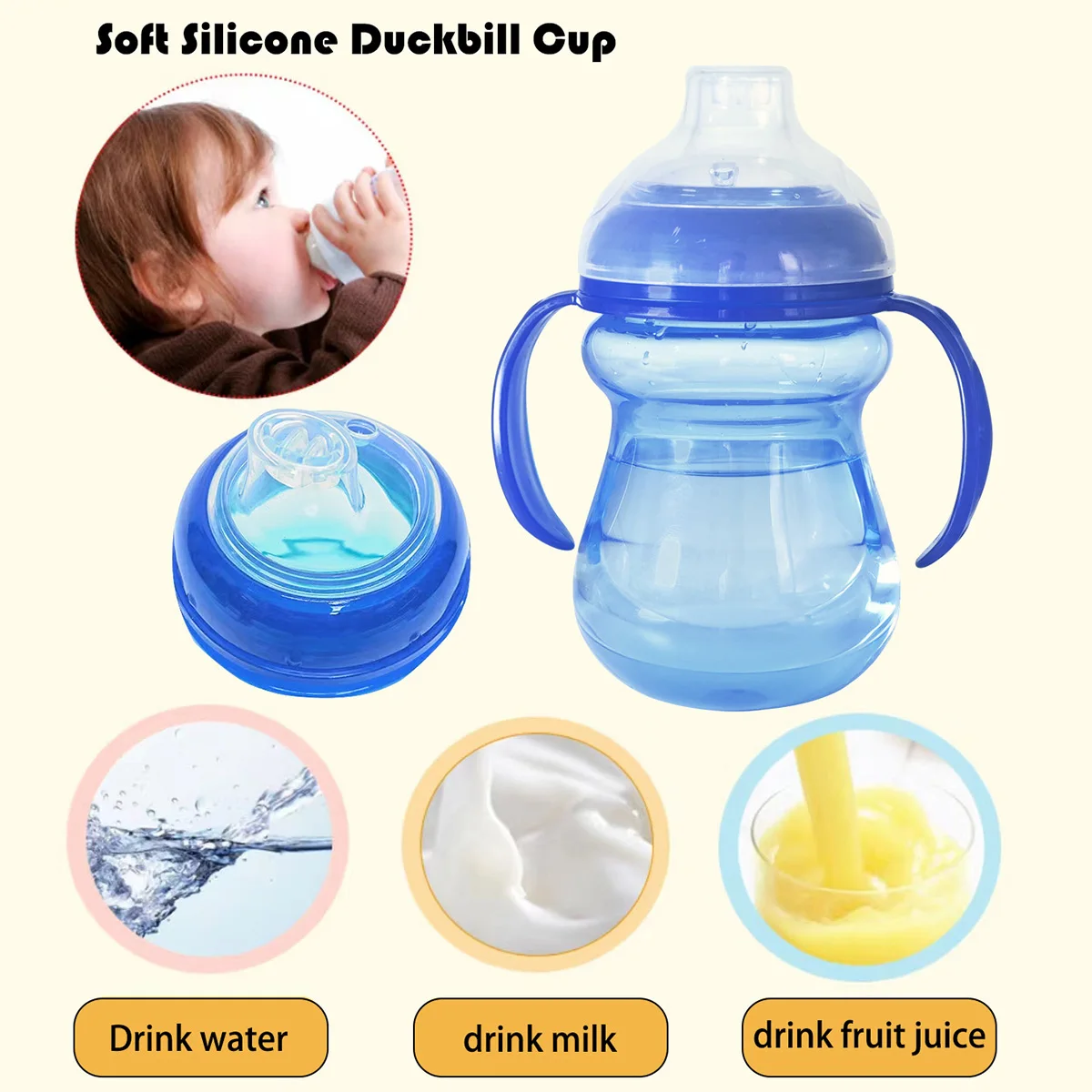 Be the first to review “7-36 months old baby thick silicone duckbill cup with handle, 225ml, 2 colors available, inverted without leakage, BPA free”
