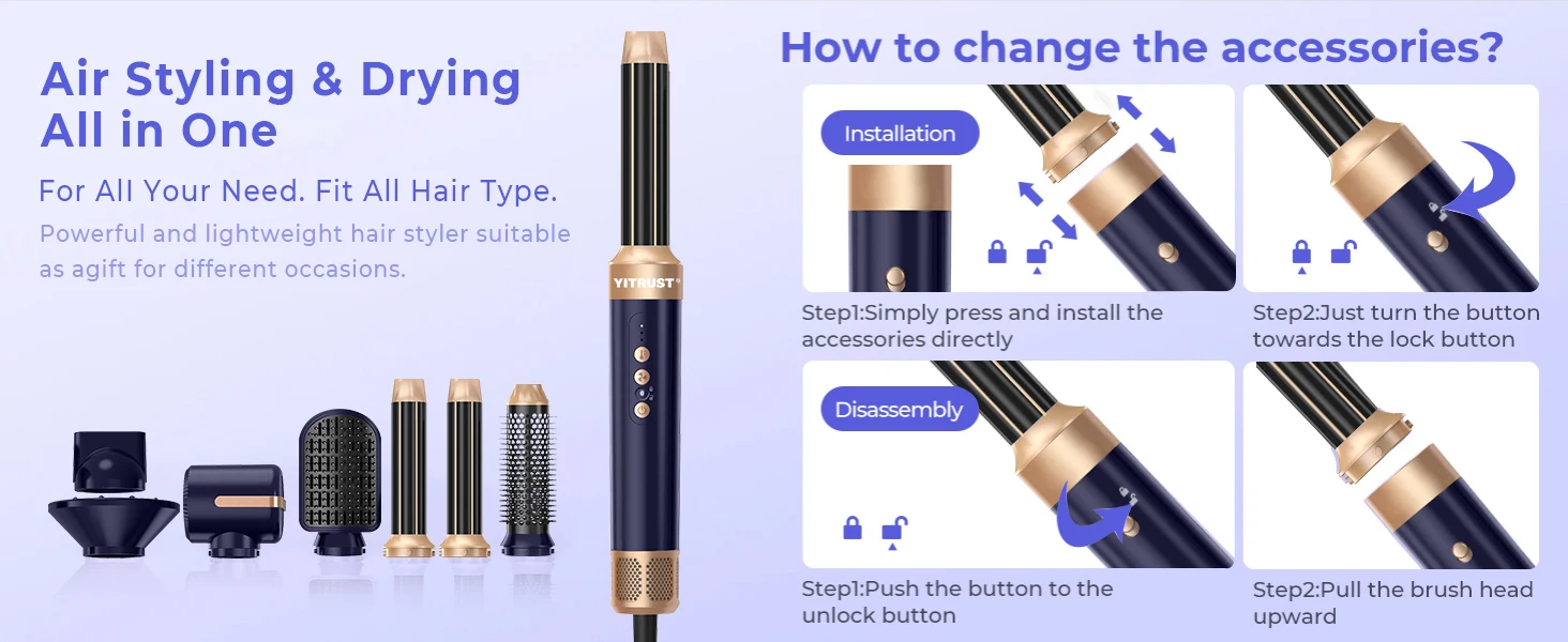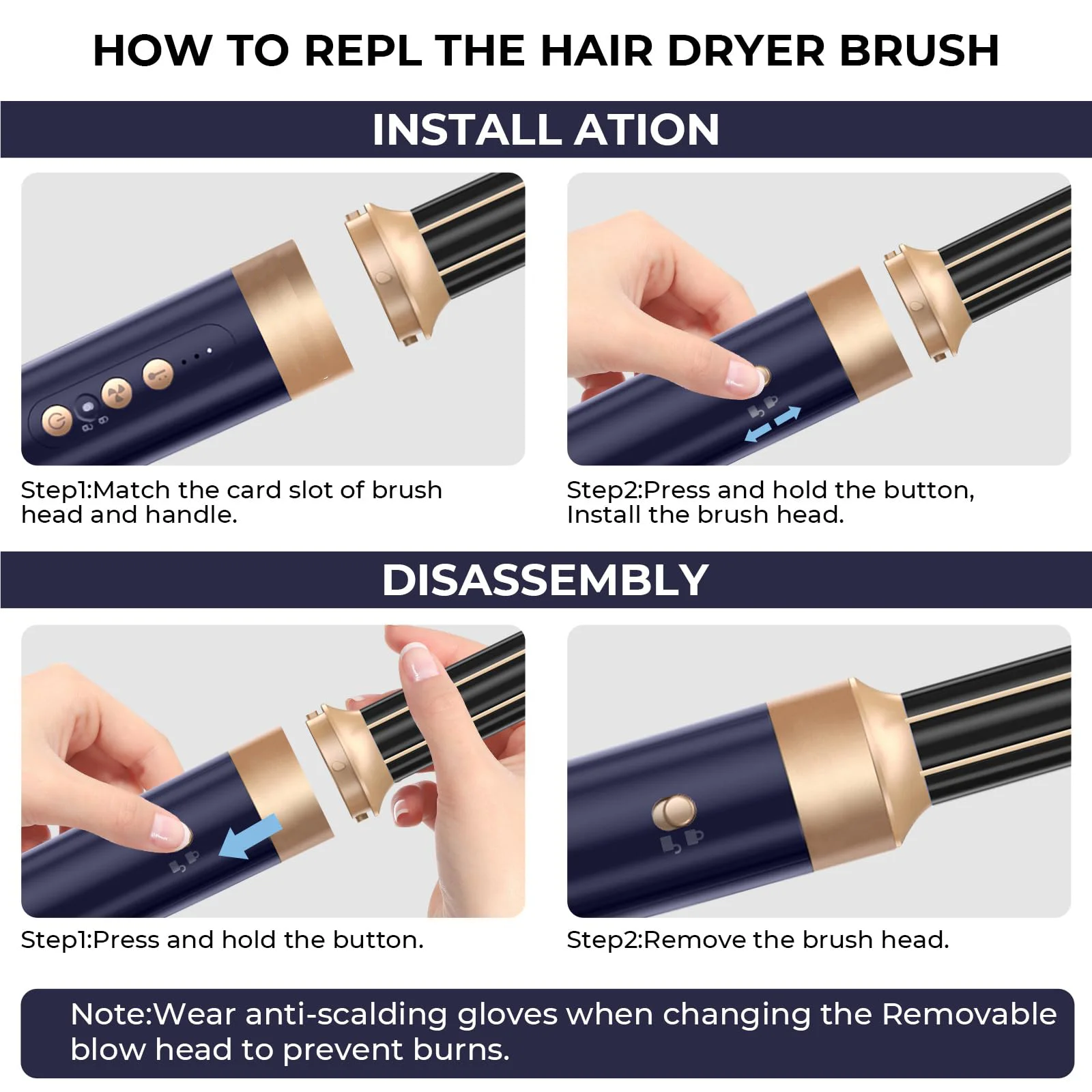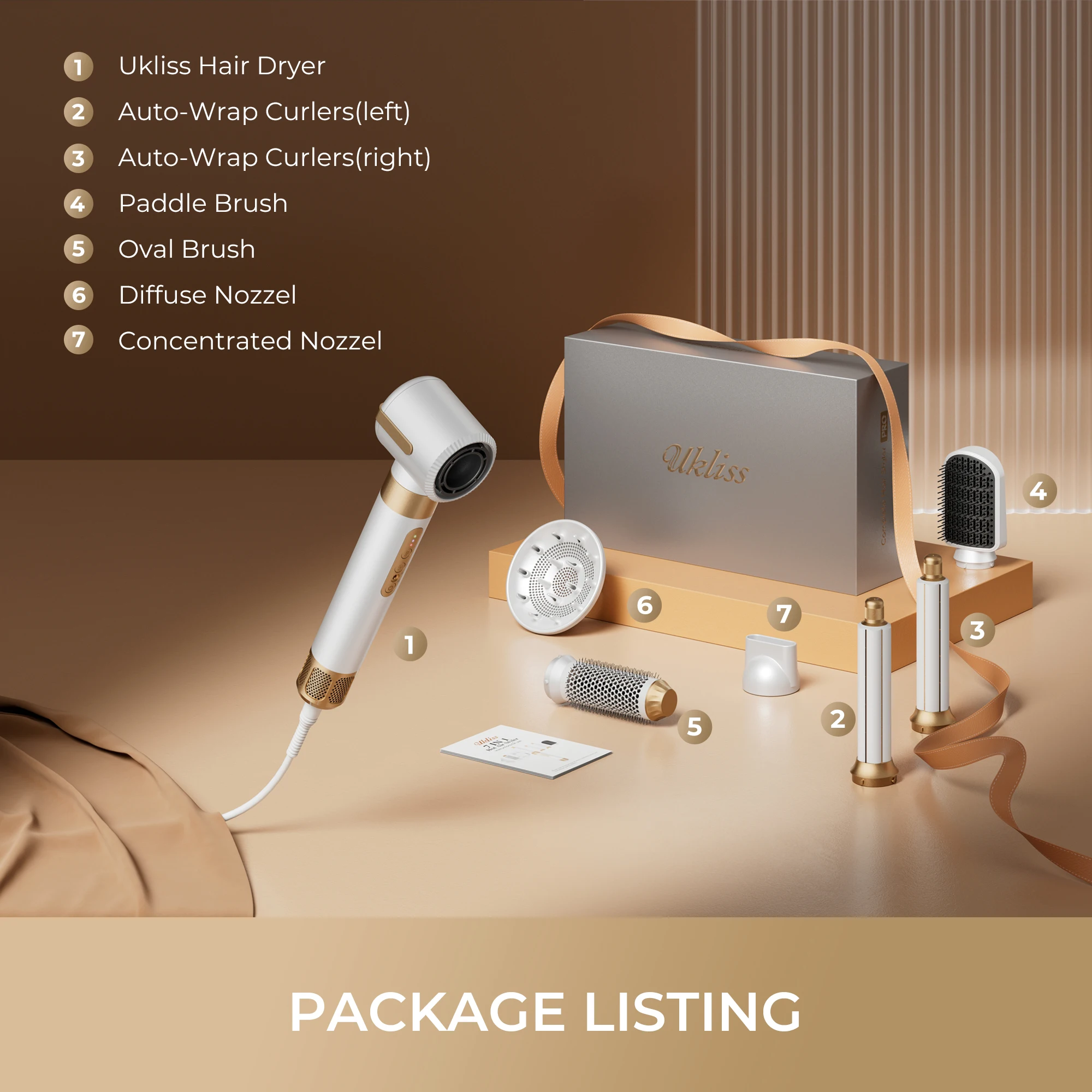 7 In 1 Hair Dryer Brush Brushless High Speed Hair Dryer with Diffuser Ionic Blow Dryer Hot Air Styling Comb Auto Hair Curler