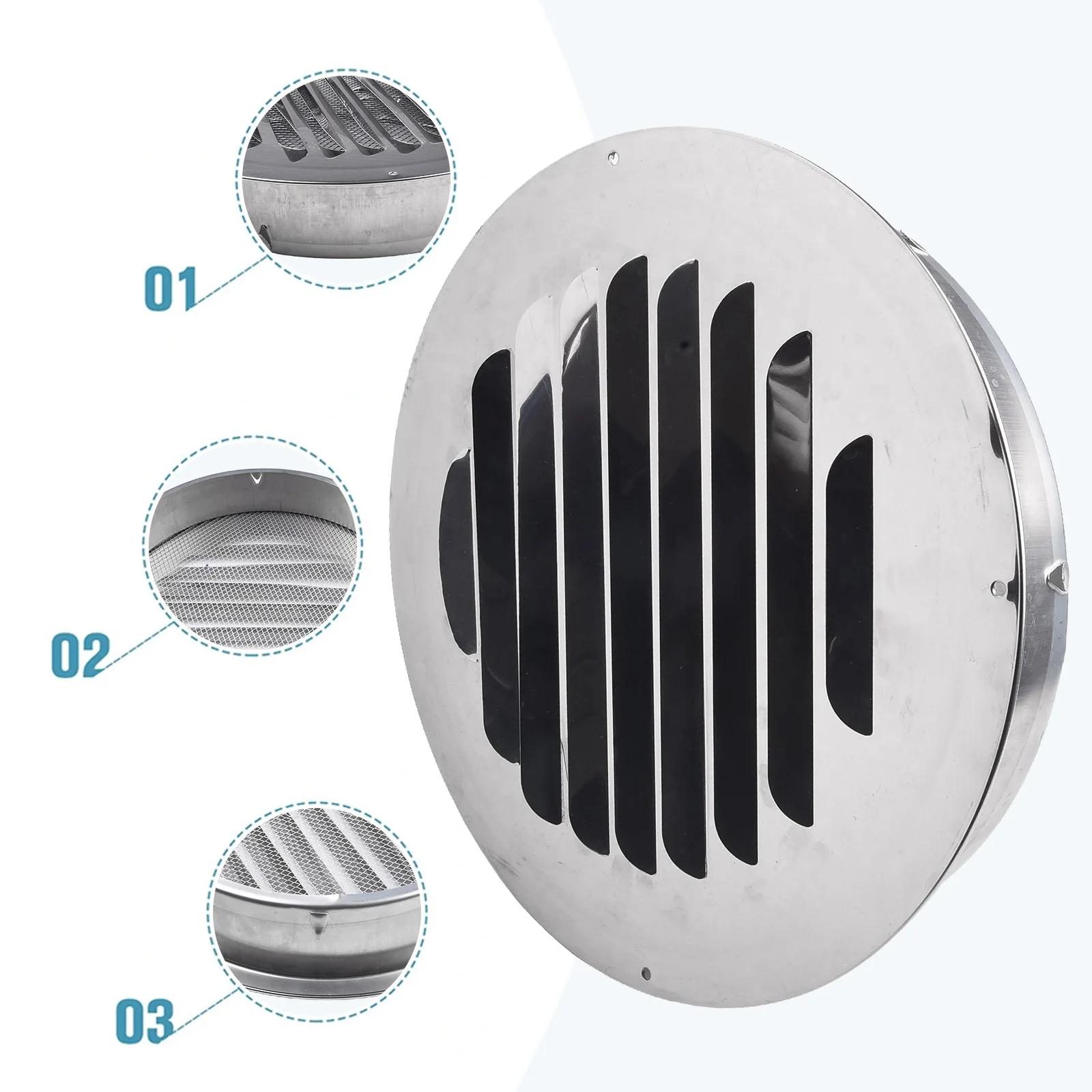 70-300mm Round Stainless Steel Air Vent Grille Insect Protection Home Exterior Wall Ducting Ventilation Tools Exhaust Hoods