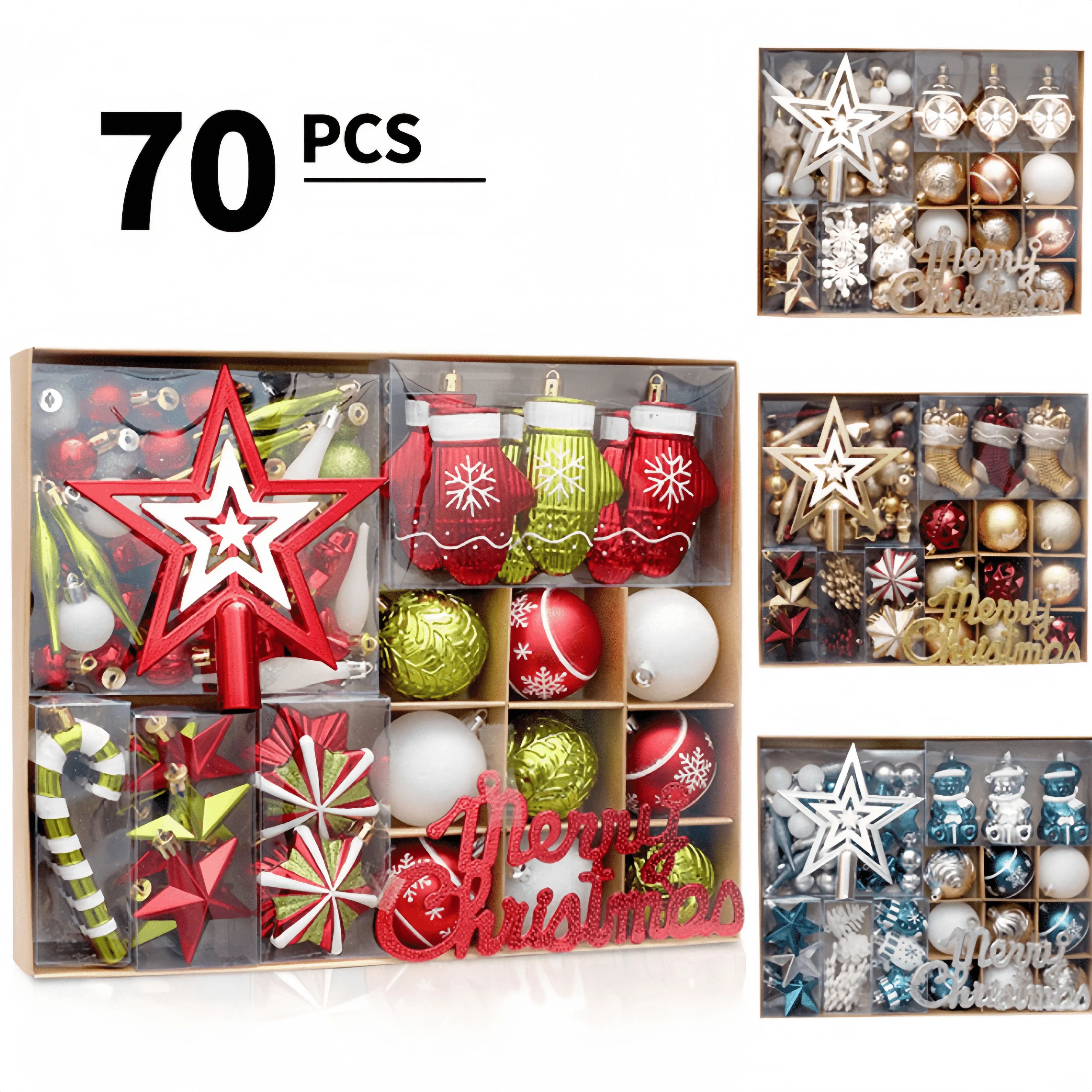70PCS Multi Size Christmas Ball Set Stars Socks Scepter Round Xmas Ball Santa Tree DIY Ornaments 2025 New Year Xmas Gifts Decor