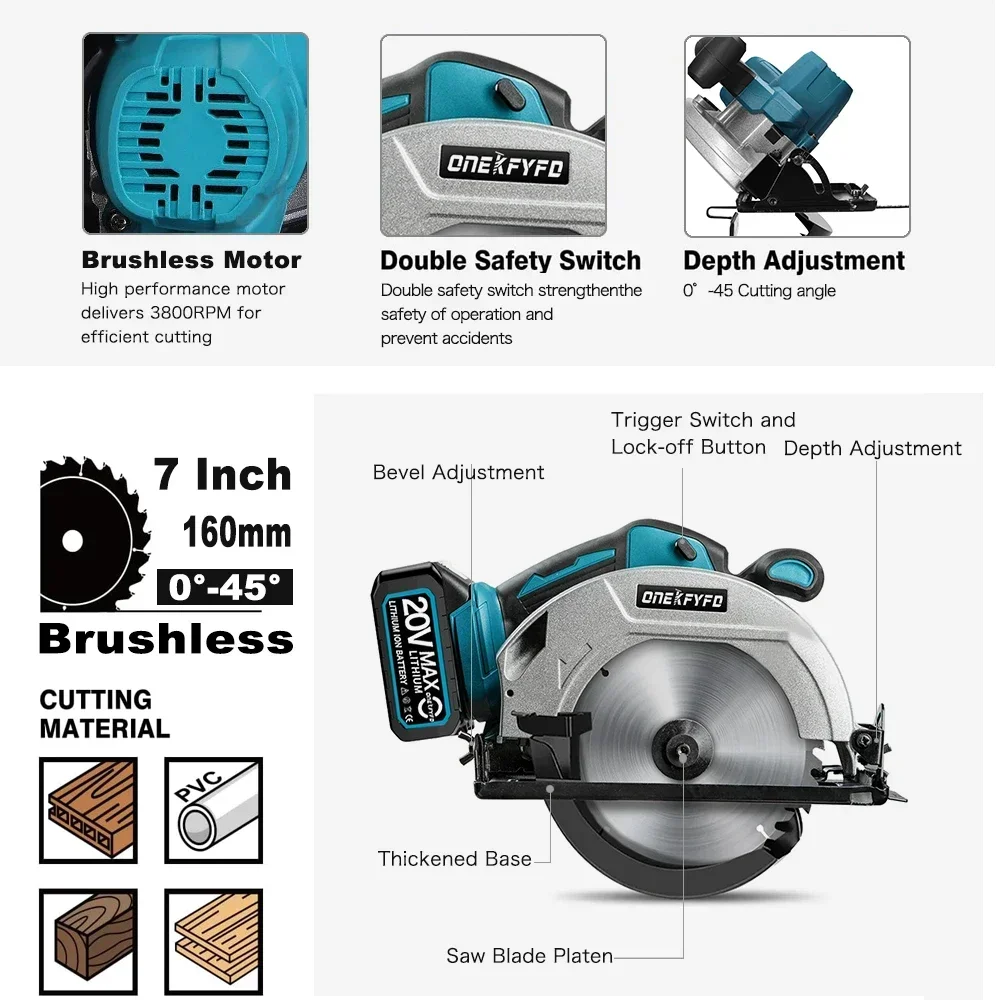 7inch 180mm Brushless Electric Circular Saw Handle Power Tools Dust Passage Multifunction Cutting Machine for Makita 18V Battery