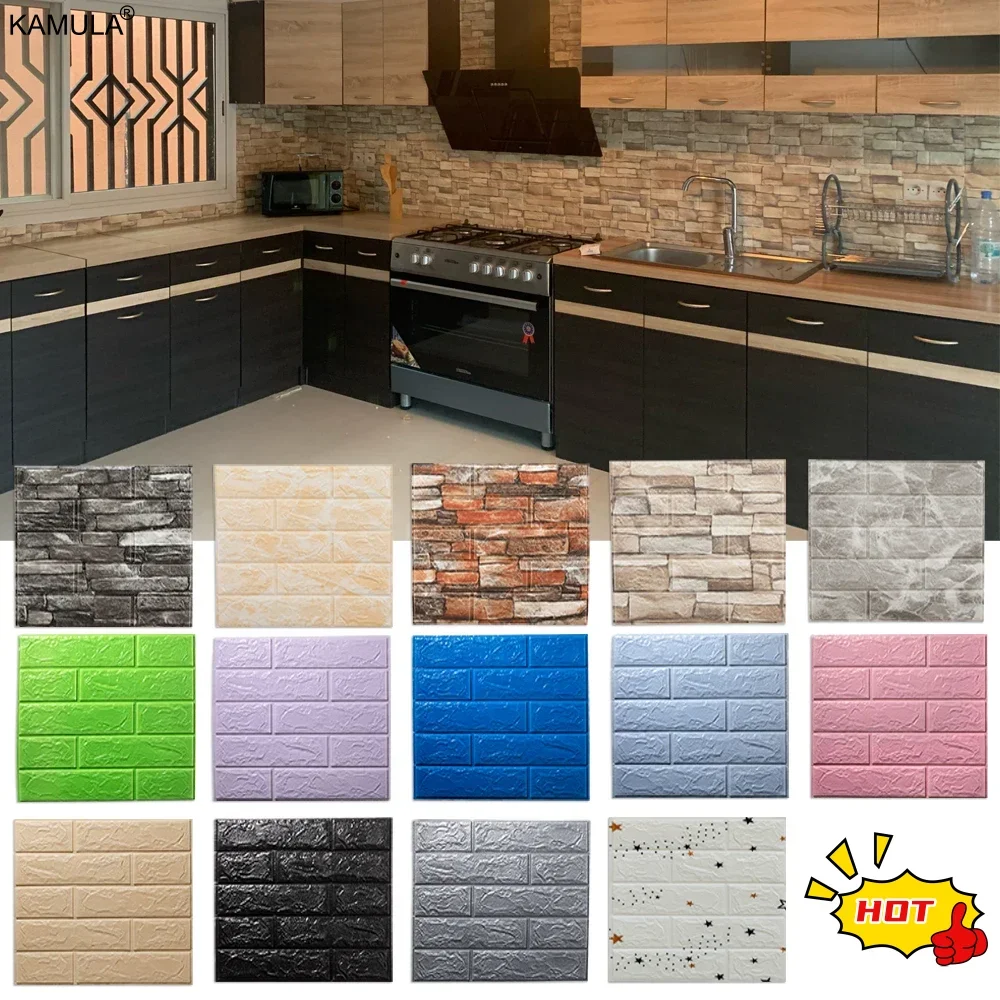Material: Waterproof PE Foam Brick Pattern Wall Stickers