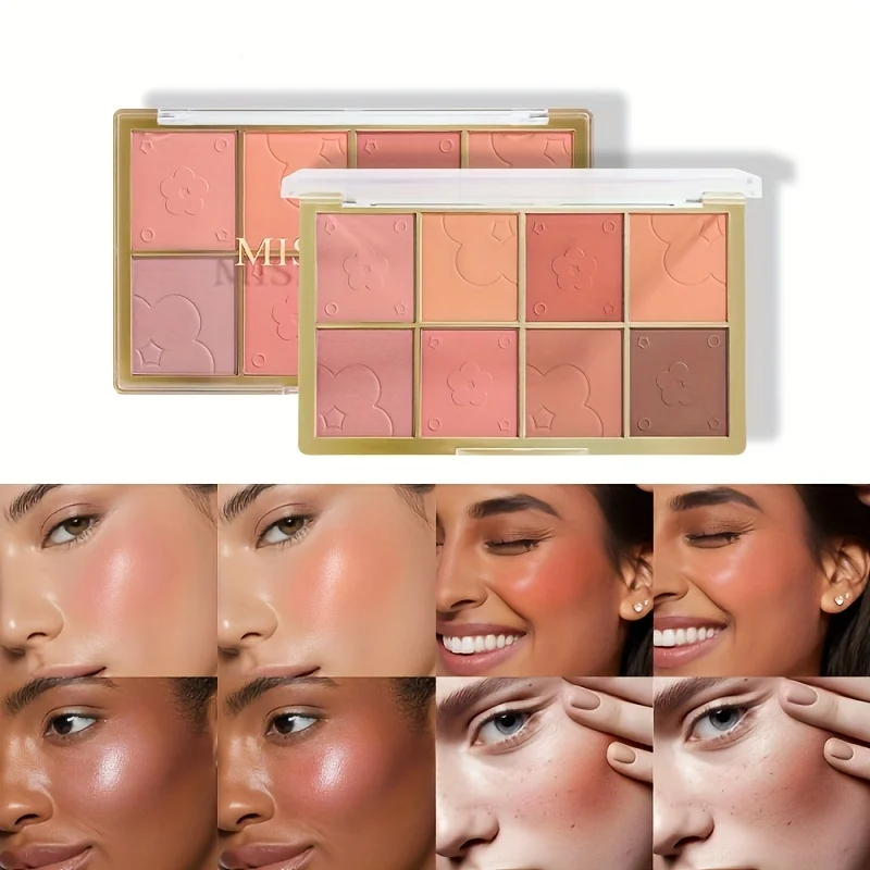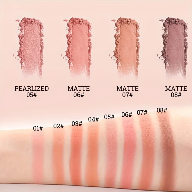 8-Color Matte Blush Palette Portable Sweatproof Long-Lasting Natural Cheek Makeup Skin-Fit Blusher Compact for Makeup Enthusiast