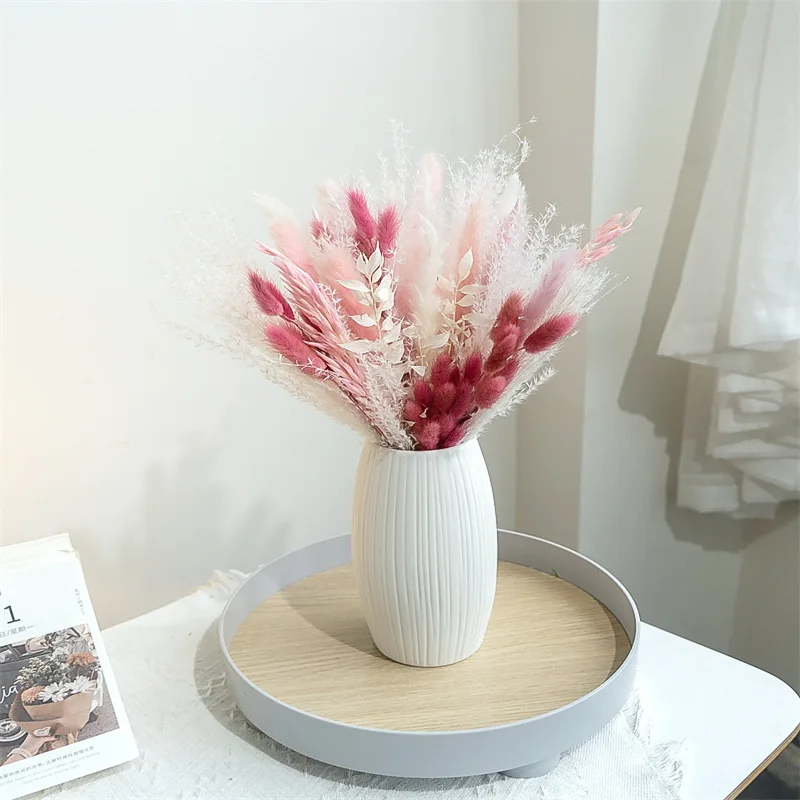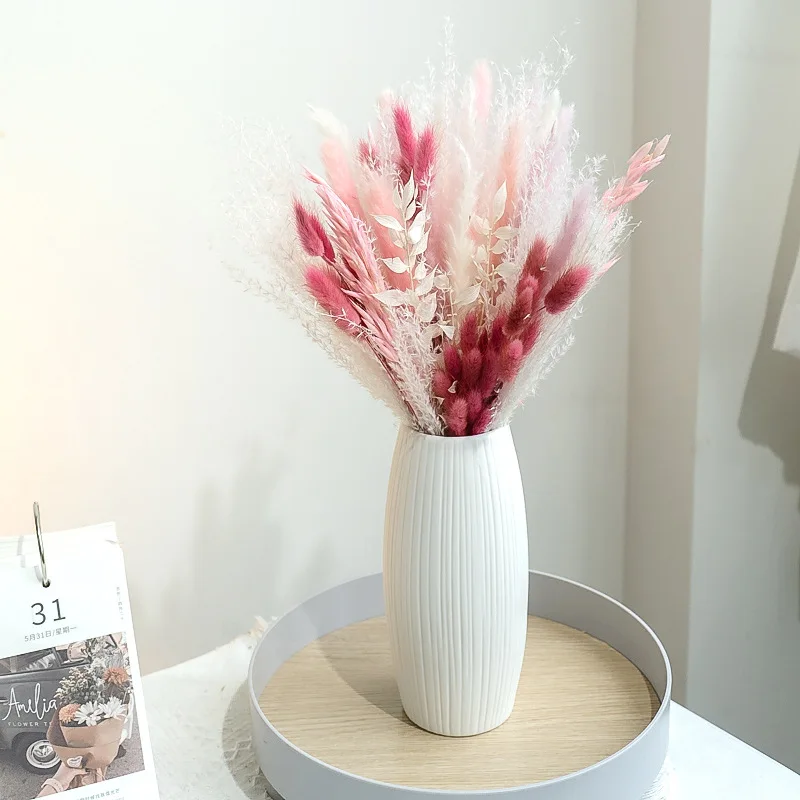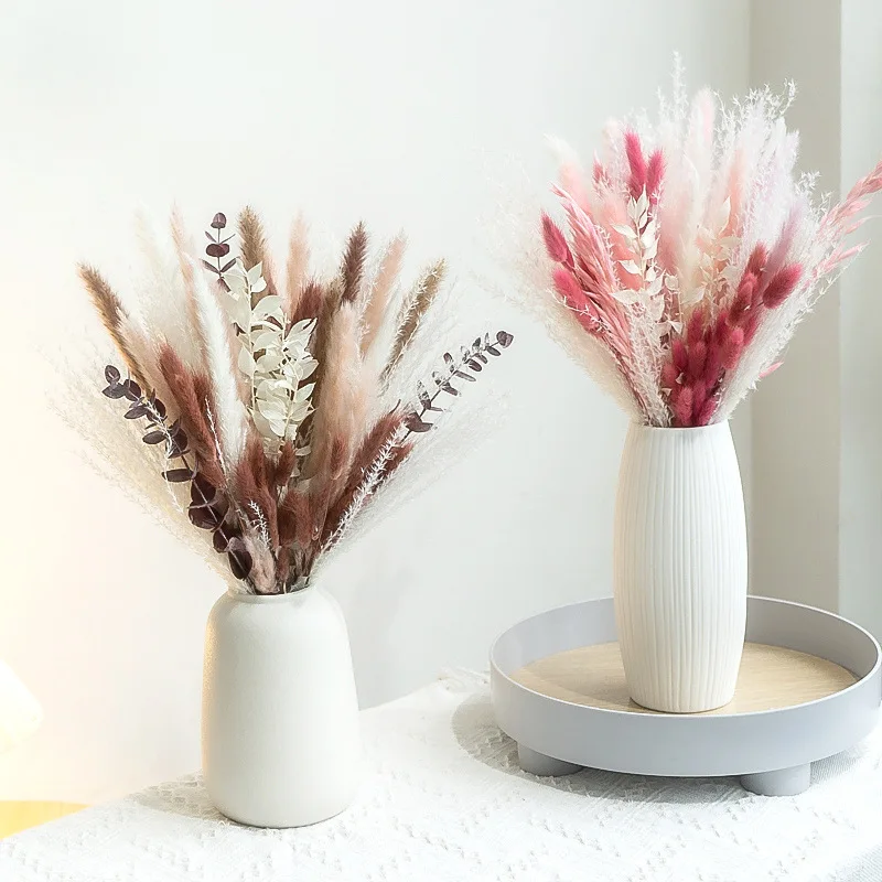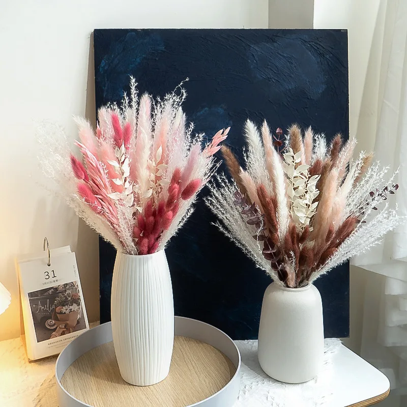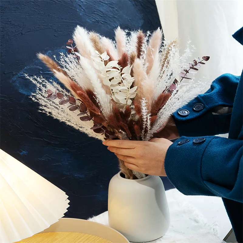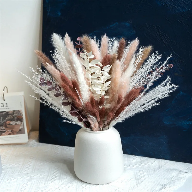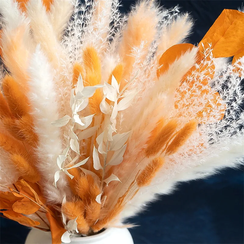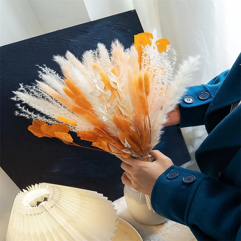 80PCS Natural Dried Pampas Grass Bouquet Boho Home Nordic Decor Bouquet Phragmites Dried Flowers Bouquet Wedding Decor