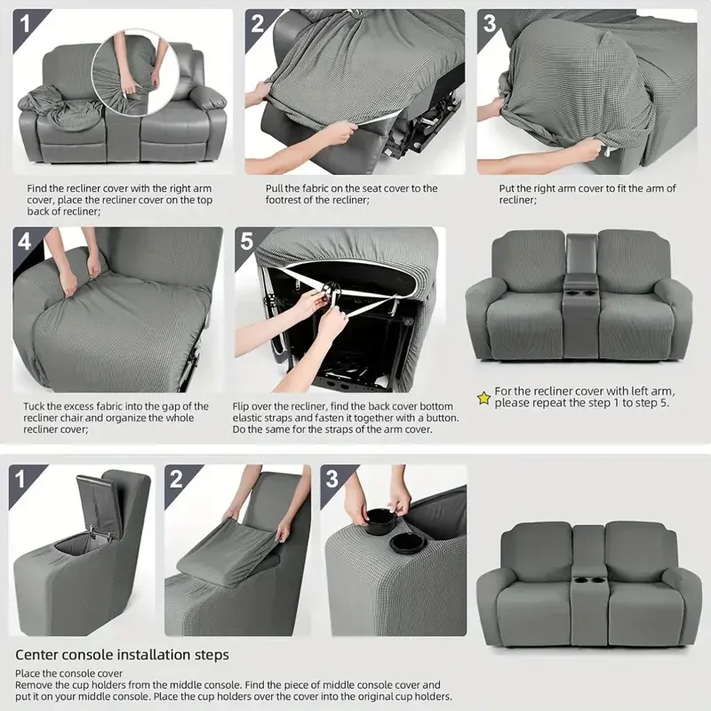 ✔Made of polyester-spandex jacquard fabric, textured with vibrant small checks pattern, The exquisite workmanship and thick fabric make the recliner cover more soft to touch and durable enough to long time use.