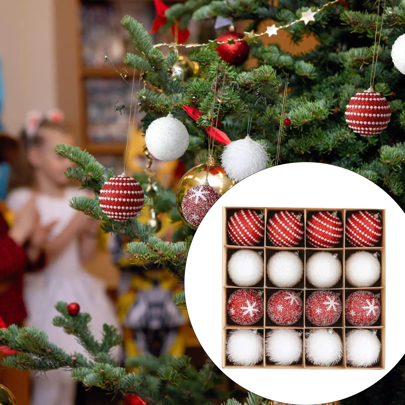 【Holiday decor】: The red white glittering ball comes with 4 types of decorative balls, nice for holiday decor, adding a unique charm to your Christmas tree
