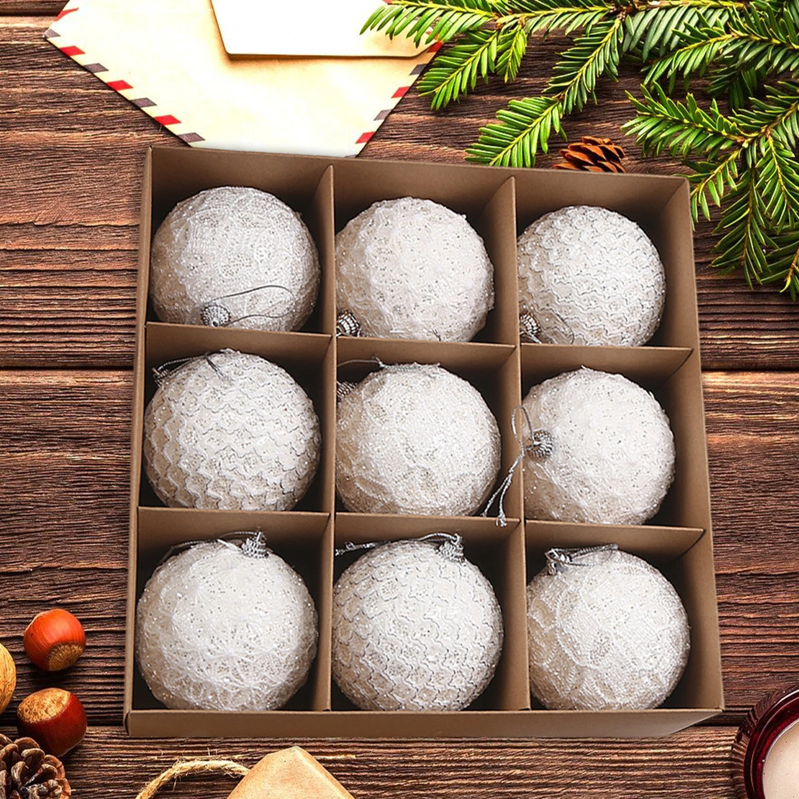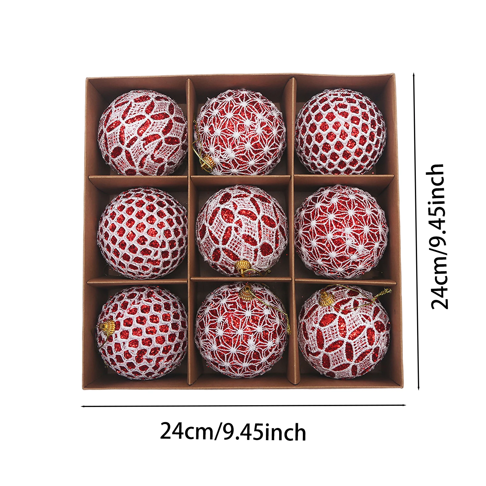 【Product Detail】: Each Ball measures 8cm/3.15inch in diameter, the package includes 9 Christmas Ball Ornaments in a box that measures 24cmx24cmx8cm/9.45inchx9.45inchx3.15inch