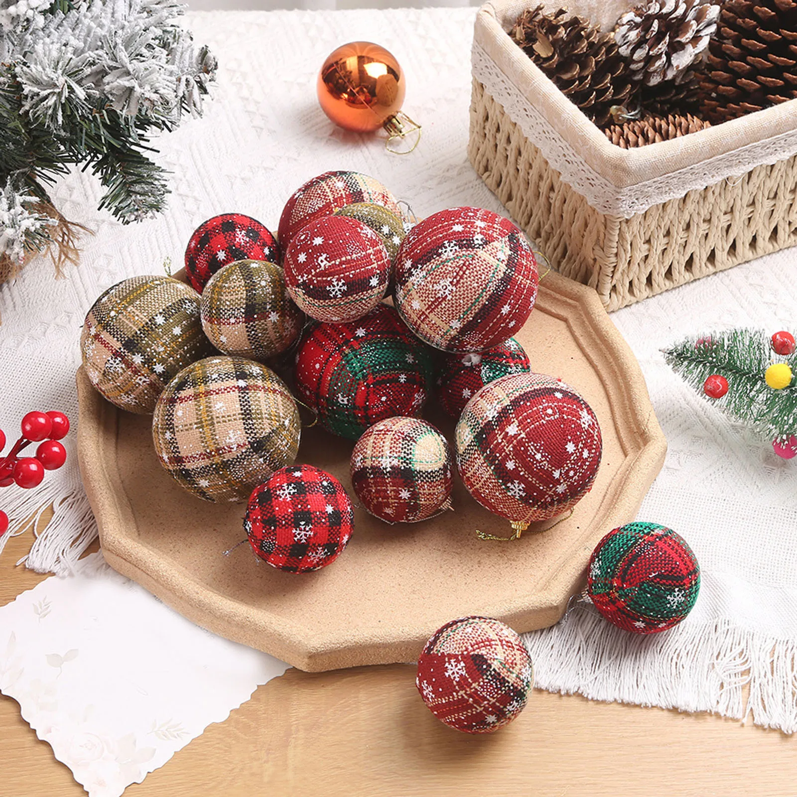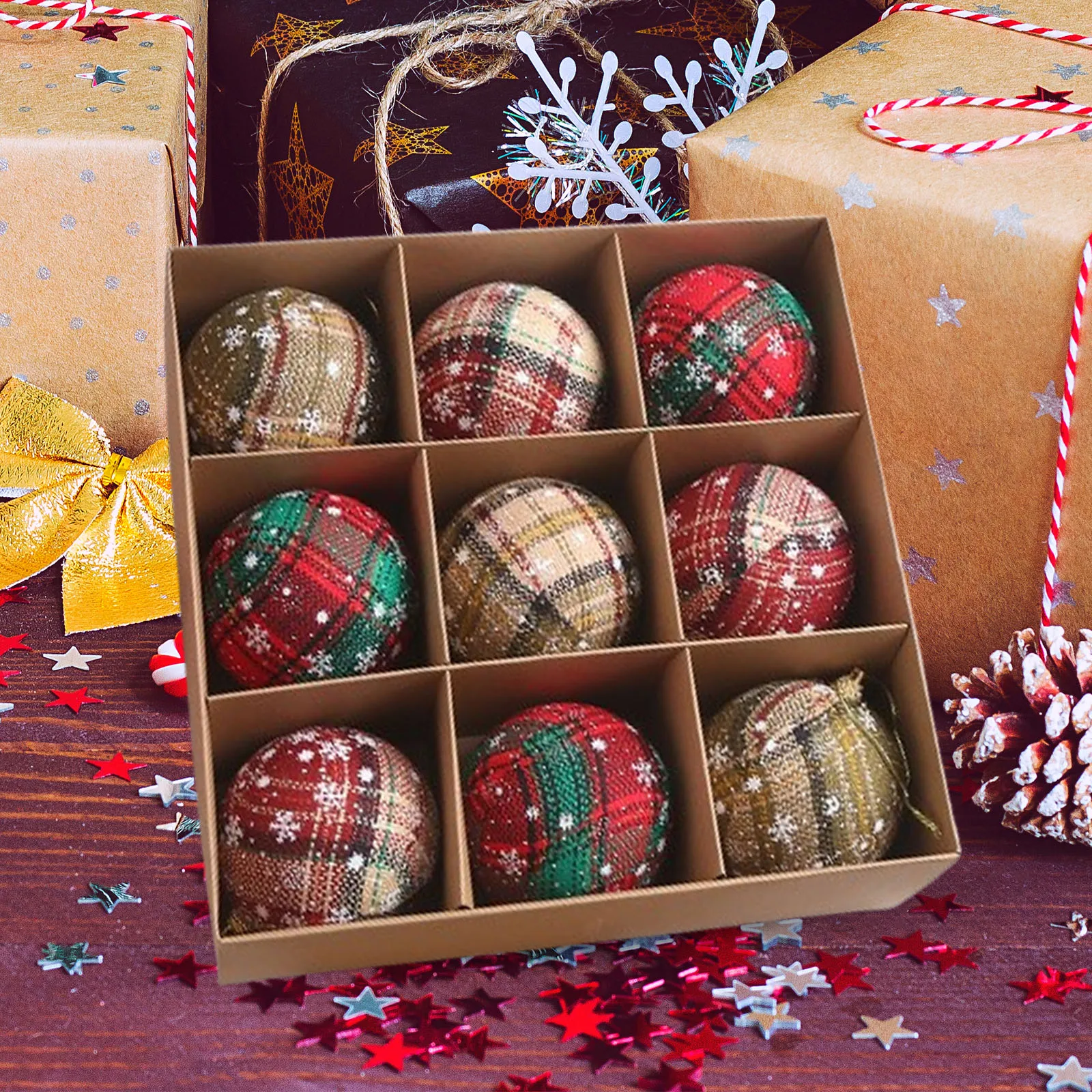【Creative Design】: These Christmas ball ornaments feature a chic, classic plaid design that adds an elegant atmosphere to your Christmas celebrations.