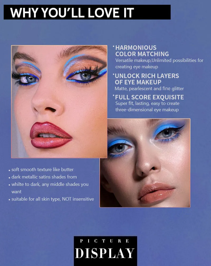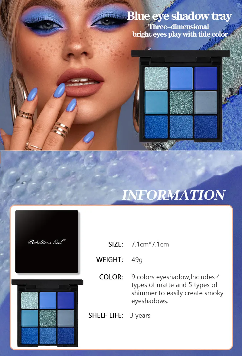 Be the first to review “9-color Blue Eyeshadow Palette, Super Color Rendering, Long-lasting, Easy to Mix And Match, High-quality Pigments, Matte,Glitter”